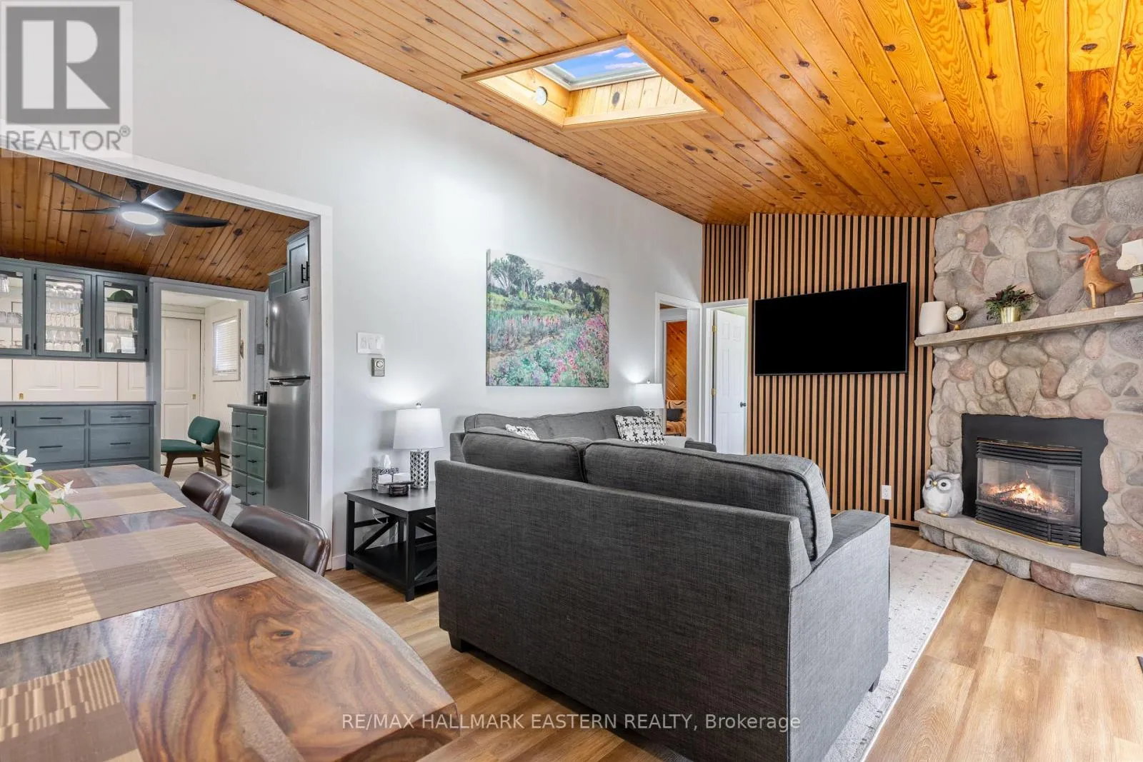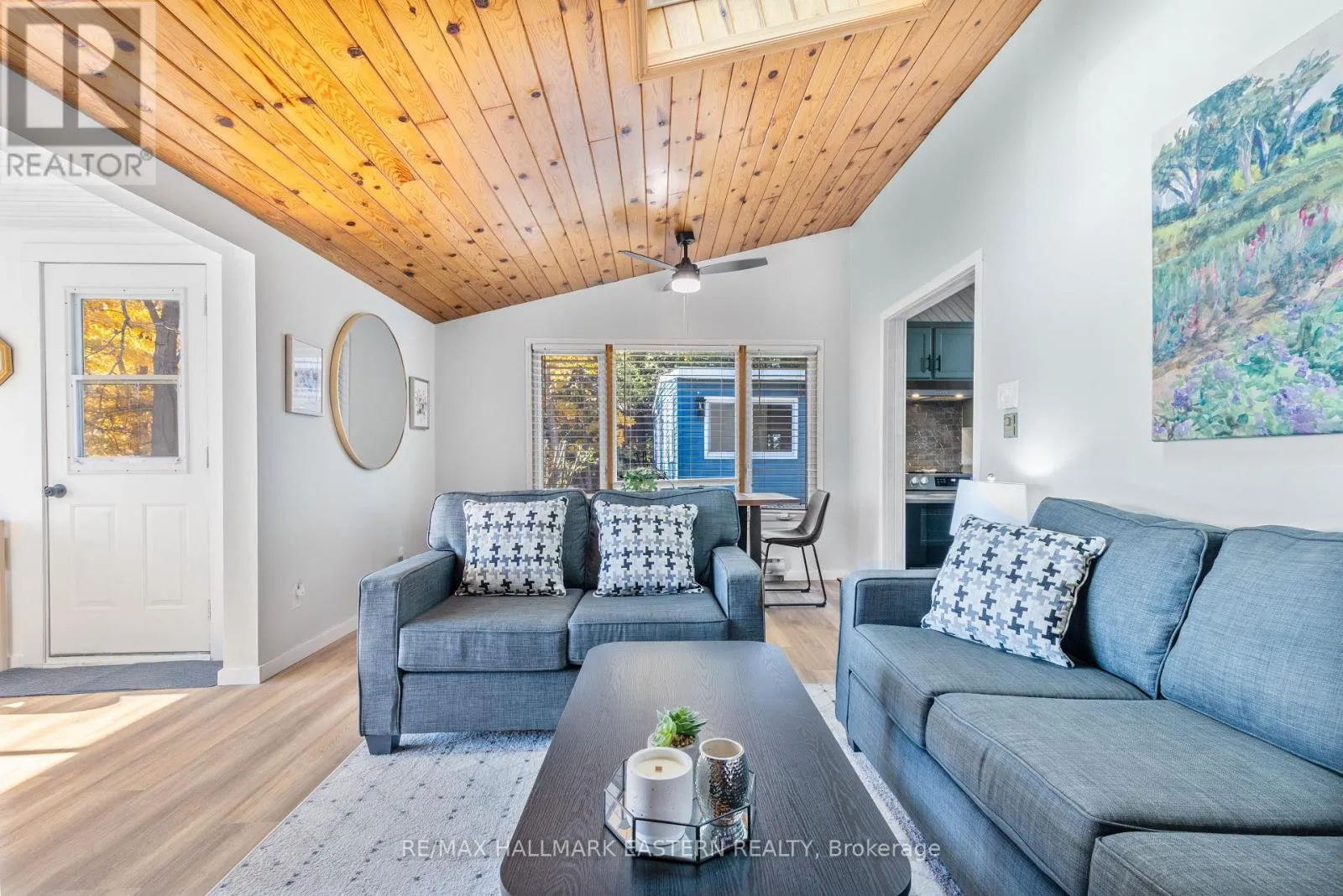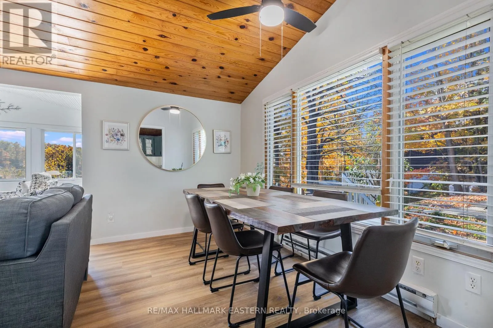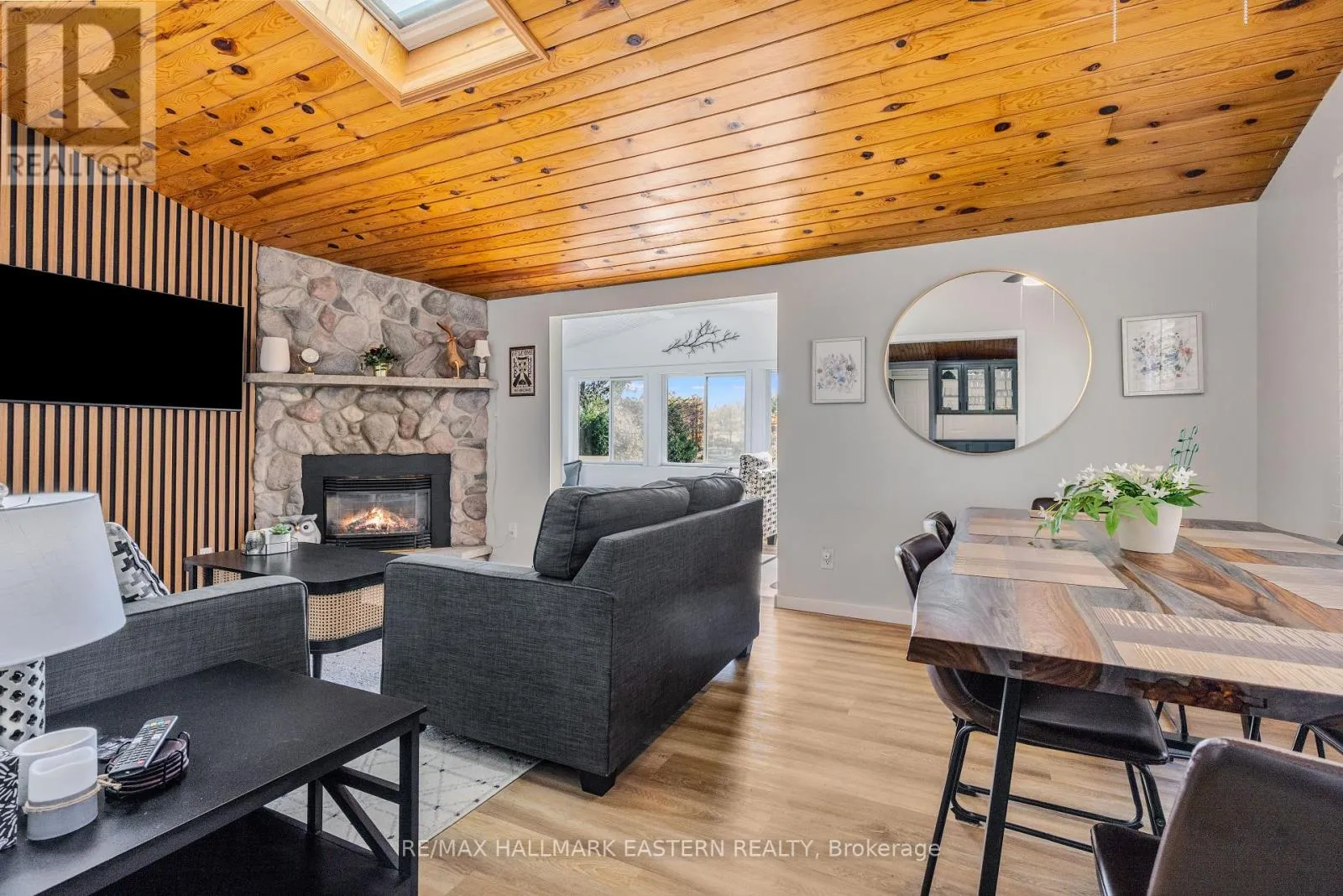 Cross Streets: Albert's Lane and Franklin Street. ** Directions: Curve Lake Road to Albert's Lane left on Franklin Street. This charming bungalow is nestled on the shores of Buckhorn Lake in the serene waterfront community of Beausoleil. It has 100 feet of waterfront with a fabulous south facing open lake view. This quaint two plus bedroom, one and half bath home features outstanding lake views and walk out to a balcony from the primary bedroom. The living room/dining room has a propane fireplace and a commanding lake view. The beautiful sunroom has a stunning lake view and is where you will spend hours watching the changing seasons on the lake. There is a door from the sunroom leading to the deck extending your living out of doors. The lower level offers a rec room, third bedroom, and a new 2 pc bath. There is a walkout to a covered and screened in patio that has a hot tub and sauna overlooking the lake for hours of enjoyment! Imagine relaxing in your hot tub while enjoying the view of the lake. There is a wonderful inground pool that overlooks the lake and is heated to extend your hours of enjoyment later in the season! The pool has had a new liner installed in 2025. There is a charming 2 bedroom bunkie which also has stunning lake views and has a door to the lakeside. It has been redone including all new insulation. This wonderful space is where your guests will want to stay. Two sheds and a large T-shaped dock complete this fabulous property! This wonderful property has had extensive renovations completed in 2025 including new forced air propane furnace and duct work, new central air conditioning, a new water system, new flooring throughout the upper level, bunkie completely redone, new pool liner and the home has been completely freshly painted. This property is located on leased land from the Government of Canada. The land lease is $3,080.00 + $1,675.00 for police and fire service, garbage disposal and road maintenance. There is a one time $500.00 owner transfer fee. There are NO LAND TAXES. New 35 year land lease available. (id:27476)