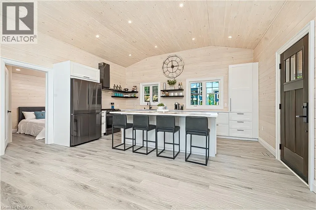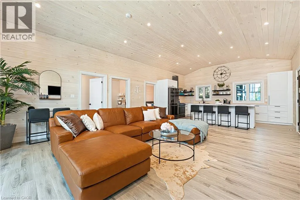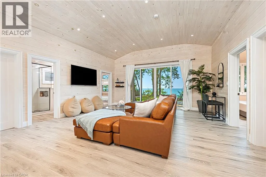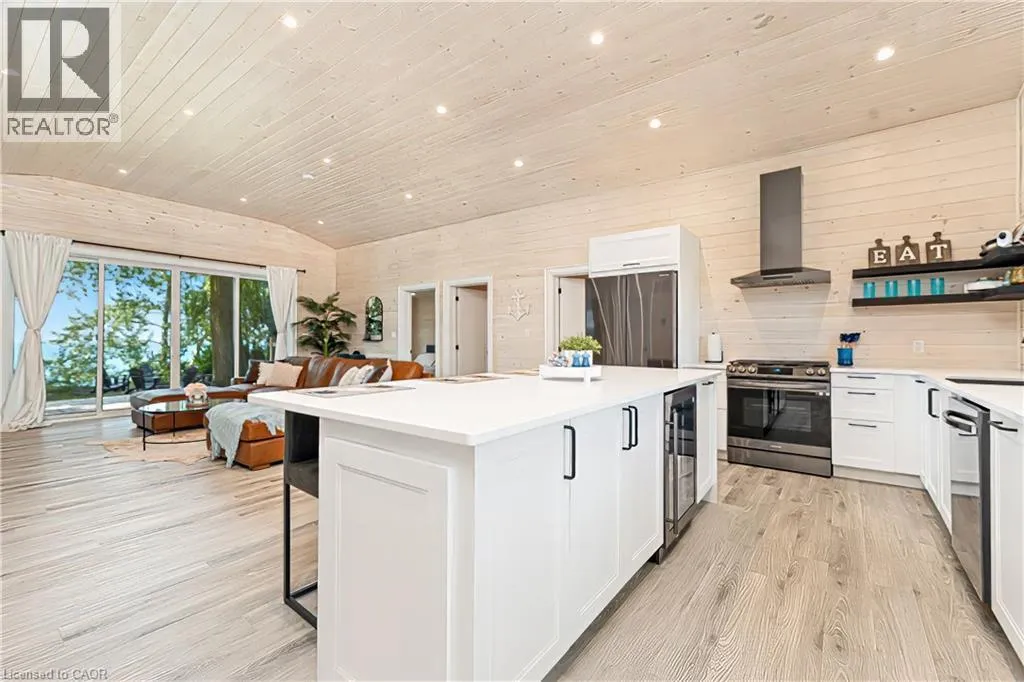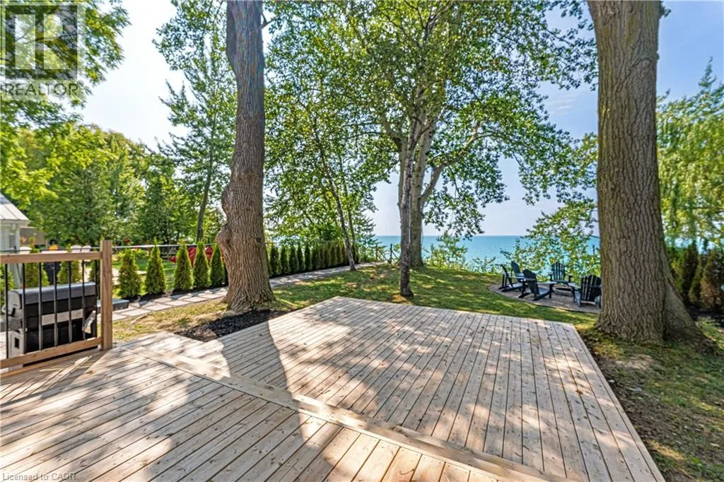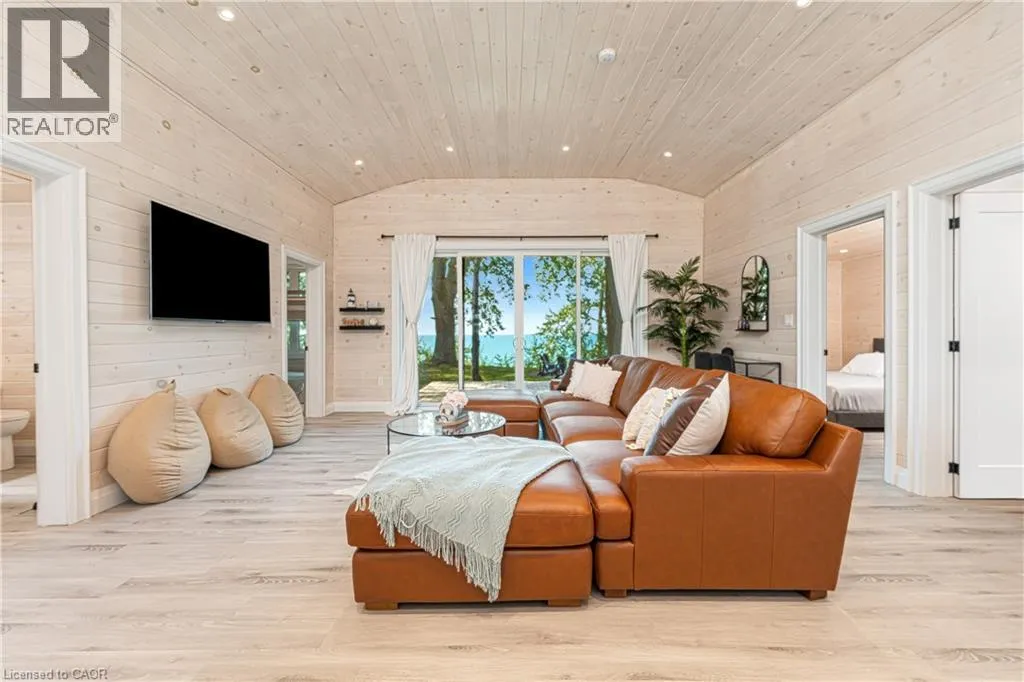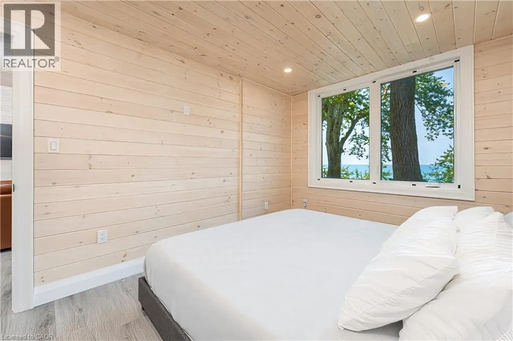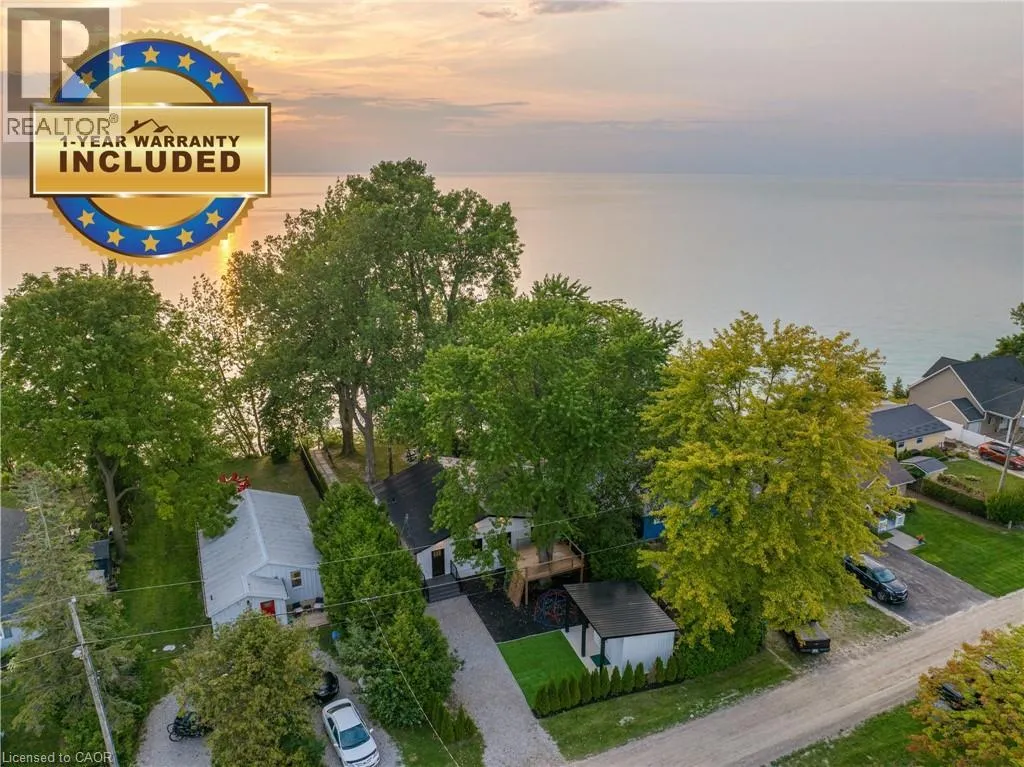 Bluewater Highway to Poplar Beach Rd to Sunridge Crescent to Sunview Avenue STUNNING LAKEFRONT COTTAGE COMPLETELY REBUILT IN 2023, CONVENIENTLY NESTLED BETWEEN GRAND BEND AND BAYFIELD, TURN-KEY PARADISE AWAITS! Backing directly onto Lake Huron between Grand Bend and Bayfield, this breathtaking 4 season cottage is the epitome of luxury and easy living. Vacation time is made simple here where everything in the cottage is brand new. Designed for the ultimate experience combined with low-maintenance ownership, this 3-bedroom retreat features jaw-dropping sunsets and endless activities. Thereâs even a 12x10 foot fully insulated Bunkie (also built in 2023) perfect for the kids or weekend visitors along with a tree house play area and custom climbing centre. Back inside thereâs 2 bathrooms, laundry and a luxurious kitchen featuring Cambria countertops, black stainless steel appliances, breakfast counter and beautiful white cabinetry with pot drawers and built in organization. The entire interior of this home is cladded in beautiful white-washed tongue and groove pine and every inch of the space exudes elegance and comfort. The stunning cathedral ceilings lead your eyes to mind-blowing lake-views. Outside, youâll enjoy a large deck, fire pit, outdoor shower and steps down to your private beach with new double seawall, thereâs lookout areas for endless relaxation and the best beach & water recreation you could imagine. Furniture is negotiable, making this a true turn-key opportunity. Seize the chance to own your slice of paradise today! Cottage originally built in 1954 but rebuilt in 2023. (id:27476)