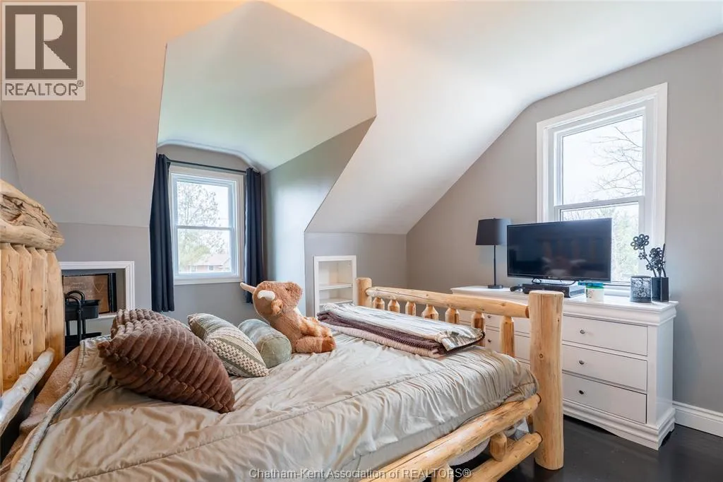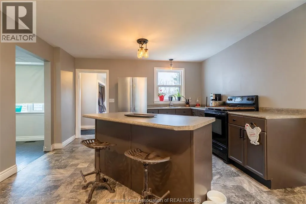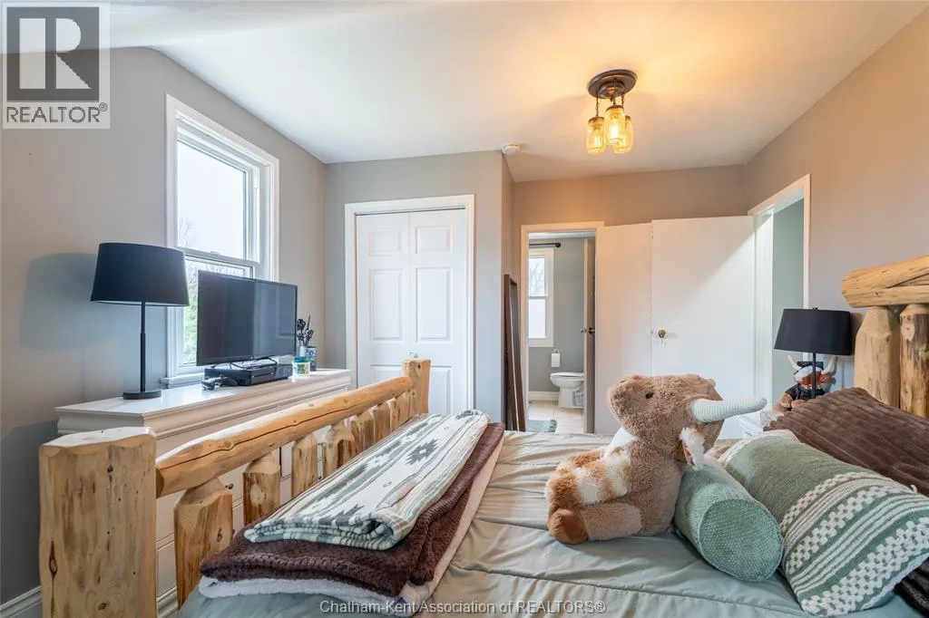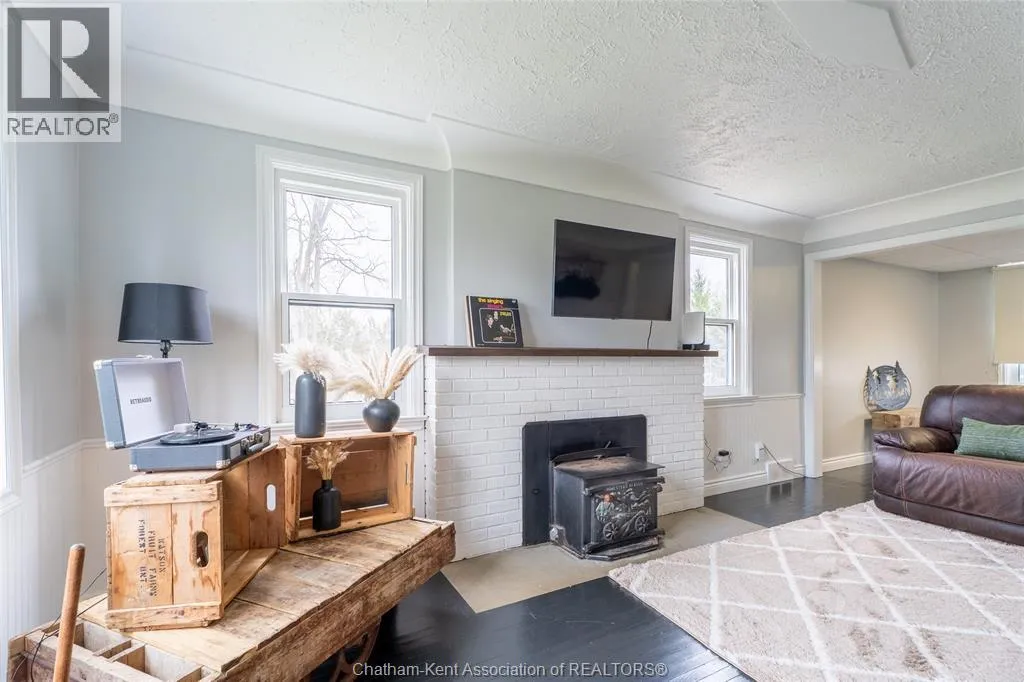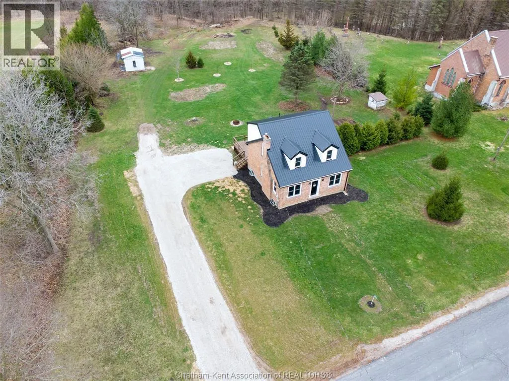 FROM FLORENCE RD, TURN EAST ONTO FANSHER RD. HOUSE IS ON THE RIGHT. SIGN IN YARD. Situated on nearly 2 acres in Florence, this updated 3-bedroom, 1.5-bath home offers the perfect blend of country living with nearby town conveniences. Backing onto scenic Fansher Creek and surrounded by mature trees, this property offers a private setting with picturesque views and regular wildlife and bird activity. Inside, you will find an open concept layout with a spacious kitchen and dining area, perfect for everyday living and entertaining, along with a cozy wood-burning fireplace in the living room. All three bedrooms are located on the second floor, including a primary bedroom with semi-ensuite access to a Jack & Jill bathroom shared between bedrooms. Extensive updates completed in September 2025 include a brand-new steel roof, most windows replaced (all but two), new siding, soffit, fascia, and eavestroughs, as well as a new gravel driveway and refreshed landscaping, truly move-in ready. The full basement offers high ceilings and excellent potential for future finishing, providing additional living space to suit your needs. Step outside to a large wraparound deck overlooking the expansive backyard. Serviced by natural gas, municipal water, and fibre internet, and located on a paved road, this home offers comfort and convenience. Donât miss your opportunity to enjoy peaceful country living with modern updatesâbook your private showing today. (id:27476)