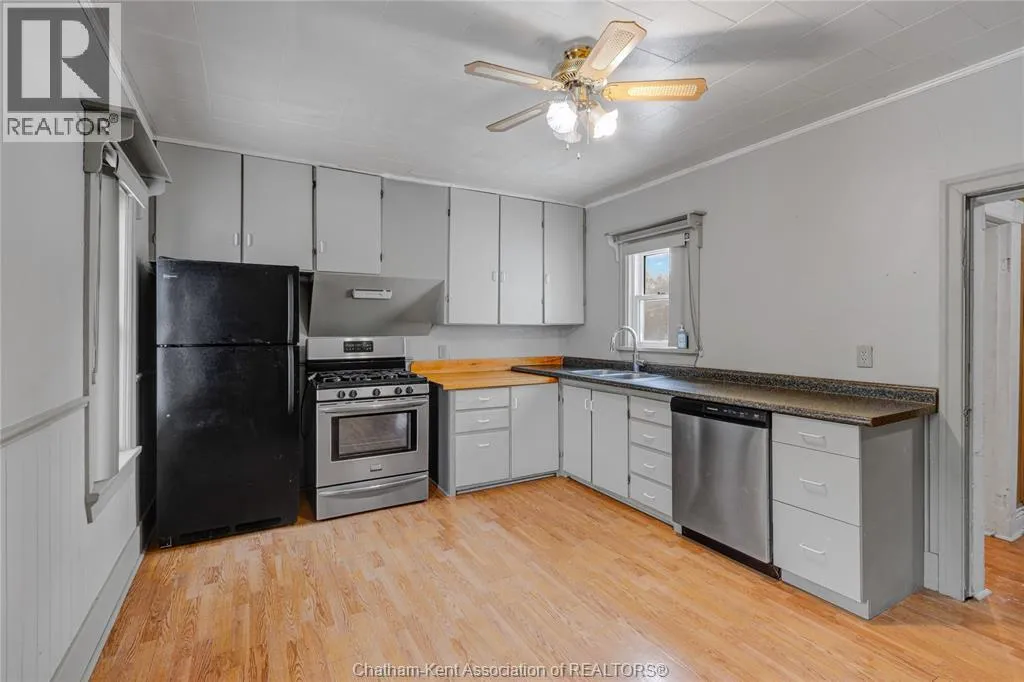 Comfortable and affordable single-family home ideally located in Dealtown, just minutes from Lake Erie and a short drive to Chatham. This property presents a great opportunity for first-time buyers, investors, or those looking to downsize. The main level offers a functional layout featuring a spacious eat-in kitchen, a comfortable living room, a bedroom or home office, and a full bathroom. Upstairs, youâll find three additional bedrooms, providing flexibility for a variety of living arrangements. With a practical floor plan and outdoor space that includes a partially fenced yard, this home offers solid long-term value in a desirable lakeside community. Conveniently located near the Lake Erie waterfront and within easy reach of Chatham, the property may also be purchased on its own or together with the neighbouring mixed-use property (MLS® #26001411). (id:27476)