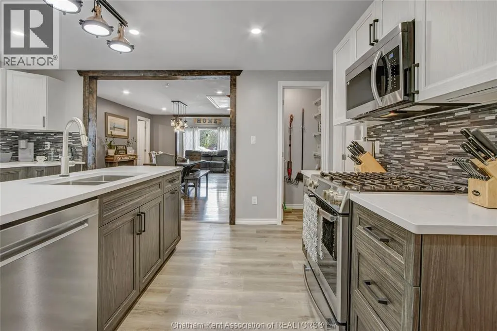 Enjoy peaceful living in the quiet community of Dealtown with this beautifully renovated 3 bedroom, 1 bath ranch offering desirable main floor living and picturesque lake views. The brand new kitchen features an island with quartz countertops, stylish backsplash, stainless steel appliances, and a pantry that connect to the spacious dining and living room where you can take in tranquil views of Lake Erie. This home has been completely renovated, offering a 4pc piece bath with tiled shower, vanity with a granite countertop and numerous updates throughout. The heated double-car attached garage provides sheltered parking, a workshop, or extra storage, while the massive driveway offers ample parking for family and guests. Step outside to enjoy two relaxing decks one with a pergola overlooking the expansive .46-acre property complete with a fire pit and stunning lake views. Situated on a paved road with natural gas and municipal water, this exceptional property combines modern comfort with the charm of country living! Book your private showing today! (id:27476)