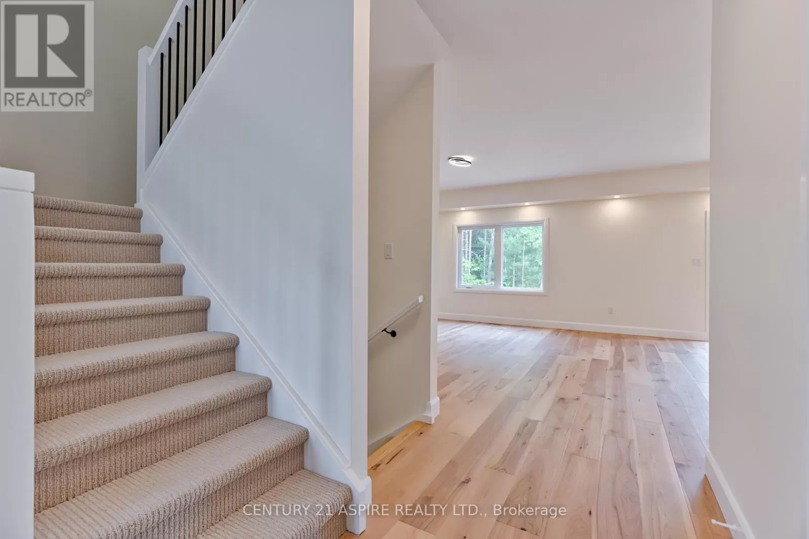 Cross Streets: Avon Road. ** Directions: Highway 17 to Ridge Road to Avon Road to Frontenac Crescent. Welcome to this spacious, well designed Townhome, spanning approximately 1675 sq ft of above ground living space, in the primesought-after west end Deep River neighbourhood. A wealth of carefully planned features greet you throughout. Rich hickory engineered hardwood floors and perimeter pot lighting accentuate the open concept main floor. Sleek white kitchen cabinets with large centre Island, engineered stone countertops and under cabinet lighting. Walk out to the large deck from dining area to your private yard. The second floor accommodates the family with a huge primary bedroom with large walk-in closet, spacious en-suite bathroom boasting ceramic tile floor, 66" soaker tub shower with wall tile and 72" double vanity, plus a private balcony tucked into the structure of the home, overlooking the back yard and trees beyond. Two more bedrooms featuring rich hickory engineered hardwood floors and large closets, a 4 pc. bathroom and convenient closet laundry complete the living space. Superior sound separation and insulation value insured by parti walls constructed well beyond building code requirements including 5 layers of drywall and 2 sets of resilient channel. Full height unfinished basement, high efficiency gas heating, built-in network wiring and an attached single car garage. Book your private viewing soon! (id:27476)