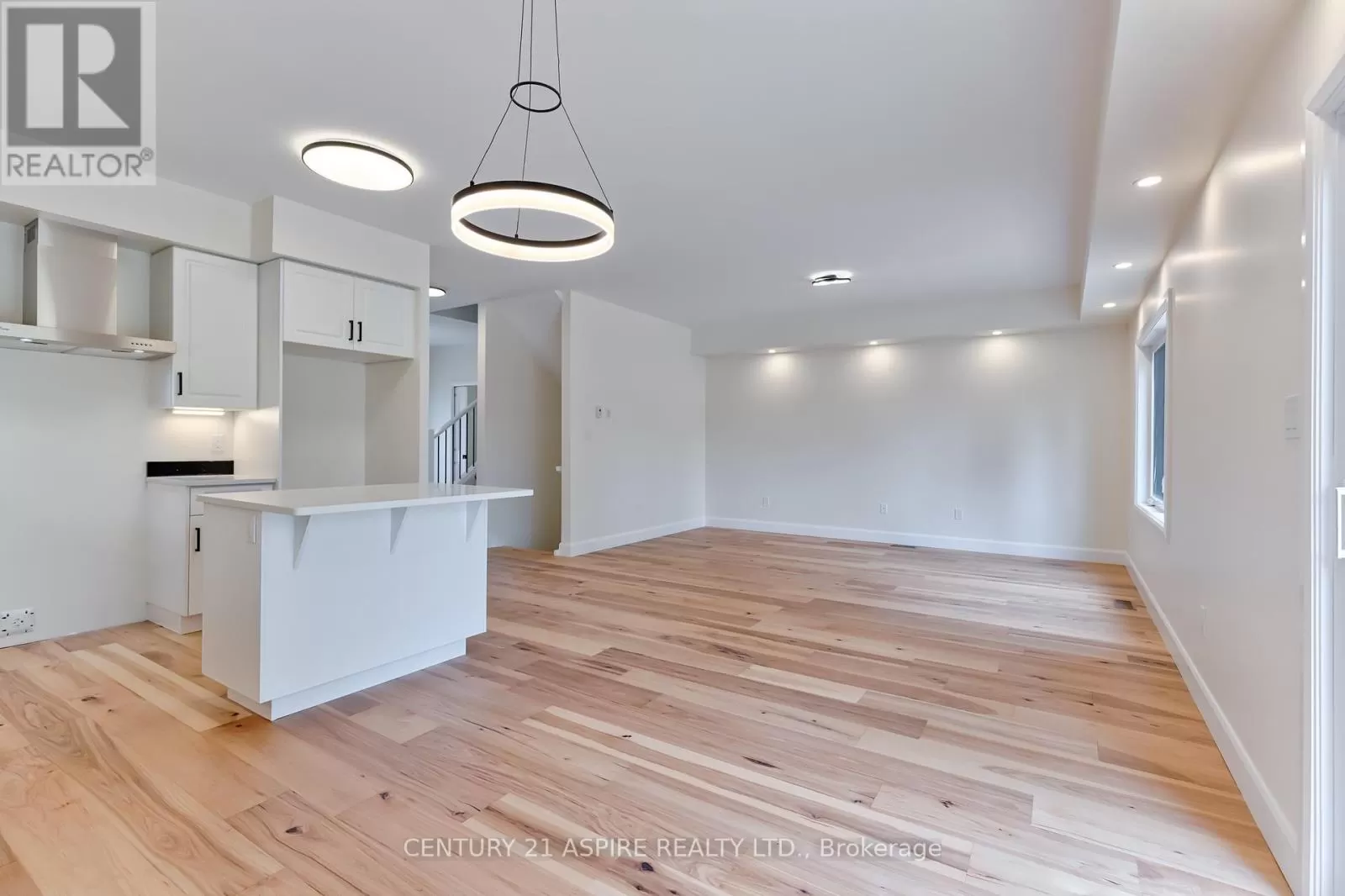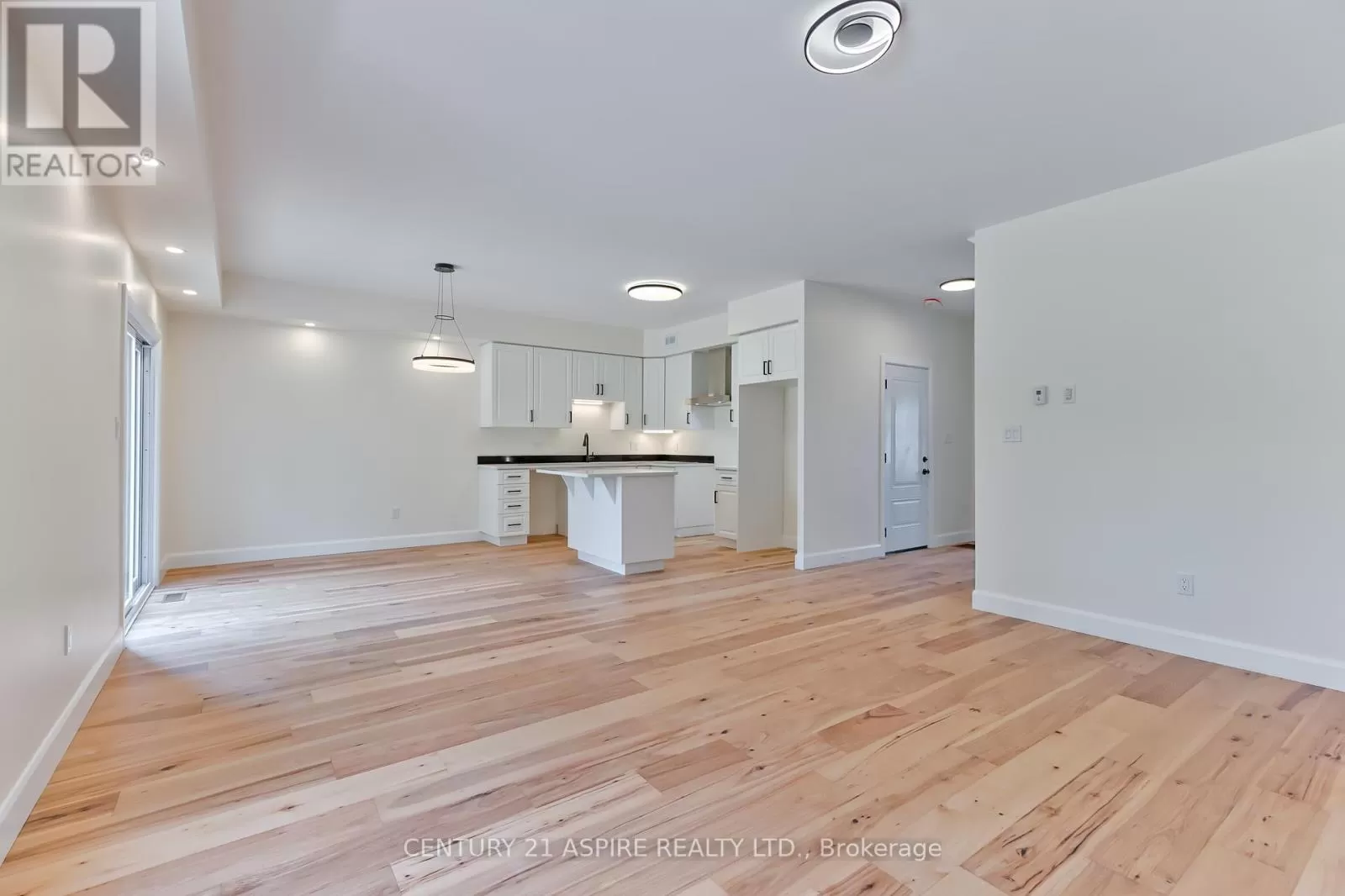 Cross Streets: Avon Road. ** Directions: Highway 17 to Ridge Road to Avon Road to Frontenac Crescent. Welcome to this spacious, well designed Townhome, spanning approximately 1675 sq ft of above ground living space, in the prime sought-after west end Deep River neighbourhood. A wealth of carefully planned features greet you throughout. Rich hickory engineered hardwood floors and perimeter pot lighting accentuate the open concept main floor. Sleek white kitchen cabinets with large centre Island, engineered stone countertops and under cabinet lighting. Walk out to the large deck from dining area to your private yard. The second floor accommodates the family with a huge primary bedroom with large walk-in closet, spacious en-suite bathroom boasting ceramic tile floor, 66" soaker tub shower with wall tile and 72" double vanity, plus a private balcony tucked into the structure of the home, overlooking the back yard and trees beyond. Two more bedrooms featuring rich hickory engineered hardwood floors and large closets, a 4 pc. bathroom and convenient closet laundry complete the living space. Superior sound separation and insulation value insured by parti walls constructed well beyond building code requirements including 5 layers of drywall and 2 sets of resilient channel. Full height unfinished basement, high efficiency gas heating, built-in network wiring and an attached single car garage. Book your private viewing soon! (id:27476)