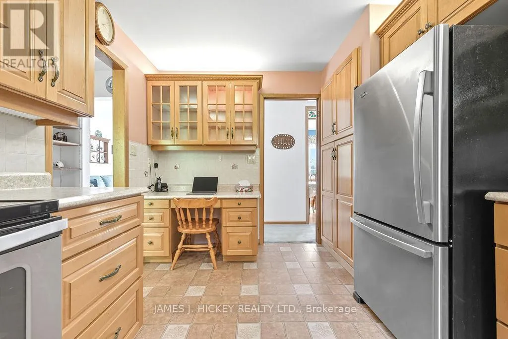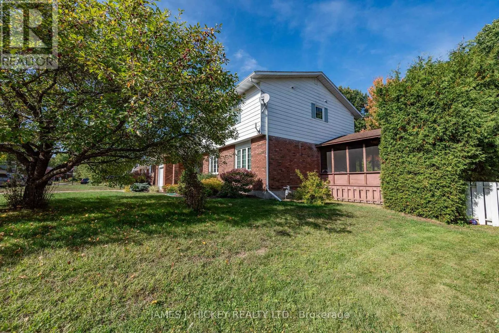 Cross Streets: Thomas Street & Frontenac Crescent. ** Directions: Highway 17 to Deep River, Thomas Street to Frontenac Crescent on right. Welcome to this warm and welcoming two-storey 4-bedroom family home, beautifully maintained and thoughtfully updated and perfectly suited for family living. Step into the inviting front foyer and discover a sun-drenched formal dining room, ideal for hosting gatherings. The custom kitchen has been tastefully renovated with quality finishes and includes a cozy eating area that opens to a screened-in room perfect for enjoying the peaceful, private backyard that borders town green space. The main floor offers a spacious family room with a stunning wood-burning stone fireplace, a convenient laundry area, and a full 3-piece bathroom. Upstairs, you'll find four generously sized bedrooms, including the primary bedroom with a walk-in closet and a private 2-piece ensuite. The main 4-piece bathroom has also been beautifully updated. The lower level features a comfortable rec room with a gas fireplace, a partially finished games room, a den, and a fully outfitted workshop area providing plenty of space for hobbies, entertainment, or storage. An attached garage with inside entry adds to the home's practicality. Triple glazed windows. Fridge, stove, washer, dryer, dishwasher included. All this just a short stroll from Grouse Park and the ski hill, an unbeatable location for outdoor enthusiasts and families alike. Call today. 48 hour irrevocable required on all offers. (id:27476)
