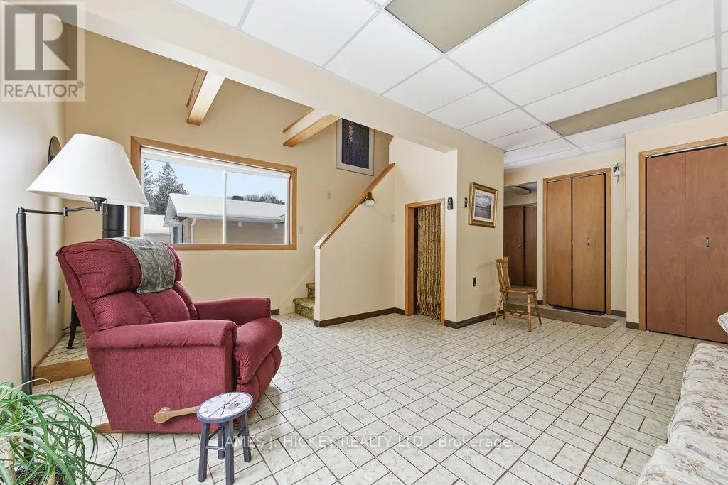 Cross Streets: Banting Drive, Hillcrest Ave. ** Directions: Hwy 17 to Banting Drive, left on Hillcrest Avenue, left on Glendale Avenue. Step into this beautifully maintained 1820 sq. ft. bungalow, offering generous space, comfort, and a layout ideal for family living. A large welcoming foyer leads into the bright, sun-filled family room complete with a cozy gas fireplace. The well-appointed kitchen includes a built-in range top, oven, dishwasher, and a charming breakfast nook perfect for casual meals. The home features a spacious living and dining room, three main-floor bedrooms, and a fourth loft-style bedroom-an excellent retreat for a student or remote worker thanks to its dedicated office/computer area. A convenient main-floor laundry room and a workshop with backyard access add to the home's practicality. Gas heat and central air ensure year-round comfort. Outside, a private paved driveway leads to a single detached garage with an additional storage room-ideal for tools, equipment, and outdoor toys. The expansive country-style backyard offers wooded privacy, plenty of room to play, and a charming gazebo for warm-weather relaxation. This lovely family home is just a short walk from the hospital, golf club, ski trails, and more. Fridge, stove, washer, dryer, and dishwasher are all included. A 48-hour irrevocable is required on all offers. Call today to view this exceptional property. (id:27476)
