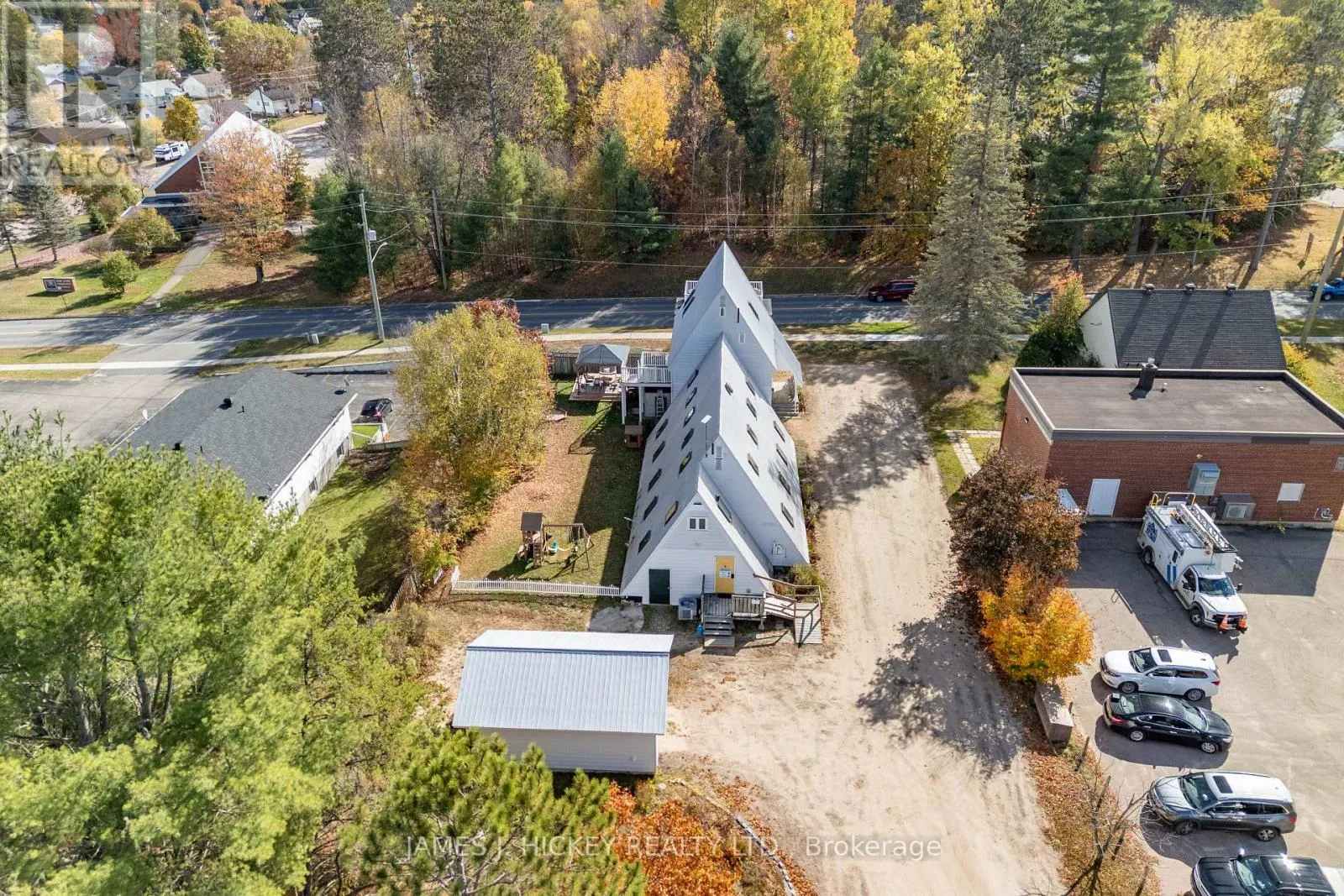 Cross Streets: Deep River Road. ** Directions: Highway 17 to lights at Deep River Road. Property on left. Versatile Commercial/Residential Gem in the Heart of Deep River. Discover a rare opportunity to own a beautifully renovated landmark property offering both professional and residential luxury. Ideally located in central Deep River, this exceptional building is perfect for entrepreneurs, professionals, or investors seeking a dynamic live-work space. Main Level - Professional Potential Step through the impressive front entrance into a spacious commercial suite featuring five bright offices and a dedicated boardroom-ideal for clinics, studios, or executive use. Second Level - Stylish Living Upstairs, enjoy a stunning residential retreat complete with a cozy living room and gas fireplace, a custom country-style kitchen, and direct access to a private balcony with hot tub-perfect for unwinding or entertaining. Third Level - Private Sanctuary Ascend the elegant spiral staircase to a serene primary suite with a 3-piece en-suite bath and walk-in closet. Wake up to breathtaking views of the Laurentian Mountains and Ottawa River. Bonus Apartment A separate one-bedroom apartment offers flexible options: expand your living space or generate rental income with its private entrance. Outdoor Features The large, fenced backyard includes a covered deck, ample commercial parking, and a newly built detached garage-blending convenience with comfort. This is more than a property-it's a lifestyle upgrade. Elevate your work-from-home experience and invest in a space that truly does it all. EV charging unit installed. 48 hour irrevocable required on all Offers. (id:27476)