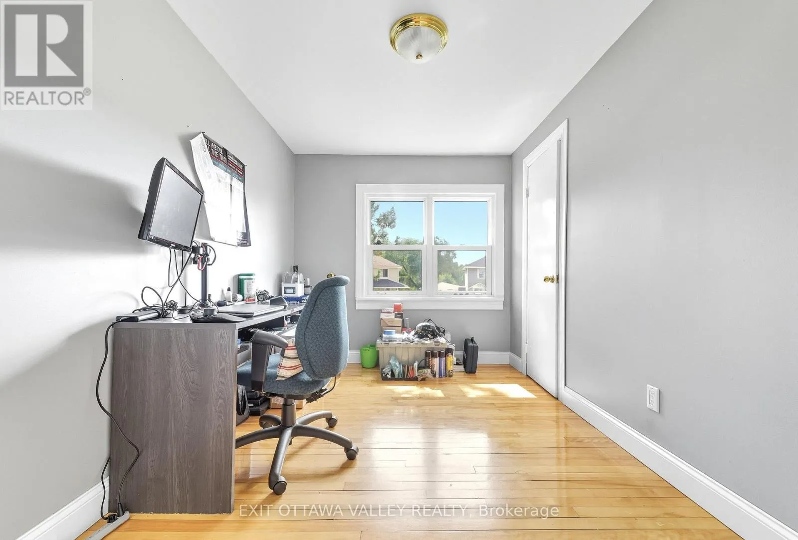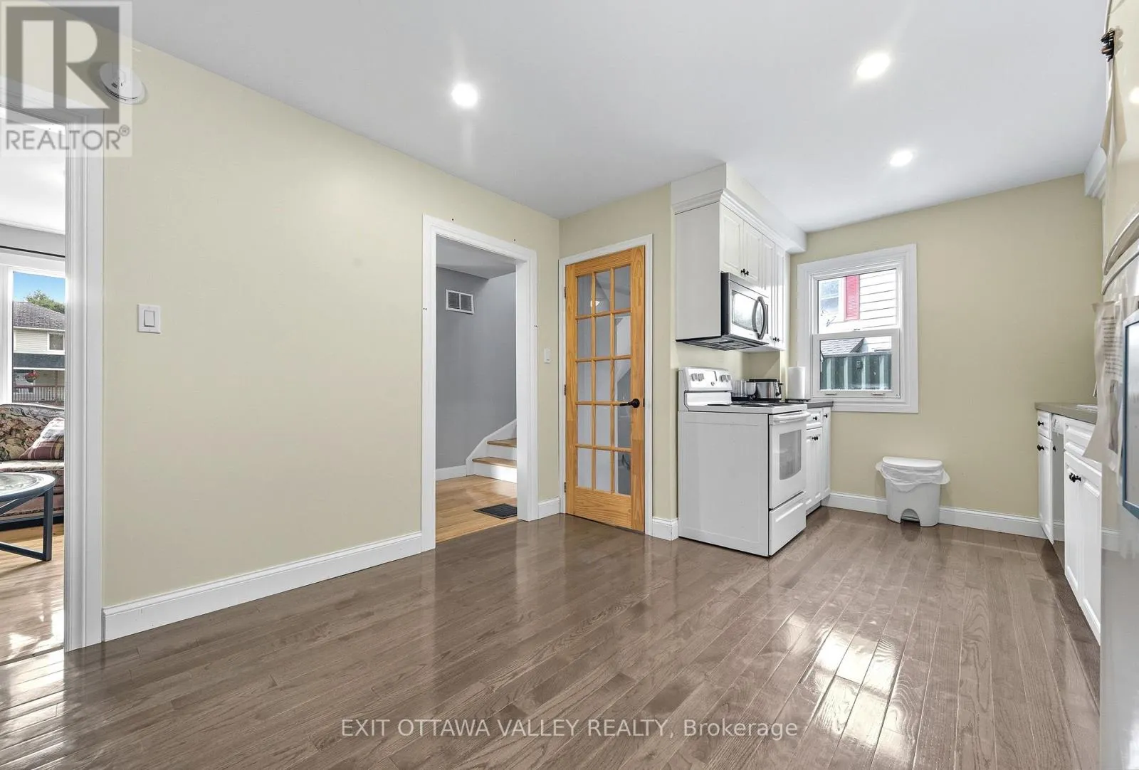 Cross Streets: Rutherford Avenue. ** Directions: Deep River Road to Rutherford Avenue to Faraday Crescent. Welcome to this beautifully updated 3-bedroom, 1-bath semi-detached home in the heart of Deep River. The upgraded main floor features timeless white kitchen cabinetry, gleaming hardwood floors, and a bright, open living space filled with natural light. Upstairs offers three spacious bedrooms and a refreshed bathroom with stylish double sinks. Enjoy the added convenience of a single detached garage and a private backyard backing onto serene green space-perfect for relaxing or entertaining. Ideally located near schools, parks, and everyday amenities, this move-in-ready home checks all the boxes. (id:27476)