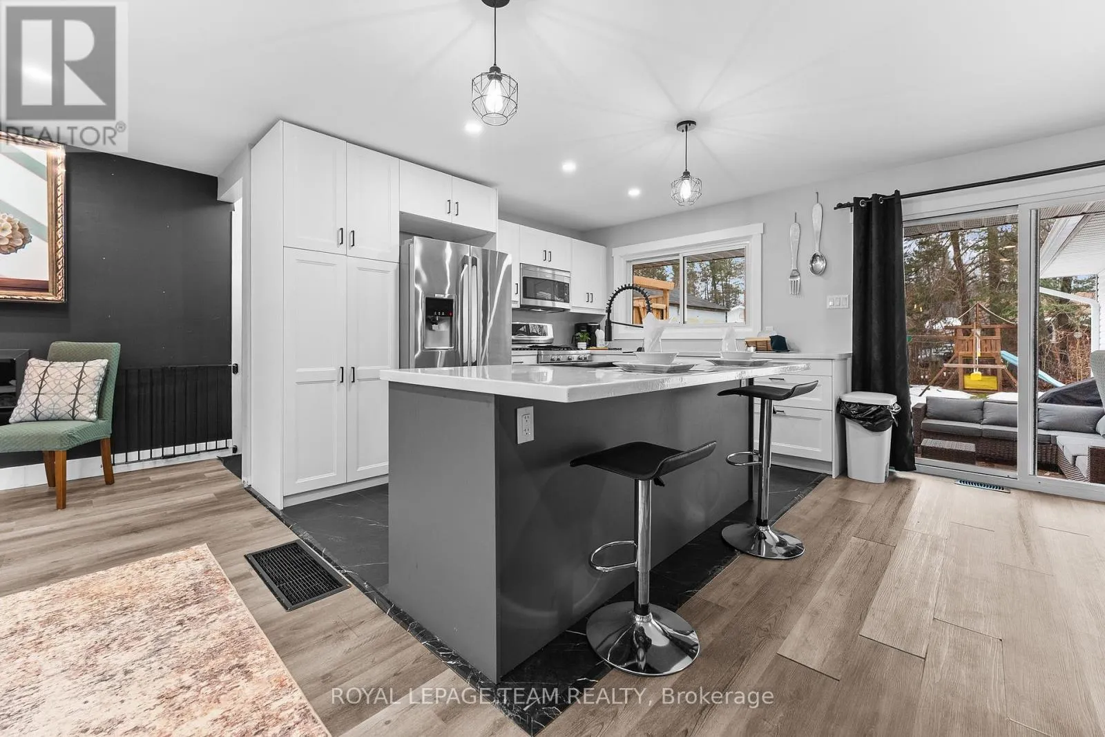 Cross Streets: Highway 17 to Ridge Road, right on Frontenac Crescent. ** Directions: Highway 17, left on Ridge rd, another left onto Frontenac Cres house is # 25 on your left. 3-bedroom, 4-bathroom home offering nearly 1,500 sq ft on a quiet family-friendly crescent just off Highway 17, only one street in for quick and convenient commuting while still enjoying a peaceful residential setting. Lovingly updated in 2021, this move-in ready home features kitchen and bathroom renovations, along with updated insulation, drywall, flooring, and lighting. The main level offers a functional layout with oversized windows throughout, creating a bright, open, and airy feel. Three generously sized bedrooms are located on the main floor, including a primary bedroom with a true 4-piece ensuite and walk-in closet. The lower level provides additional living space with potential for a fourth bedroom, currently set up as a gym/office. Outside, enjoy two patios, a large fenced yard offering added privacy, and an extended paved driveway with plenty of parking. Conveniently located close to parks, walking trails, and local amenities, this is a great opportunity for buyers seeking a well-updated home in a desirable family-oriented neighbourhood. (id:27476)