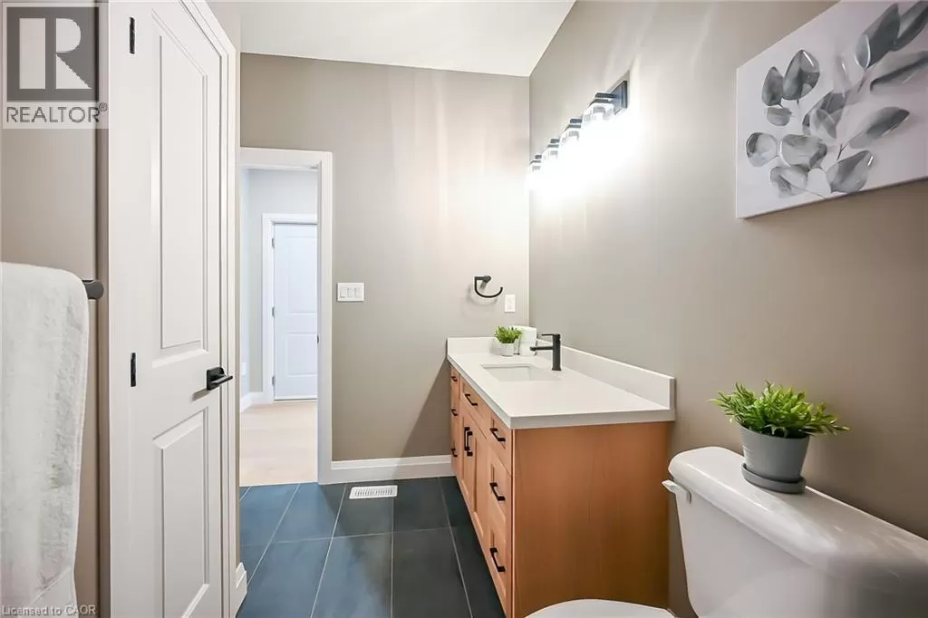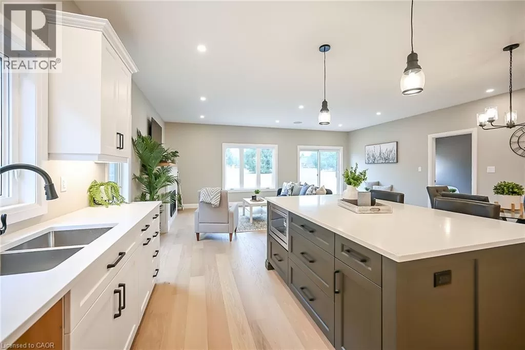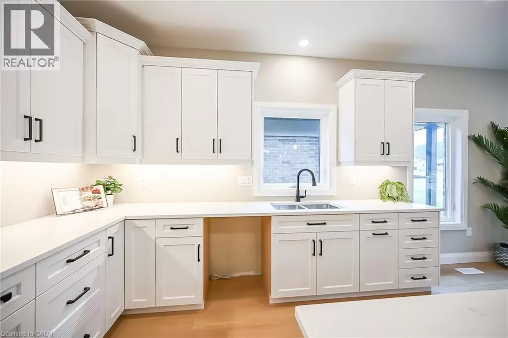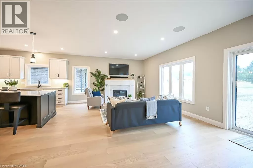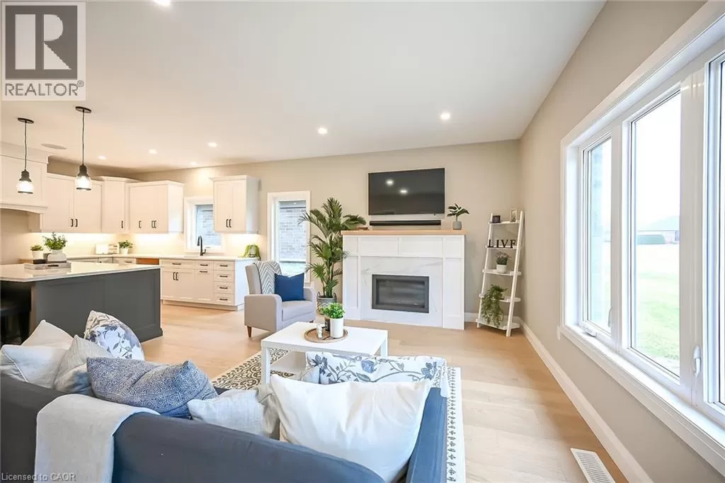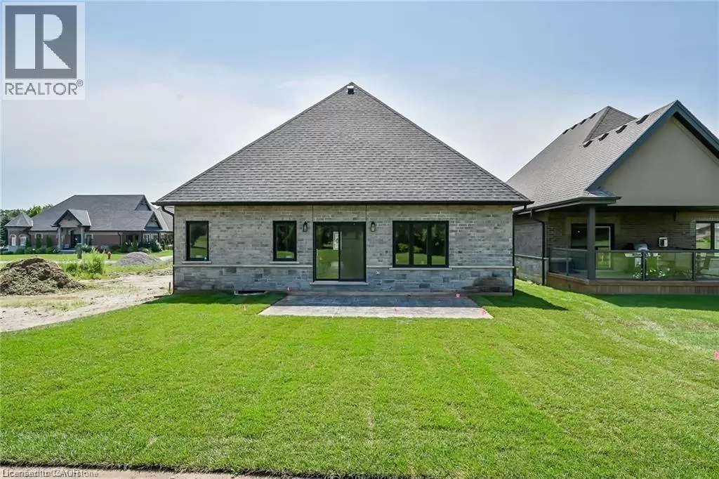 WILSON AVE TO VIOLA CRT TO ST MICHAEL'S ST Truly Stunning, Exquisitely Finished new 2 bedroom, 2 bathroom Delhi Bungalow located in sought after Fairway Estates (which takes care of lawn & snow maintenance for a low monthly fee). Great curb appeal with stone & brick exterior & tidy landscaping. Flowing interior layout offers 1394sq ft of masterfully designed living space highlighted by main living area with 9ft ceilings, oversized windows, gourmet kitchen with quartz countertops, custom contrasting eat at island, living room with gas fireplace, gorgeous trim & millwork, spacious master bedroom with 4pc ensuite & large W/I closet, secondary front bedroom (could be used as den or office), welcoming foyer, beautiful hardwood floors throughout, built in sonos sound system, & unfinished basement awaiting your personal touch and design with rough-in for 3rd bathroom. Conveniently located approx 15 mins to Simcoe & Tillsonburg, 35 mins to Brantford & Woodstock. Must See shows 10++. AIA (id:27476)
