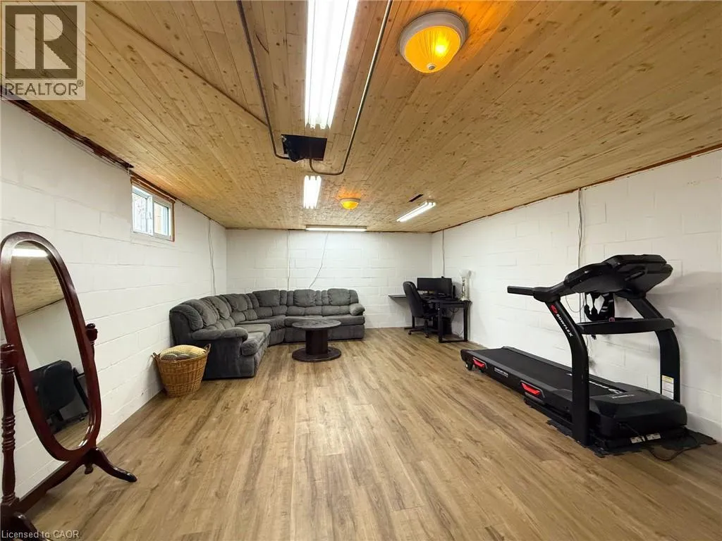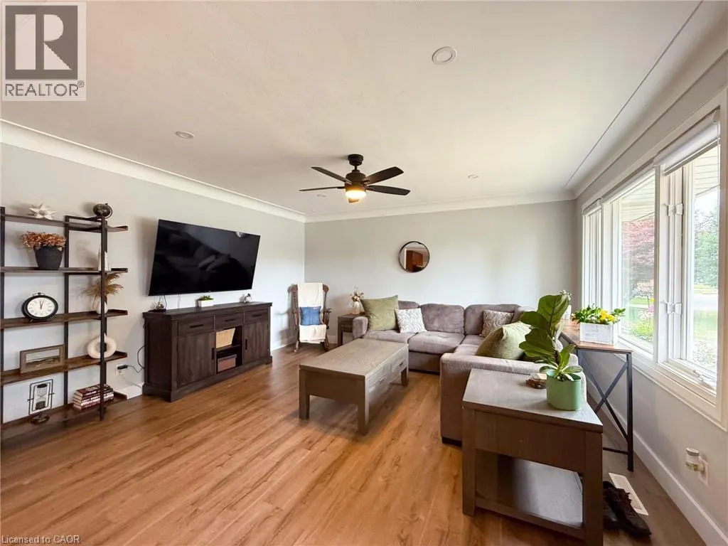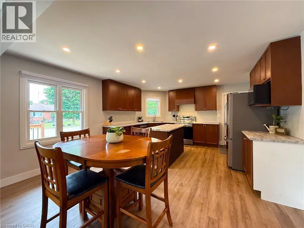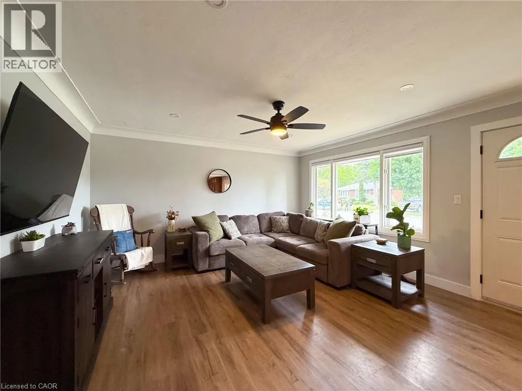 From James Street, turn east on Connaught Ave. Property on north side of road. Welcome to 153 Connaught Ave, Delhi! This charming and well-maintained 2-bedroom, 1-bathroom bungalow features 1,348 sq. ft. of total finished living area and is nestled in a desirable neighborhood, just a short walk from schools, parks, and various amenities. Offering 900 sq. ft. of bright, above-grade living space, this solid home boasts numerous updates, including updated kitchen, new interior doors and trim, fresh paint, pot lights, and beautiful laminate flooring throughout the main level. The generous sized living room invites an abundance of natural light, while the eat-in kitchen offers convenient access to the covered back deckâperfect for outdoor dining and entertaining. The main floor features a spacious primary bedroom. Across the hall, you'll find a cozy second bedroom and a 4-piece bathroom. Venture downstairs to discover a versatile basement equipped with a large rec room. The basement also includes a large storage room with laundry. Step outside to enjoy a fully fenced yard, perfect for pets and gardening, along with a spacious 10' x 15' shed offering plenty of space for storage. The outdoor areas include a welcoming concrete patio for entertaining. The paved driveway provides parking for up to 4 vehicles, making this home as convenient as it is charming. Ideally located for easy commuting to Simcoe, Tillsonburg, Brantford, or Woodstock, this property is a must-see! Don't miss out on this fantastic opportunityâschedule your showing today! (id:27476)