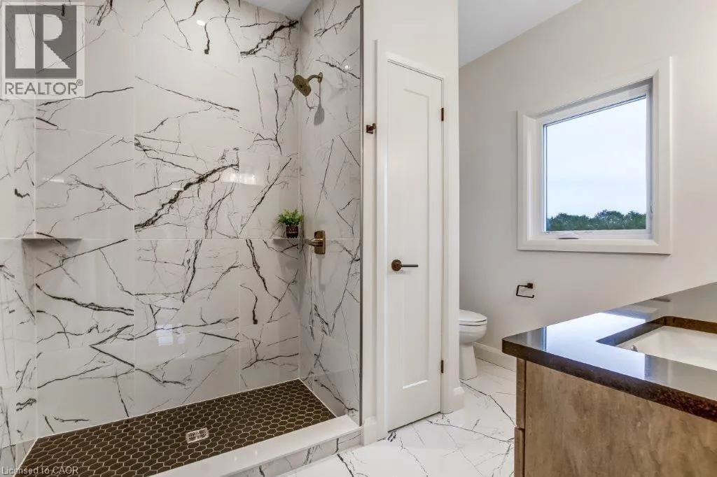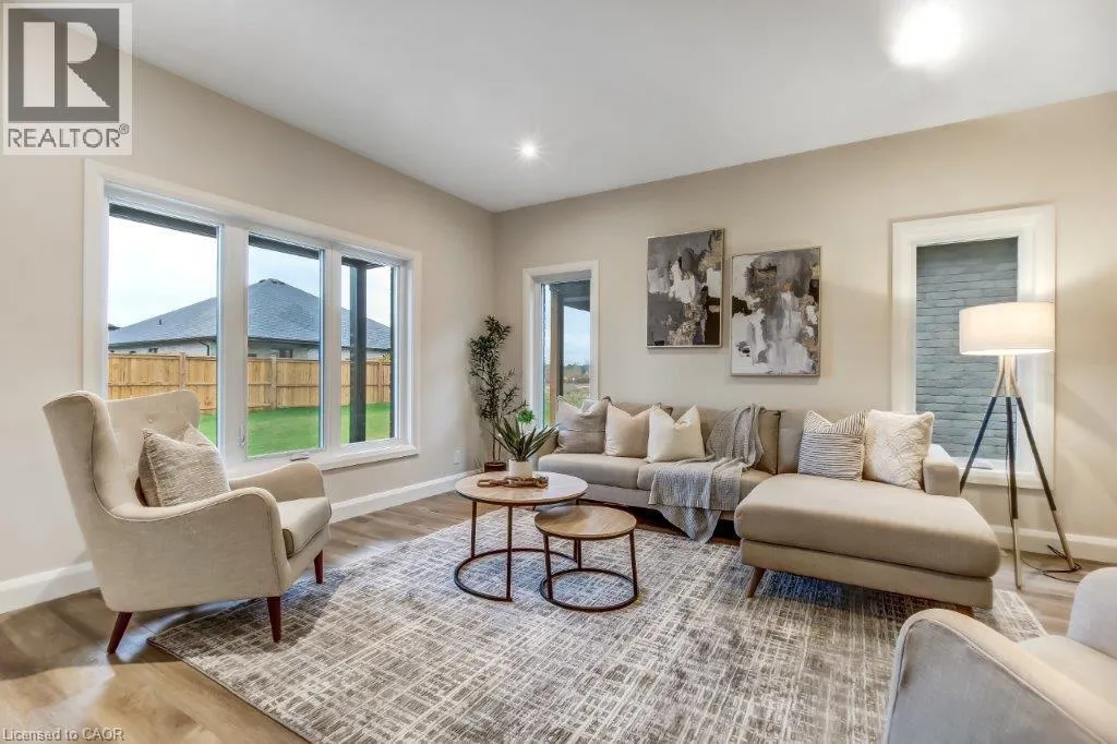 Hwy 3 to Delhi, East on Argyle; north on McIntosh, east on Duchess Welcome to 54 Duchess Drive in Bluegrass Estates! Freshly completed and ready for its first owners, this brand-new home is waiting for its new memory makers. Thoughtfully designed and built with quality finishes from top to bottom, the Big Creek model offers 1,402 sq. ft. of comfortable, modern living. Step inside to discover a beautiful open-concept layout featuring a custom kitchen that perfectly balances style and function. With leathered granite countertops, sleek cabinetry, and modern hardware, this kitchen is sure to impress both everyday cooks and dinner guests alike. The adjacent dinette opens onto a covered composite deckâideal for morning coffee or evening barbecuesâand flows seamlessly into the spacious living room filled with natural light and backyard views. The primary bedroom suite is a true retreat, featuring a large walk-in closet and a luxurious ensuite complete with a floor-to-ceiling tiled shower and double-sink vanity with granite top. A generous second bedroom provides flexibility for guests, a home office, or a cozy den. Built with energy-efficient features and meticulous attention to detail, this home offers both comfort and peace of mind. Complete with sidewalks, landscaping, and situated in a desirable community, 54 Duchess Drive is the perfect blend of elegance and practicality. Donât miss this opportunity to own a brand-new home in sought-after Bluegrass Estatesâmove in and start making memories today! (id:27476)