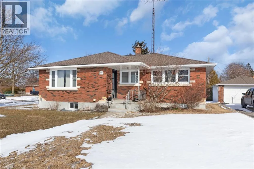 Hwy 3 To Delhi, East on Connaught Ave, Property is on the corner of Northern and Connaught. Welcome to 433 Northern Avenue in the heart of Delhi, a solid brick bungalow on a spacious corner lot offering comfort, updates, and move-in-ready living in a quiet, established neighbourhood. This well-maintained home features over 1,700 sq ft of finished living space with a bright main floor layout, generous room sizes, and a partially finished basement providing additional living and recreation areas. The large living room and dining area flow easily into the functional kitchen, while two spacious main-floor bedrooms offer comfortable everyday living. The lower level adds valuable extra space with a renovated basement living room (2023), perfect for family movie nights, hobbies, or a relaxed retreat. Buyers will appreciate the extensive list of recent mechanical and exterior updates, including furnace and A/C (2020), front door (2020), soffit, fascia and eavestroughs (2022), garage door (2023), windows (2023), and new water heater (2025), providing peace of mind for years to come. Outside, the detached garage and private driveway offer convenient parking and storage, while the 65' x 125' corner lot provides excellent outdoor space with room to garden, play, or simply enjoy the yard. Located close to schools, parks, shopping, recreation facilities, and all of Delhiâs everyday amenities, this home is ideal for first-time buyers, downsizers, or anyone seeking a solid home in a welcoming community. Immediate possession available. (id:27476)
