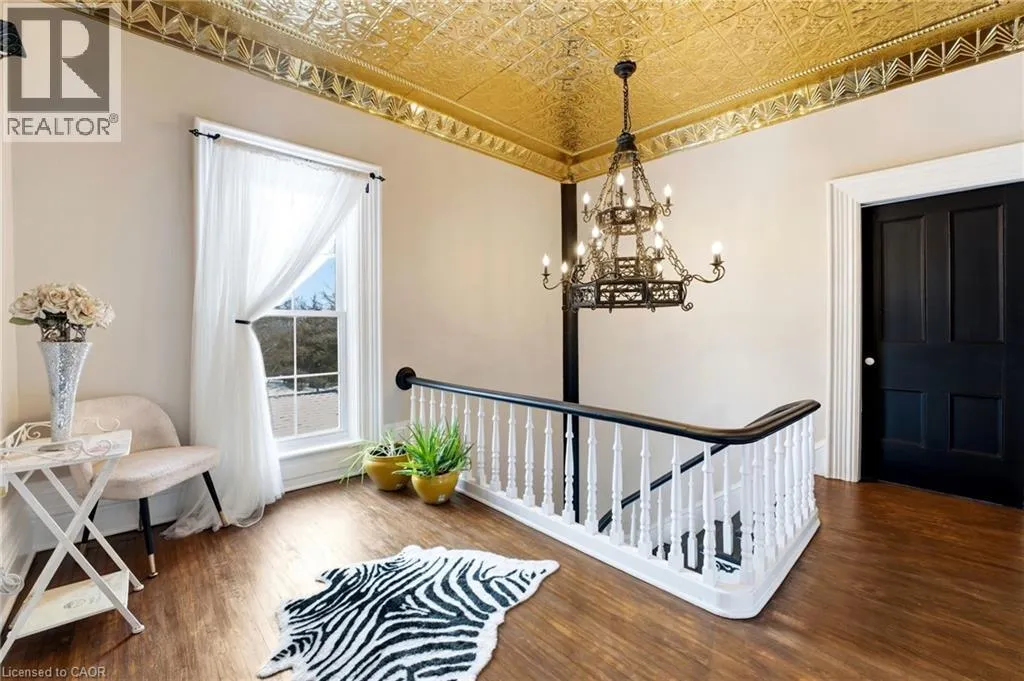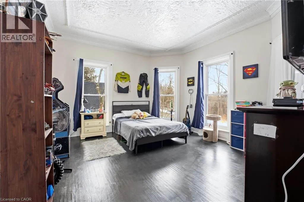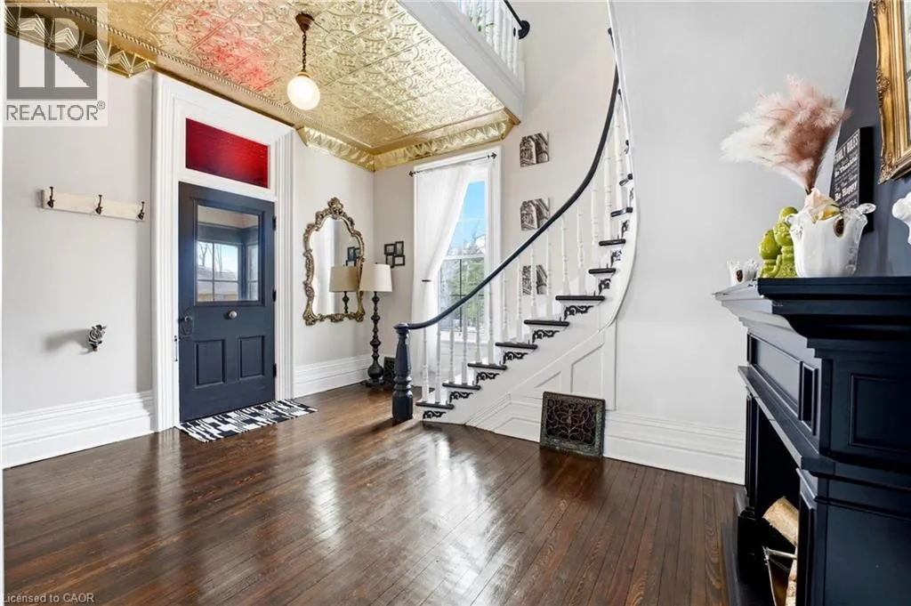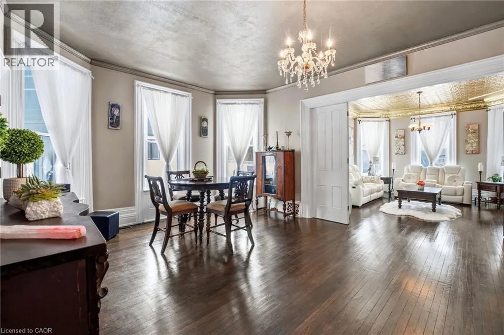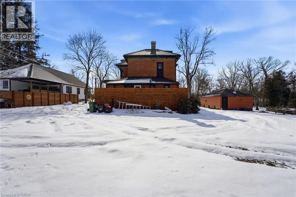 From Highway 3, turn onto Western Avenue. The property is located on the east side of the road. Welcome to the iconic Quance House â a celebrated landmark in Delhi, originally built in 1896 and steeped in local heritage. Once the residence of the prominent Quance family, owners of one of the last operating mills along Big Creek in Norfolk County, this grand 2.5-storey brick home is a timeless showcase of historic craftsmanship and enduring character. Set proudly on a rare half-acre corner lot spanning two streets, this stately property offers 4 spacious bedrooms plus a main floor office, 2 beautifully updated bathrooms, convenient main floor laundry, and a refreshed kitchen that blends modern function with classic style. Inside, the homeâs rich history is on full display. Soaring tin ceilings, refinished hardwood floors, original trim, and intricate architectural details create a warm and elegant atmosphere reminiscent of a bygone era. The formal dining room and expansive living room provide refined spaces for hosting gatherings or enjoying peaceful evenings at home. Thoughtfully maintained and updated, the home features newer windows, a durable steel roof, a double furnace system for efficient comfort, an owned hot water tank, and a Culligan water softener system. The full walk-through basement offers excellent storage and usability, complete with new awning-style windows that bring in natural light. Outdoors, the detached double-car garage includes an attached heated man cave â perfect for hobbies, a workshop, or entertaining on game day. The expansive backyard offers ample space to relax, garden, or explore the exciting potential for future lot severance. Located just steps from Quance Park, scenic walking trails, and the natural beauty of Big Creek, this is a rare opportunity to own one of Delhiâs most treasured historic homes. Historic charm. Modern comfort. Endless potential. (id:27476)