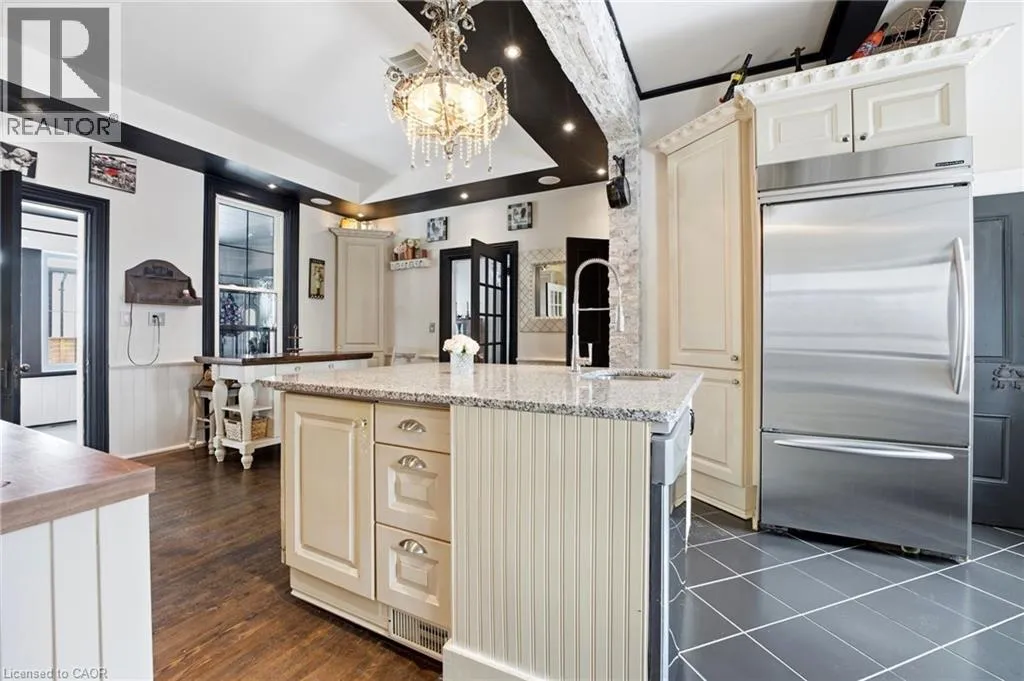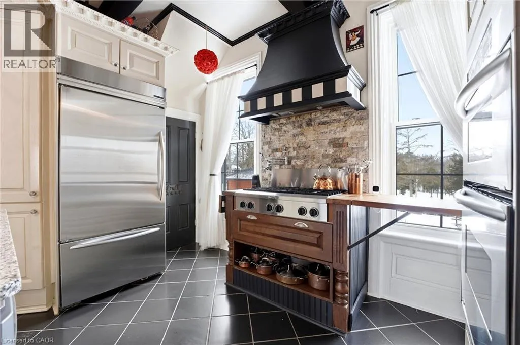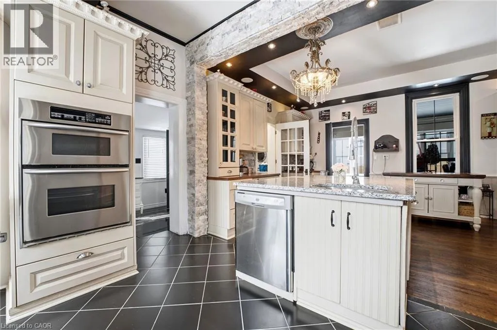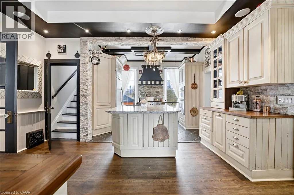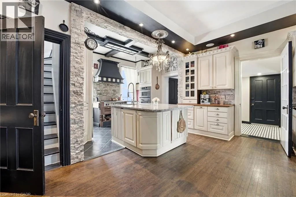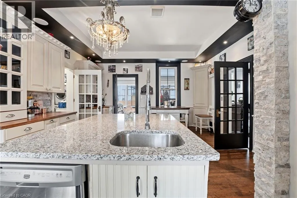 From Highway 3, turn onto Western Avenue. The property is located on the east side of the road. Welcome to the iconic Quance House â a celebrated landmark in Delhi, originally built in 1896 and steeped in local heritage. Once the residence of the prominent Quance family, owners of one of the last operating mills along Big Creek in Norfolk County, this grand 2.5-storey brick home is a timeless showcase of historic craftsmanship and enduring character. Set proudly on a rare half-acre corner lot spanning two streets, this stately property offers 4 spacious bedrooms plus a main floor office, 2 beautifully updated bathrooms, convenient main floor laundry, and a refreshed kitchen that blends modern function with classic style. Inside, the homeâs rich history is on full display. Soaring tin ceilings, refinished hardwood floors, original trim, and intricate architectural details create a warm and elegant atmosphere reminiscent of a bygone era. The formal dining room and expansive living room provide refined spaces for hosting gatherings or enjoying peaceful evenings at home. Thoughtfully maintained and updated, the home features newer windows, a durable steel roof, a double furnace system for efficient comfort, an owned hot water tank, and a Culligan water softener system. The full walk-through basement offers excellent storage and usability, complete with new awning-style windows that bring in natural light. Outdoors, the detached double-car garage includes an attached heated man cave â perfect for hobbies, a workshop, or entertaining on game day. The expansive backyard offers ample space to relax, garden, or explore the exciting potential for future lot severance. Located just steps from Quance Park, scenic walking trails, and the natural beauty of Big Creek, this is a rare opportunity to own one of Delhiâs most treasured historic homes. Historic charm. Modern comfort. Endless potential. (id:27476)