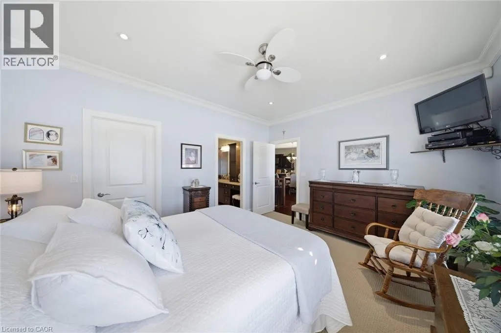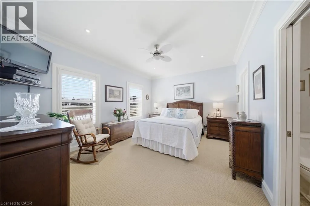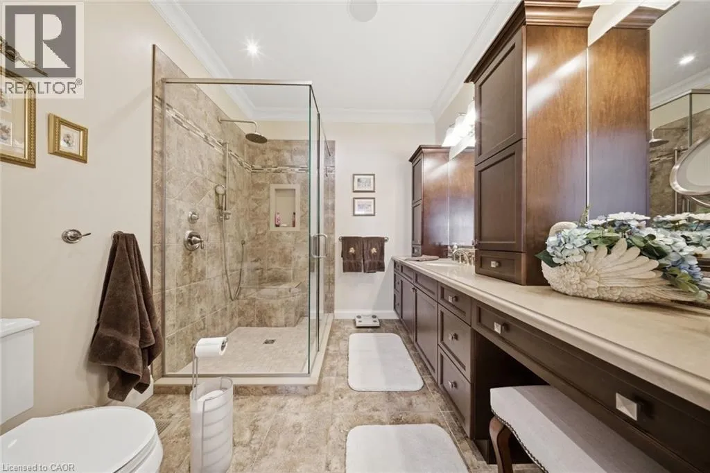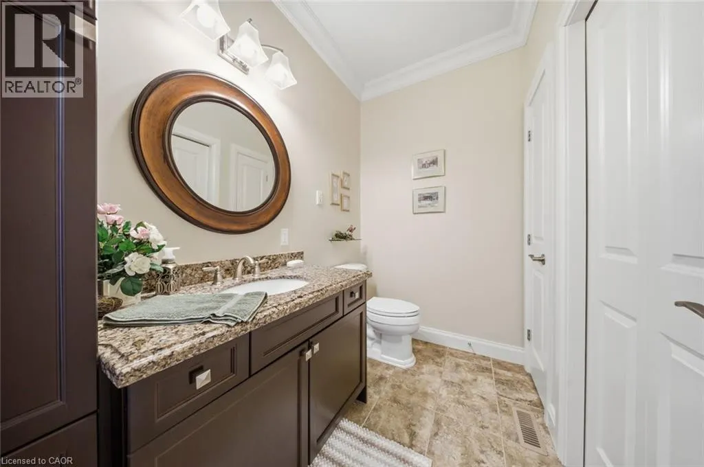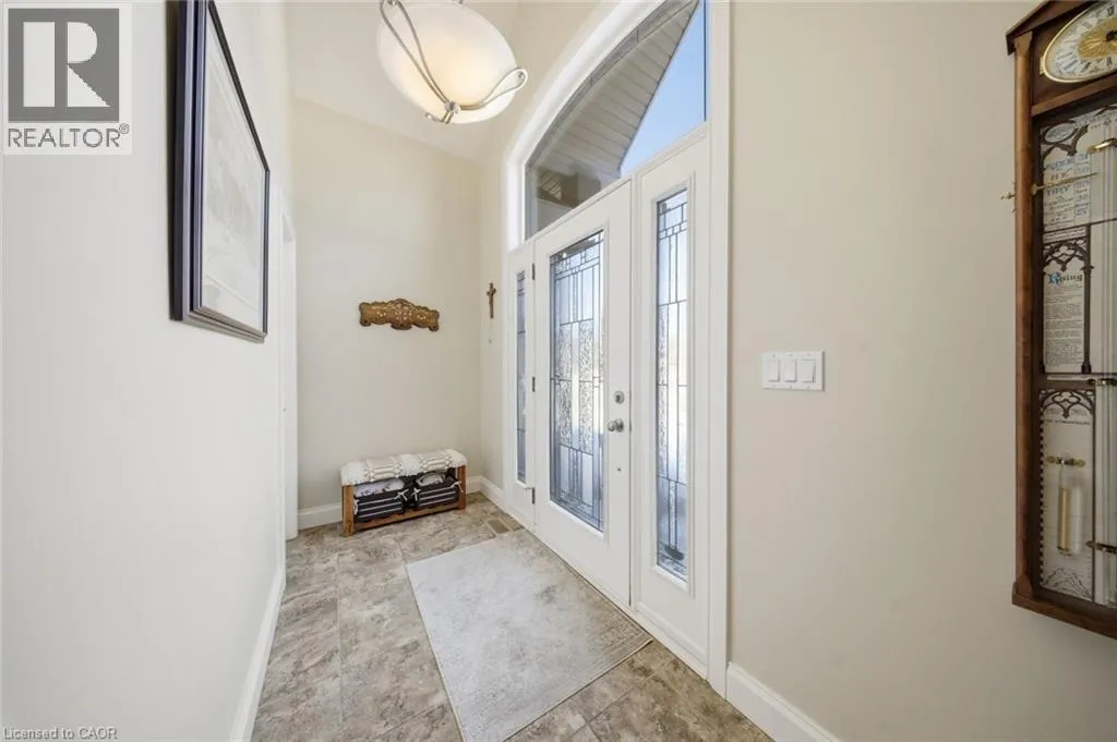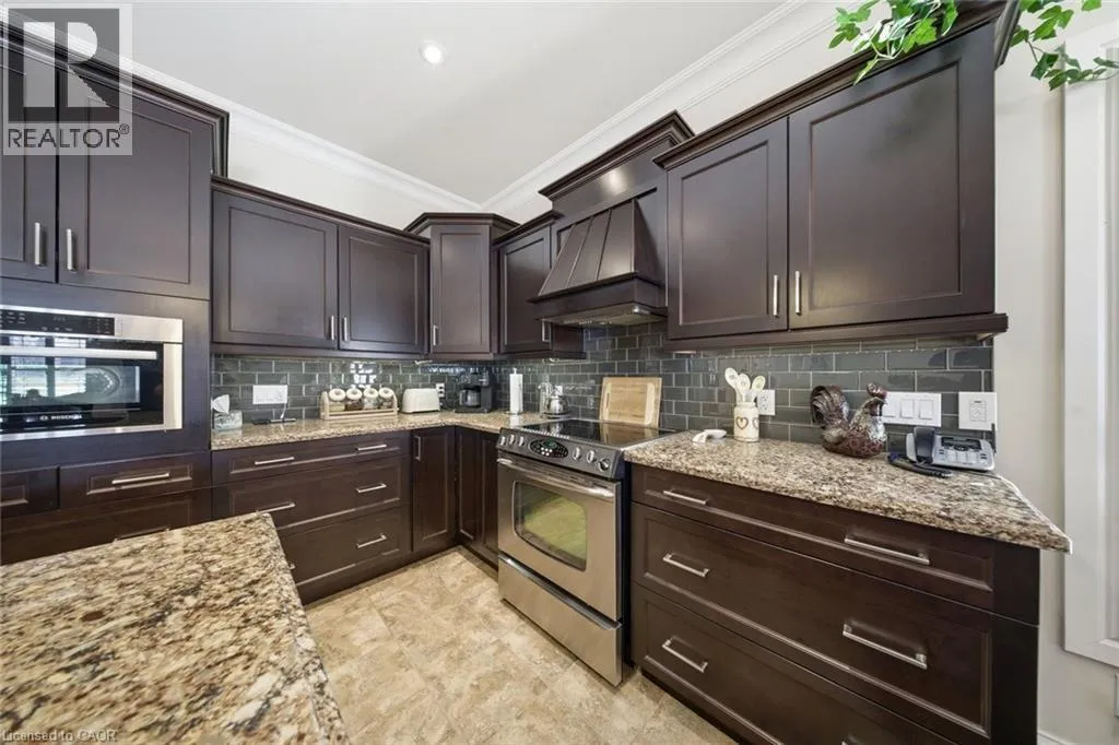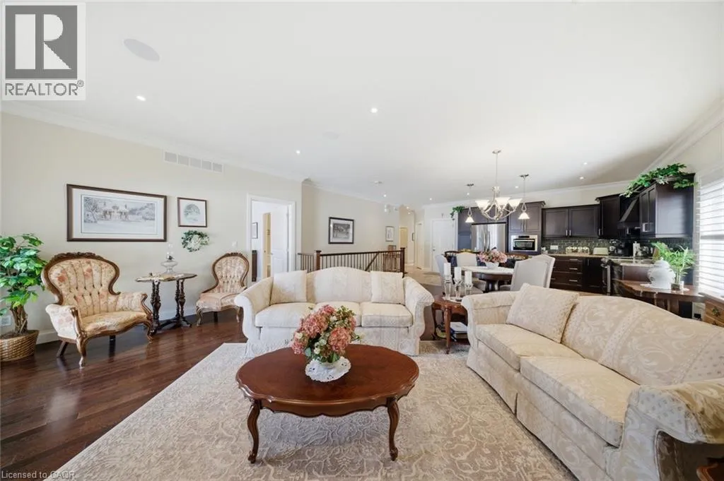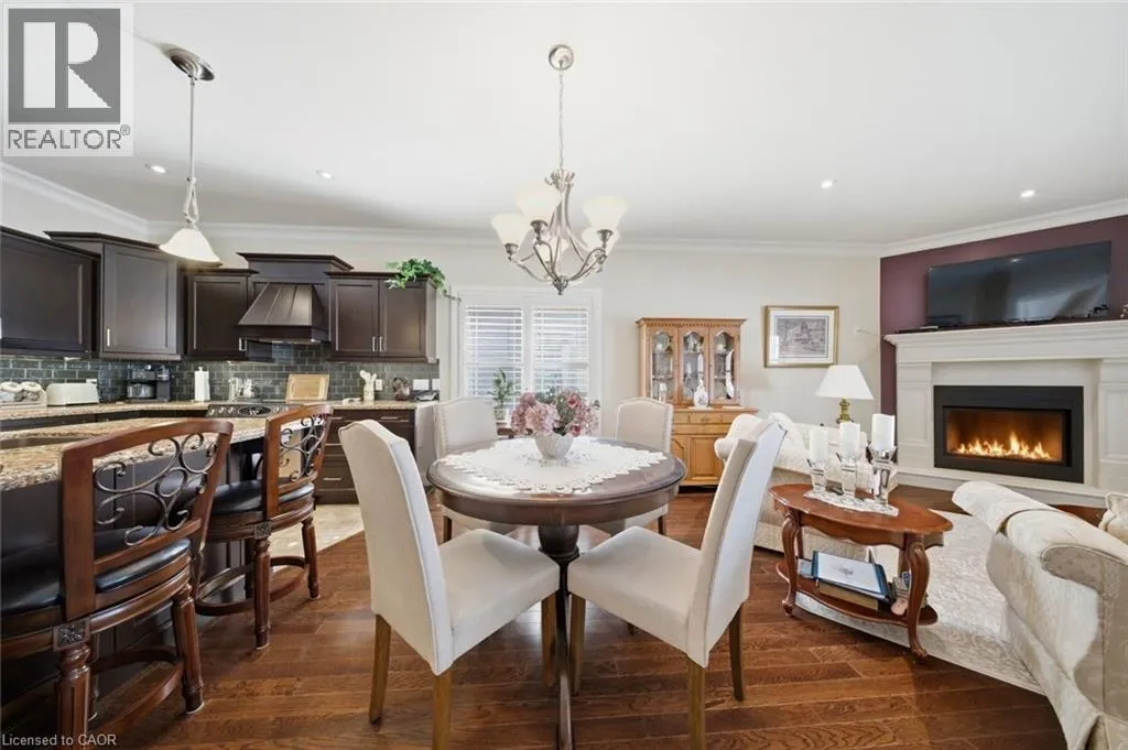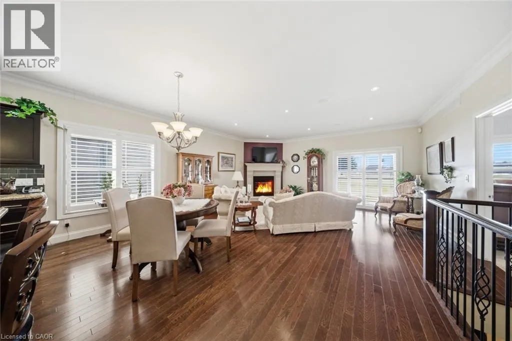 JAMES STREET TO WILSON AVE TO ST. MICHAELS STREET Welcome to this exquisite 4-bedroom, 3-bathroom residence in Delhi, where exceptional craftsmanship meets refined, modern living. From the moment you arrive, this home captivates with its timeless brick and stone exterior, concrete driveway, attached double garage, and impressive curb appeal. Thoughtful upgrades such as gutter guards surrounding the entire home add lasting value and low-maintenance convenience. The covered back porch is a true retreat, complete with sleek glass railings and remote-controlled sunshade blinds, perfect for relaxing or entertaining in comfort and style. Step inside to discover over 2,400 sq. ft. of beautifully designed open-concept living space. The gourmet kitchen is a chefâs dream, featuring elegant cabinetry, luxurious granite countertops, subway tile backsplash, a spacious island, and premium stainless steel appliances. The formal dining area and inviting living room showcase rich hardwood flooring, sophisticated crown molding, and a cozy gas fireplace with a custom hearth, creating a warm and welcoming atmosphere. The main floor offers two generously sized bedrooms, including a stunning primary suite with a walk-in closet and a stylish 3-piece ensuite highlighted by tiled flooring and a modern glass shower. A convenient 2-piece bath and dedicated laundry area complete this level. The fully finished basement expands your living space with a large recreation room ideal for gatherings, featuring a second fireplace, this one electric adding ambiance and comfort. Two additional bedrooms, a well-appointed 4-piece bathroom, and ample storage ensure space for family and guests alike. With contemporary décor, high-end fixtures, a built-in speaker system, two fireplaces (gas and electric), and thoughtful upgrades throughout, this home offers the perfect blend of luxury, comfort, and functionality. (id:27476)