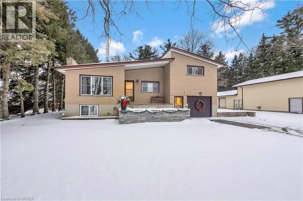 HWY 3, Rhineland Rd, 1st Concession Rd STR ***NEW PRICE***Set on a private 0.75 acre lot backing onto mature woods, this inviting country home offers the peace, space, and privacy buyers are always searching for. The well-cared-for side-split features 3 bedrooms plus a den and 2 bathrooms, with a main-level primary bedroom, hardwood flooring on the main level, radiant heating, wall-mounted A/C units, and a durable metal roof for low-maintenance living. Comfortable, efficient, and thoughtfully maintained over the years, itâs a home designed for easy country living. Fully finished lower level provides massive recreational area in addition to a bonus room and a separate entrance providing IN-LAW SUITE POTENTIAL! What truly sets this property apart is the exceptional 24ft x 100ft HEATED WORKSHOP! Fully powered and also equipped with a metal roof, the space is ideal for those who need room to work, build, or store. The insulated rear section offers 10-foot ceilings for projects or hobbies, while the front section features impressive 16-foot ceilings suited for larger equipment, vehicles, or serious storage. Quietly located just a few minutes away from Delhi for everyday amenities, this property delivers true rural privacy without sacrificing convenience. Newly Paved Circular Driveway 2023. Updated eavestrough, hot water heater and boiler system (2017). Upgraded Kitchen and new septic installed (2012). Steel Roofs 2010. This property is move in ready! (id:27476)