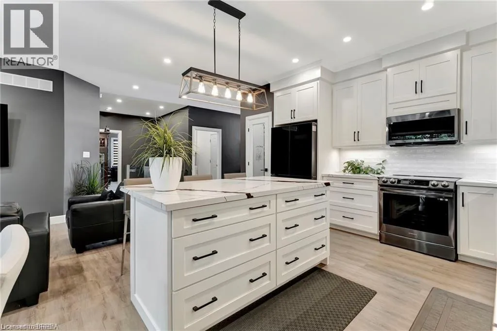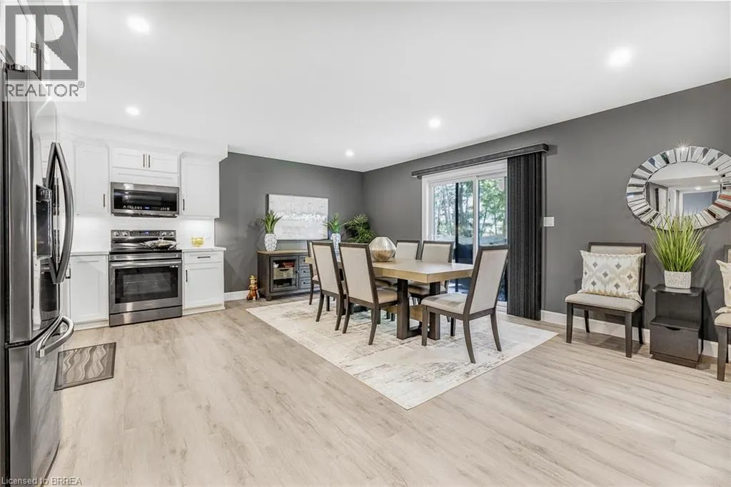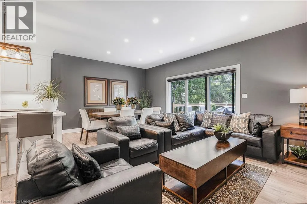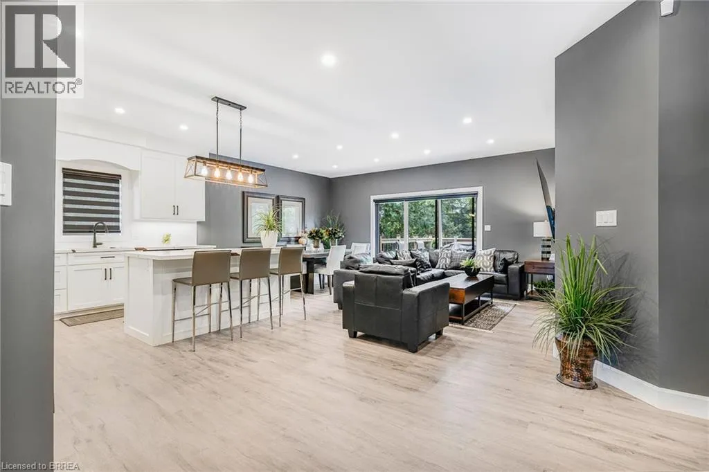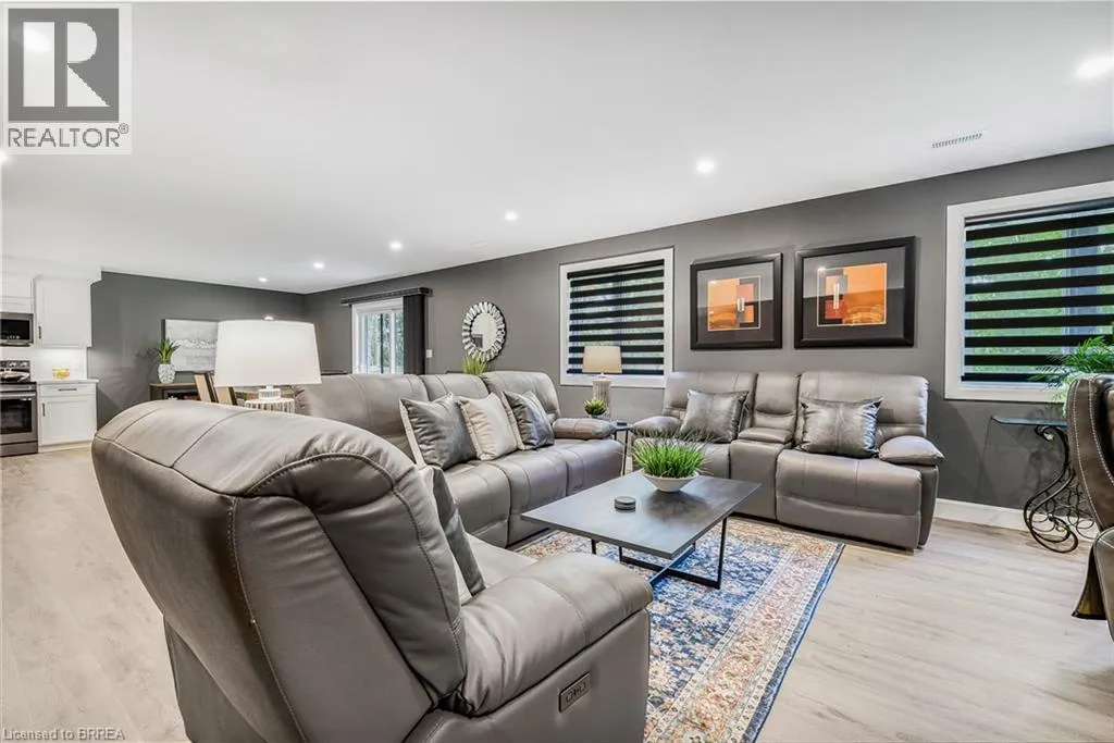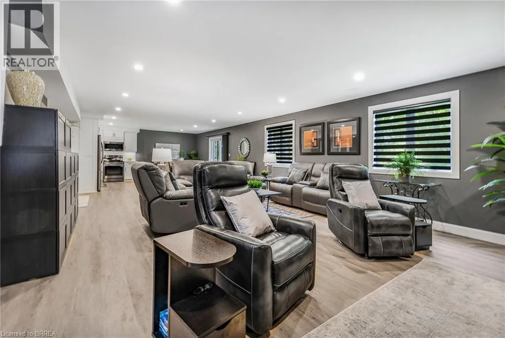 Travelling North on Hwy #3 (James Street), property will be on your left hand side. Welcome to 442 James Street, located in the picturesque town of Delhi. This exceptional bungalow effortlessly combines contemporary design with refined modern finishes, making it perfect for multi-generational living or a complete in-law suite setup. From the moment you arrive, the superior craftsmanship is clearâstarting with the inviting double sidelight entry door and continuing into the spacious foyer that opens into a bright, open-concept living space. The expansive main area features a chef-inspired kitchen complete with soft-close cabinetry, under-mount lighting for ambiance, a generous pantry, eye-catching quartz countertops, a large island, and cutting-edge Smart appliances. Just off the kitchen, the dinging and living areas flow seamlessly and includes sliding doors that open onto a raised deck, offering peaceful views of the private backyard. The main floor also offers three generously sized bedrooms, including a luxurious primary suite featuring a walk-in closet and an elegant ensuite bathroom with a beautifully tiled glass-door standalone shower. A second 4-piece bathroom is conveniently located for guests and family members, along with a practical laundry room that provides direct access to the garage. Head downstairs to the fully finished lower level, where the same attention to quality and detail continues. This level includes two more bedrooms, a stylish 4-piece bathroom, a full kitchen, and a spacious dining area and family room that opens to a cozy covered porch overlooking the backyard. Step outside and enjoy your peaceful outdoor retreat, surrounded by mature trees that add natural beauty and privacy. This thoughtfully designed home offers the perfect combination of modern comfort, functional living, and timeless elegance. At 442 James Street, youâll find a true havenâideal for both entertaining and everyday relaxation in your dream home! (id:27476)