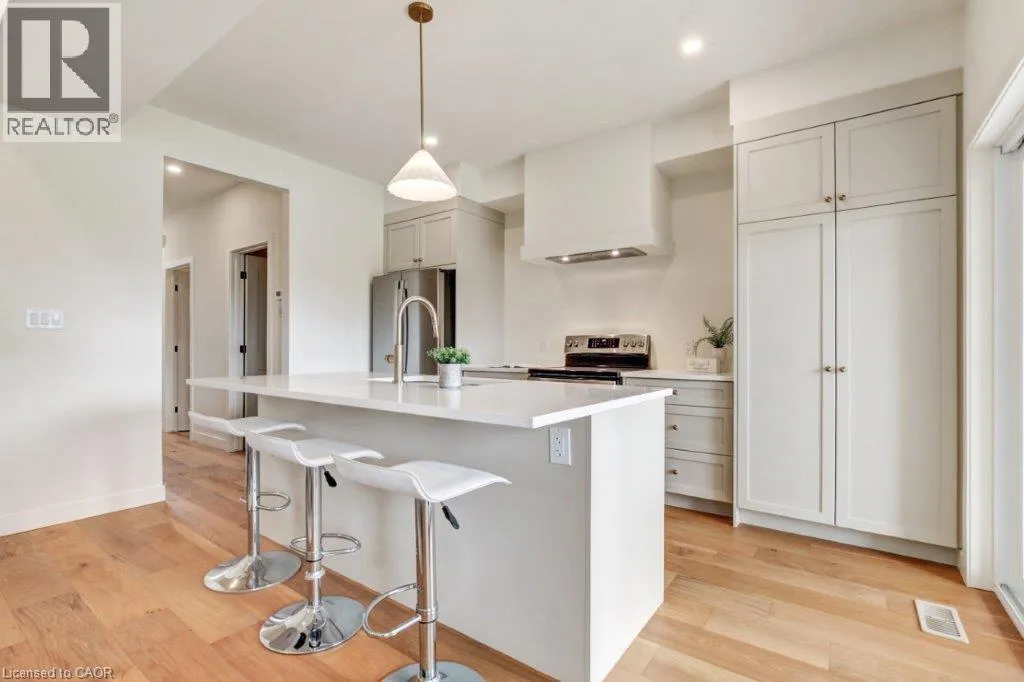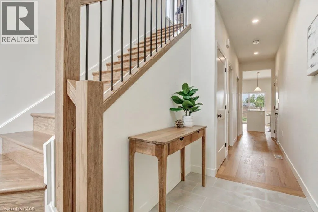 Hwy 3 to William St. West on William to 214 This brand-new 2-storey townhome offers modern design in a welcoming community. With 1,548 sq. ft., the main floor features a bright open concept kitchen, dining, and living area with a large island, custom cabinetry, and new stainless steel appliances. A powder room, walk-in closet/pantry, and access to the covered porch and private backyard complete the level. Upstairs youâll find a primary suite with 3-piece ensuite and walk-in closet, two more generous bedrooms, a full 4-piece bath, and a laundry room with washer and dryer. This model is carpet free with hardwood floor throughout. An attached garage, paved driveway, and Tarion warranty round out this thoughtfully finished home. First time home buyers can now qualify for additional HST rebates on new builds. Pictures are of a similar model for illustration purposes only. Taxes not yet assessed. (id:27476)