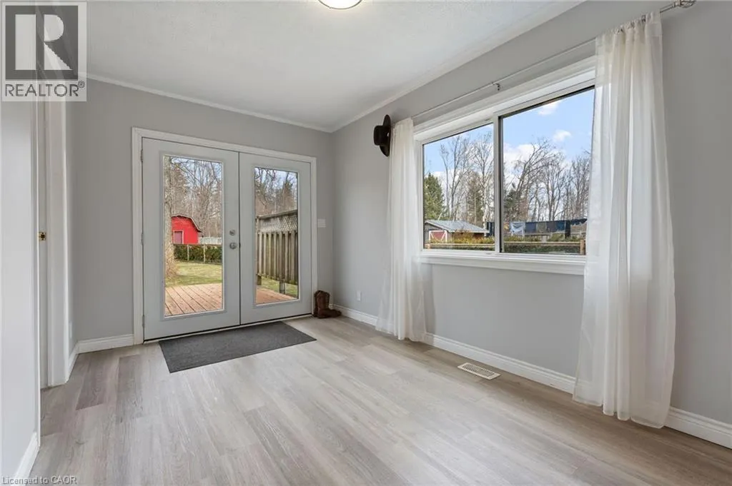 Hwy 3 toward Delhi on North side. Welcome to the perfect blend of country living and convenienceâset on a deep 274 ft lot just minutes to town, this bungalow with a heated shop offers space, function, and versatility for a wide range of buyers. Step inside to an inviting open-concept layout featuring a bright living, dining, and kitchen areaâideal for both everyday living and entertaining. The kitchen is equipped with stainless steel appliances and flows seamlessly into the rest of the home. The main floor offers two generously sized bedrooms and a well-appointed 4-piece bathroom. A practical step-down mudroom area adds everyday convenience, complete with a 3-piece bathroom with jacuzzi tub and in-home laundry. Downstairs, the home continues to impress with a spacious recreation roomâperfect for relaxing or hostingâalong with an additional bedroom and space for a home office or flex use. Outside, enjoy a wood deck behind the attached garage, creating a great outdoor living space. A poured concrete driveway leads to the rear of the property where youâll find the standout featureâa newer 32 x 50 heated and insulated shop with a concrete floor. Whether you're a truck driver, mechanic, hobbyist, or simply need extra storage for toys and equipment, this shop is a rare and valuable addition. This home is bigger than it looks and offers incredible value for those seeking space, functionality, and a peaceful setting. Donât miss your chanceâproperties like this donât last long. (id:27476)