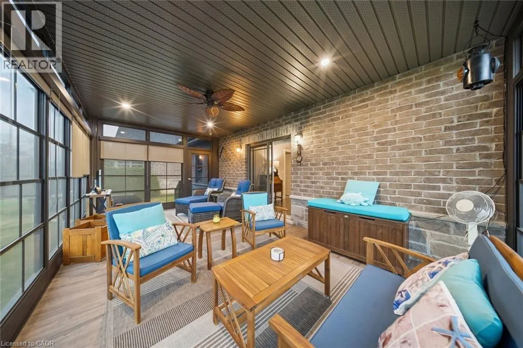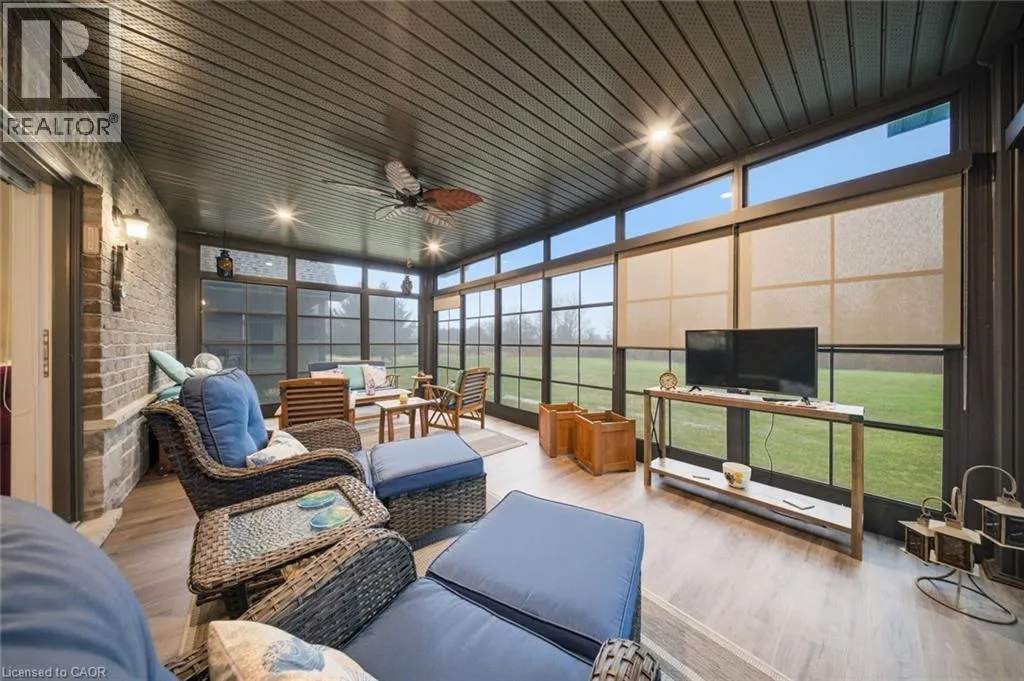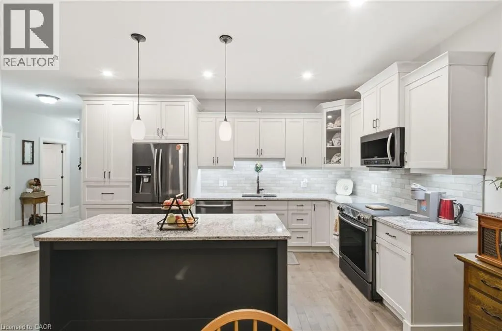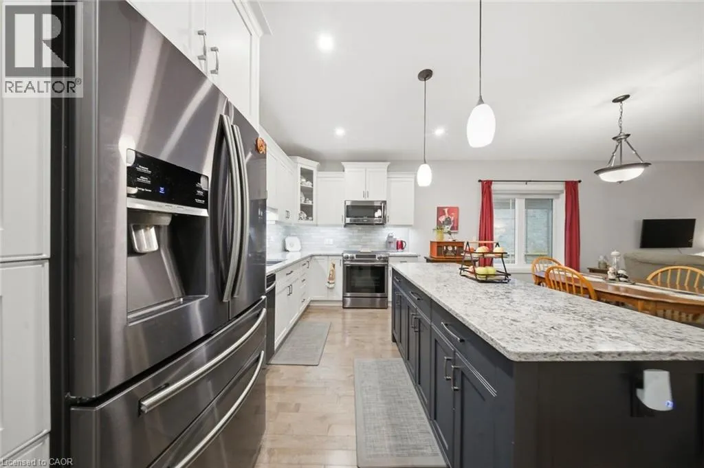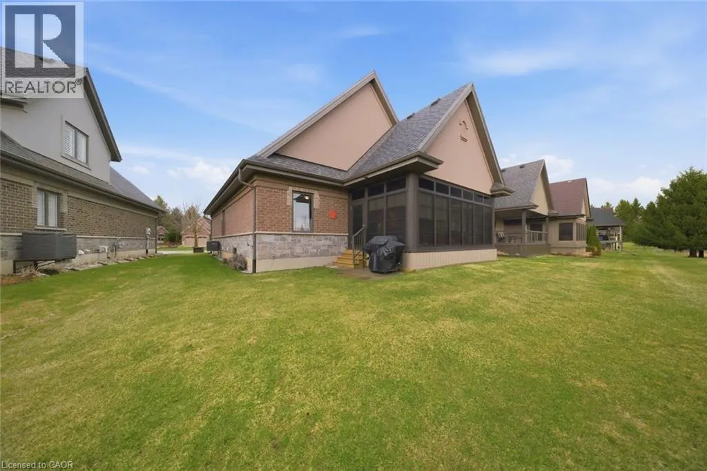 Wilson Ave to St. Michael's Discover quality craftsmanship in this executive bungalow built in 2017, offering 2+1 bedrooms and 3 bathrooms, ideally located in the desirable Fairway Estates community in Delhi. These freehold homes include the added convenience of condo maintenance fees that cover lawn care and snow removal. The main floor features a bright, open-concept kitchen, dining, and living area that seamlessly flows onto a covered three-season porch, perfect for relaxing or entertaining. Just off the living room, the spacious primary suite offers a welcoming ensuite and walk-in closet. An additional bedroom and full bathroom complete the main level. The lower level provides even more living space, including an inviting recreation room, ample storage, and a utility room. Youâll also find comfortable guest accommodations, complete with a private bedroom, ensuite, and closet. If youâre considering a move, this beautifully designed home is certainly worth a closer look. (id:27476)