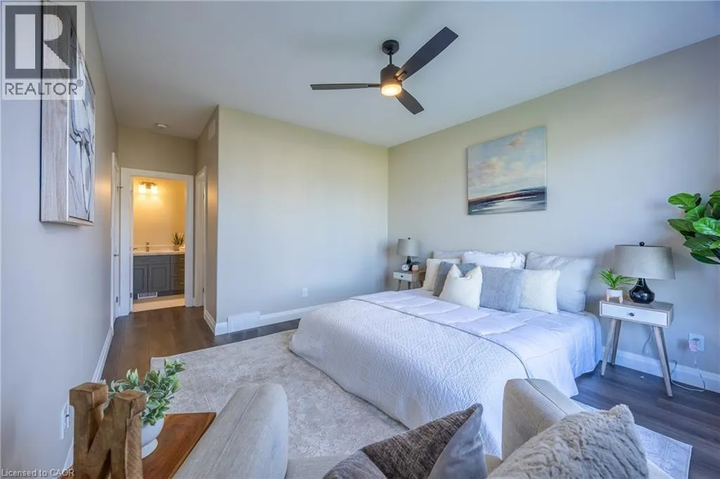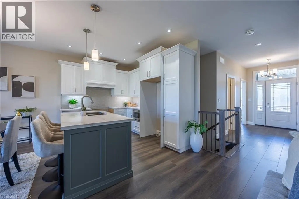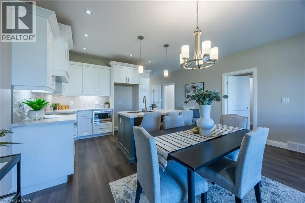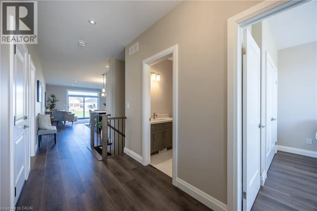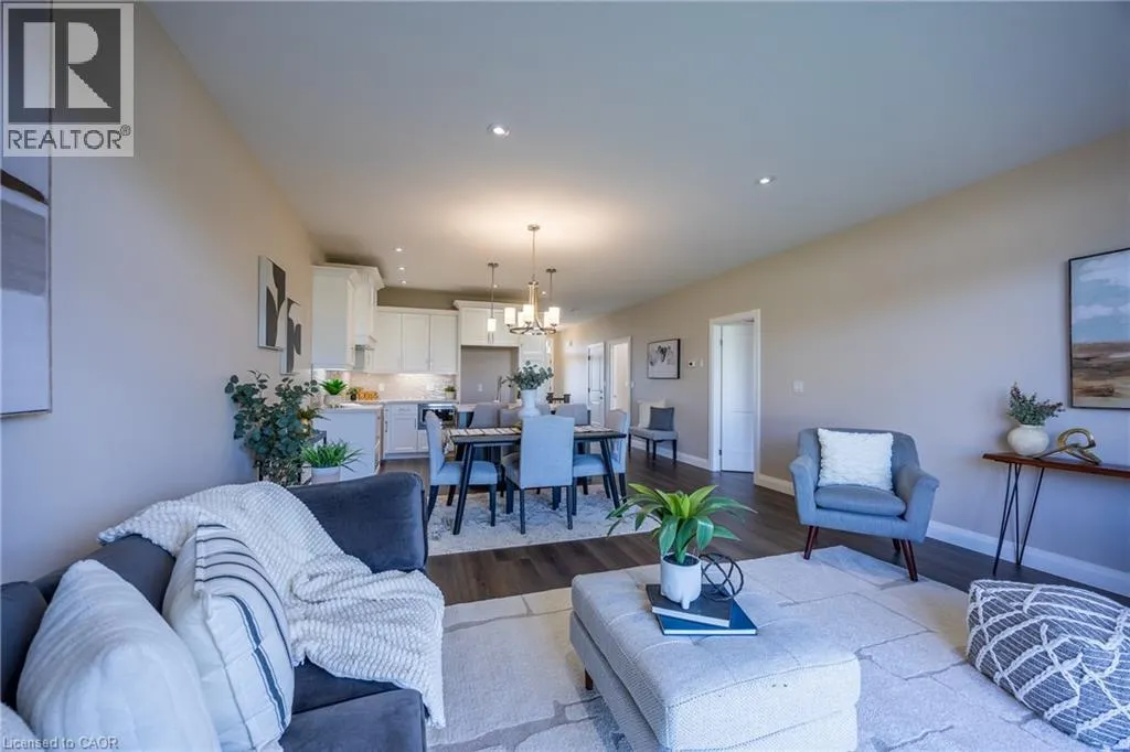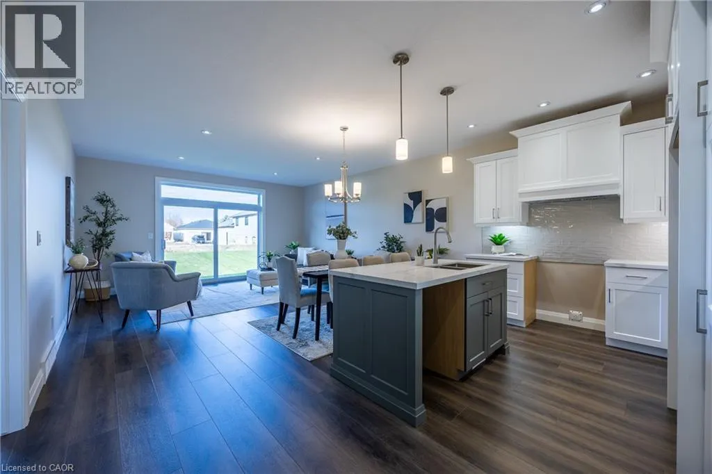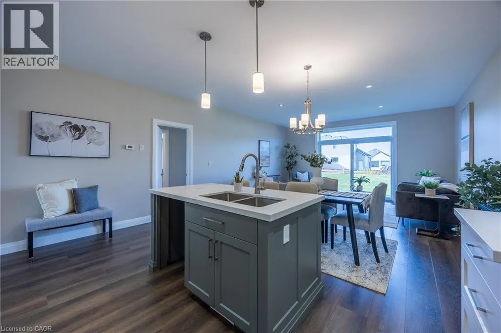 James Street, turn east on Argyle Ave Beautiful custom-built semi-detached home offering 1,250 sq. ft. of modern main-floor living in the heart of Delhi. This thoughtfully designed 2- bedroom, 2-bathroom layout features an open-concept kitchen, dining, and living areaâideal for everyday living and entertaining. High-end standard finishes include quartz countertops, quality wood cabinetry, and a spacious island with seating. Neutral wood-tone luxury vinyl plank flooring flows seamlessly throughout, complemented by modern lighting and a bright, airy feel. The primary bedroom offers a walk-in closet and a private 4-piece ensuite. Additional features include a single-car garage with automatic door opener and hot/cold water taps. Immediate possession available. Appliance package available. A fantastic opportunity to own a new home in a growing community with small-town charm. (id:27476)