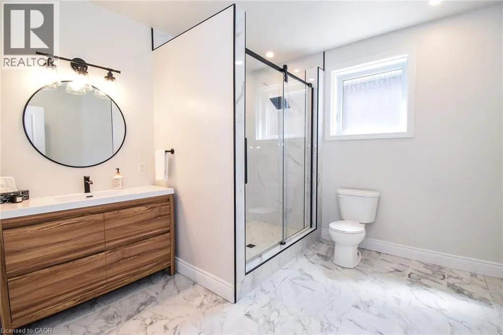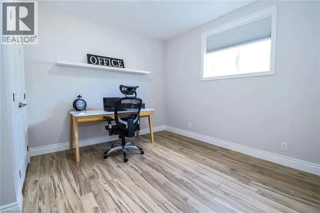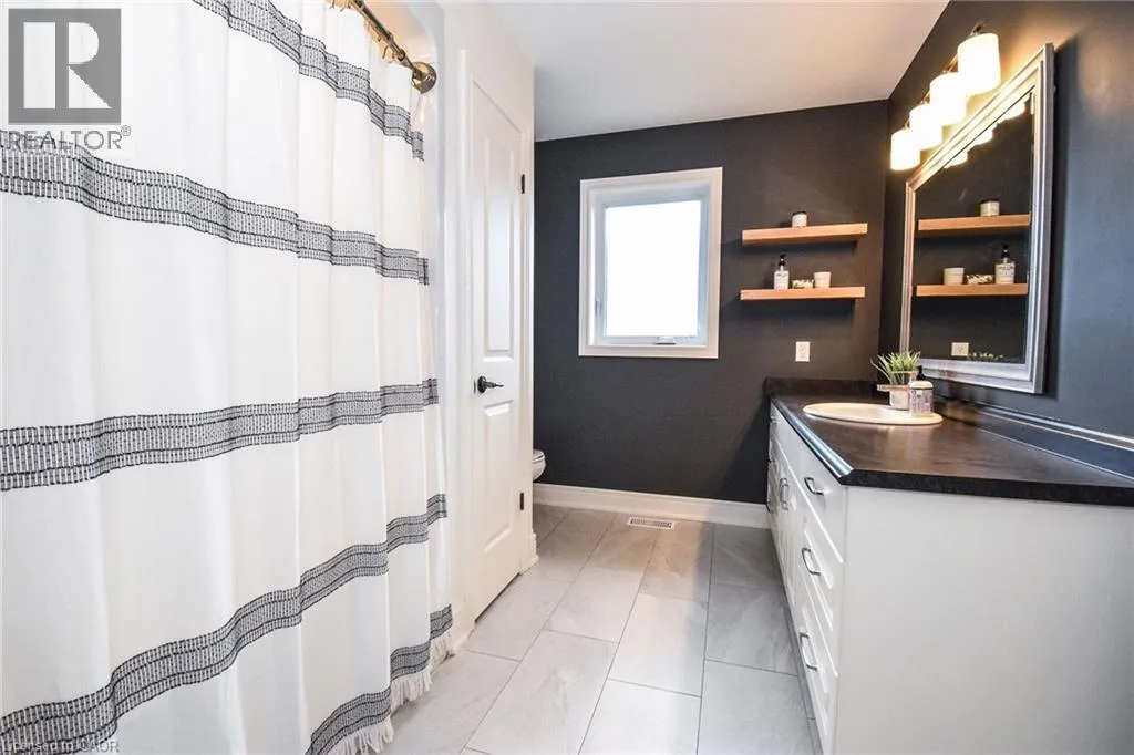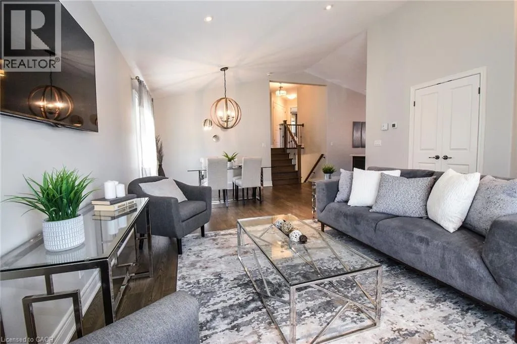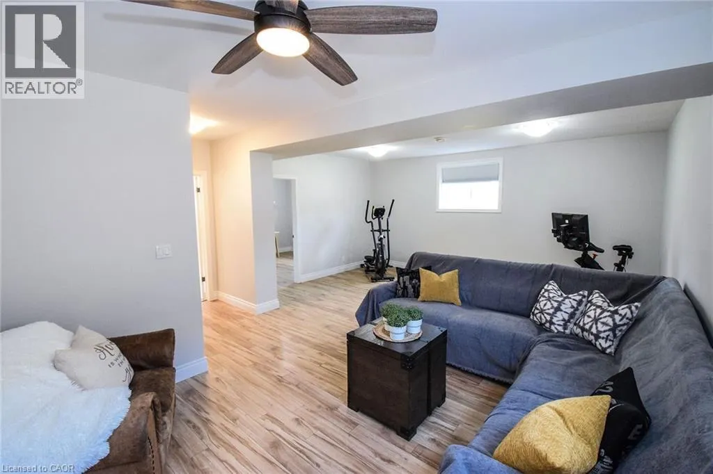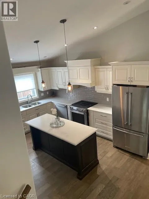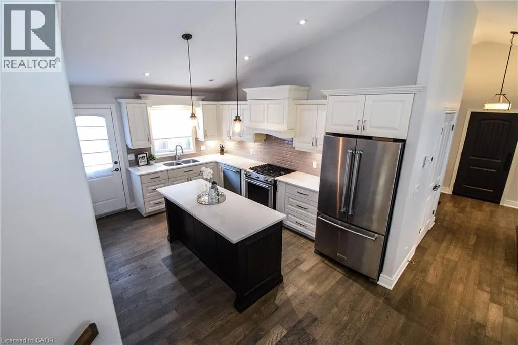 From Church St E, Take Greening Dr to Courtland. Welcome to 295 Courtland Street, Delhi! Beautiful 4 level backsplit offering the perfect blend of comfort, functionality and modern curb appeal. This spacious 4 bedroom, 2 bath home has 3 levels completely finished. Featuring a stunning main level layout with open concept that offers a bright and inviting LR/DR combination with vaulted ceiling, modern kitchen with ample cabinetry and an island, quartz counter tops and side entrance to patio. The second level has 3 generous sized bedrooms, main 4-pc bath with a primary bedroom having ensuite privileges. Third level reveals a cozy family room, additional bedroom or office, 3-pc bath with tiled walk-in shower. The lower level is a blank canvas and the opportunity to finish with your personal touch. Several exterior features include all brick home, attached double car garage, stamped concrete patio, fully fenced, sprinkler system and paved driveway. **Professionally painted June 2025 and new carpet in primary bedroom. (id:27476)