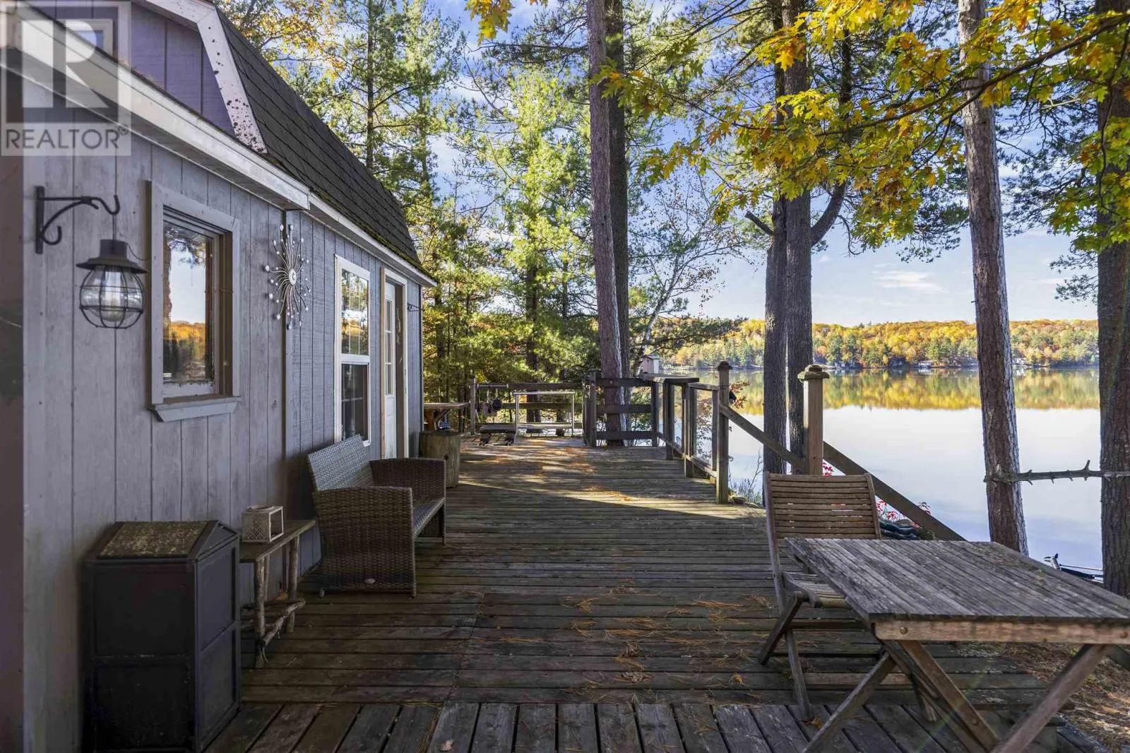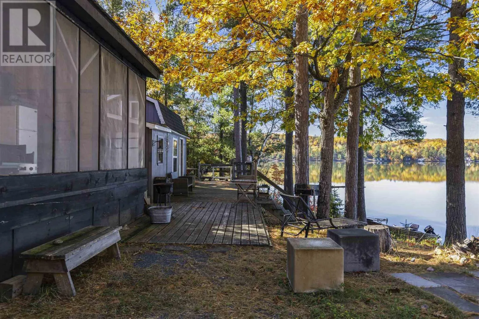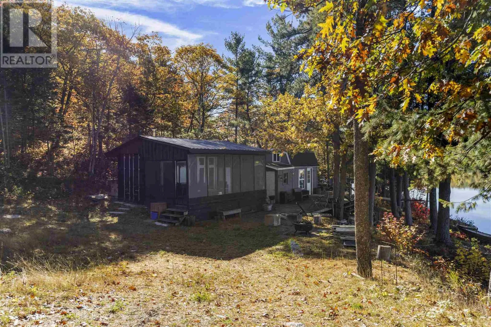 Private off-grid retreat on Desbarats Lake, offering 286 feet of shoreline and 5.65 acres of land with mature pine and oak trees framing the waterfront. Enjoy west-facing views providing sunsets every night of the year from this peaceful, natural setting. The property includes a fully renovated, converted sea can bunkie with a large screened in porch set close to the waterâs edge, creating a charming and unique waterfront retreat. Further features include a new shower and vanity in the bathroom, with solar power and generator setup for comfortable seasonal use. Spend your days on the expansive lakeside deck with glass railings, or out on the lake, easily accessible with the floating dock. There are also two additional sleeping bunkies for guests, and a private driveway off a year-round maintained road that winds in through the trees with a convenient turnaround near the camp. A true off-grid oasis surrounded by nature â peaceful, private, and perfectly positioned to enjoy everything Desbarats Lake has to offer. Call Today! (id:27476)