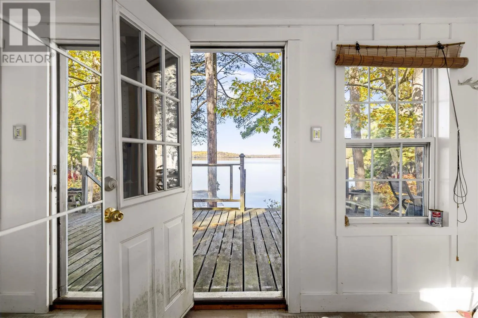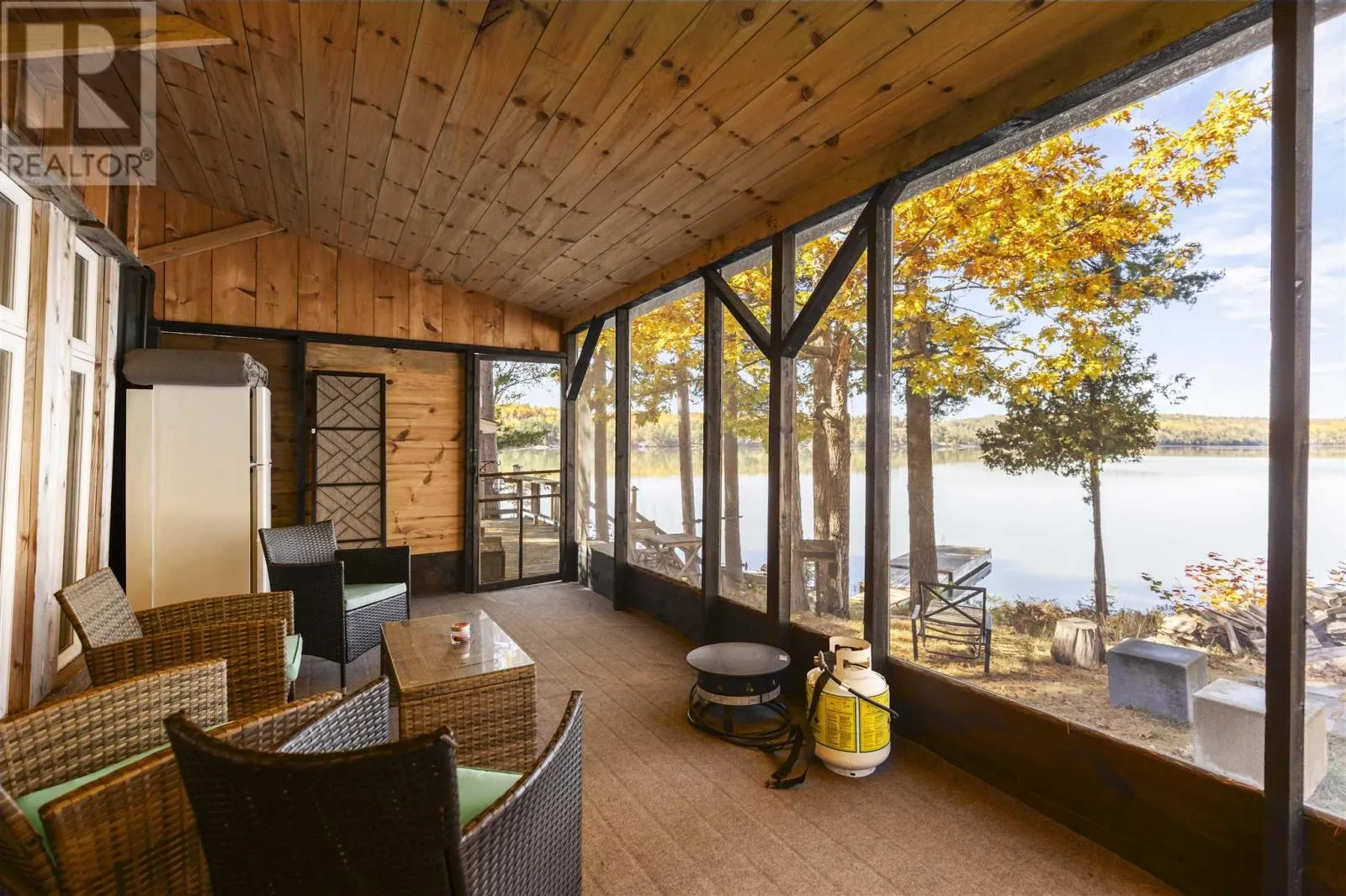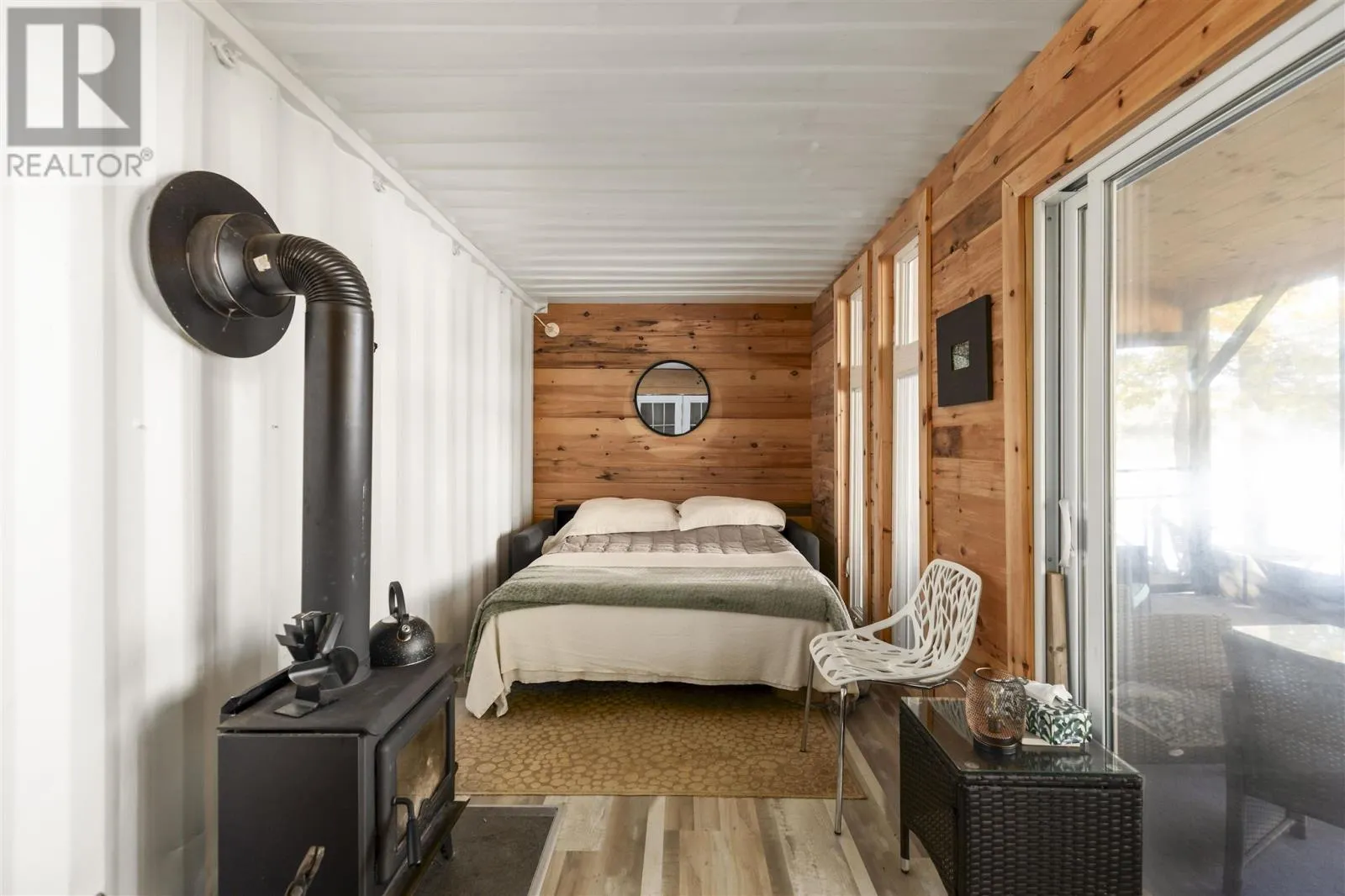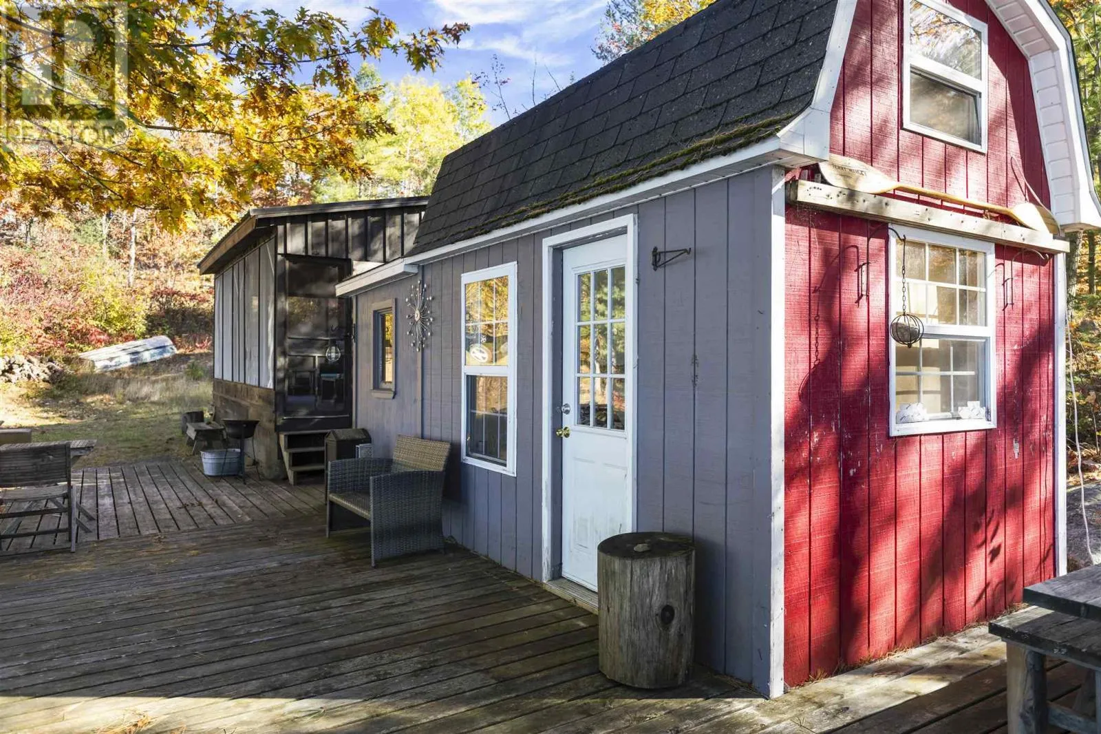 Private off-grid retreat on Desbarats Lake, offering 286 feet of shoreline and 5.65 acres of land with mature pine and oak trees framing the waterfront. Enjoy west-facing views providing sunsets every night of the year from this peaceful, natural setting. The property includes a fully renovated, converted sea can bunkie with a large screened in porch set close to the waterâs edge, creating a charming and unique waterfront retreat. Further features include a new shower and vanity in the bathroom, with solar power and generator setup for comfortable seasonal use. Spend your days on the expansive lakeside deck with glass railings, or out on the lake, easily accessible with the floating dock. There are also two additional sleeping bunkies for guests, and a private driveway off a year-round maintained road that winds in through the trees with a convenient turnaround near the camp. A true off-grid oasis surrounded by nature â peaceful, private, and perfectly positioned to enjoy everything Desbarats Lake has to offer. Call Today! (id:27476)