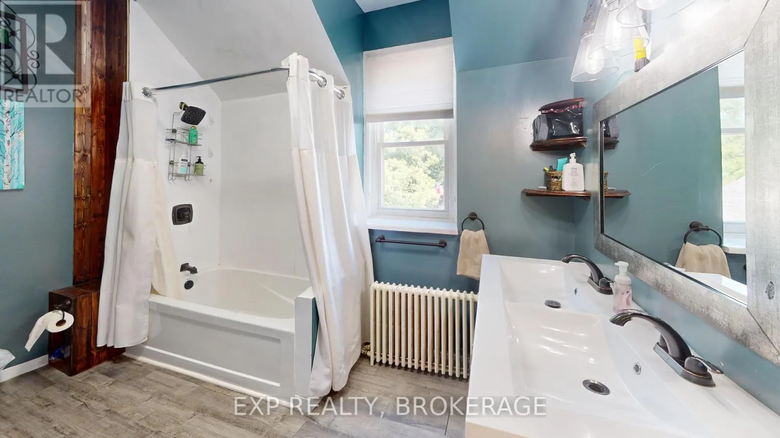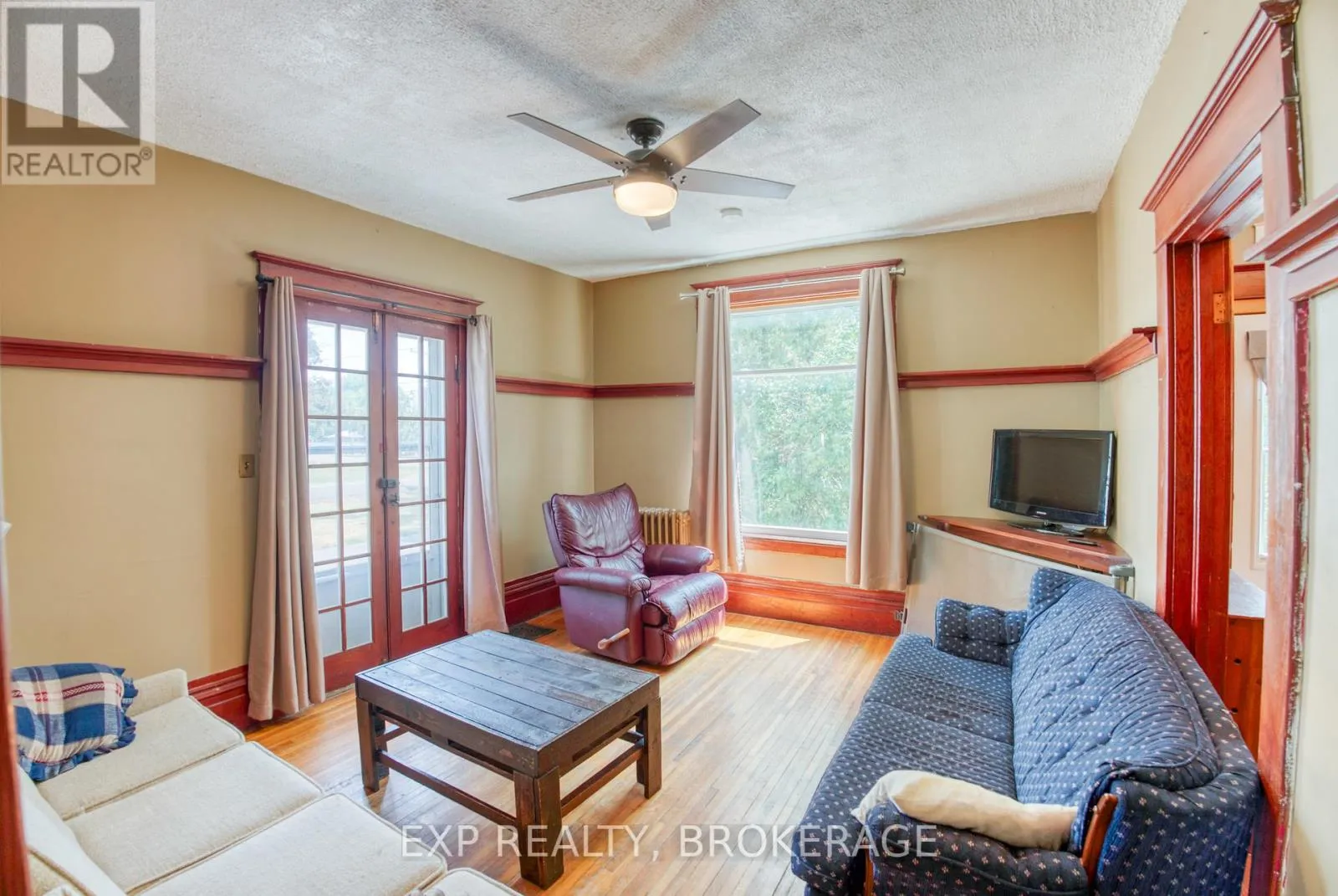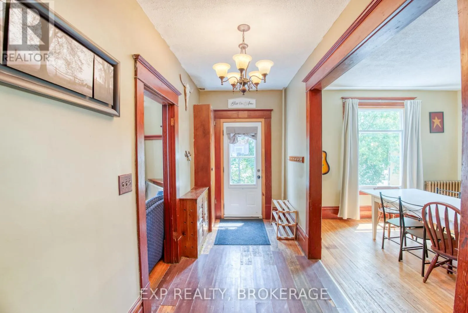 Just west of Pearl Street. This classic century home is a beautifully preserved piece of history, rich in character and original detail. It's timeless charm is captivating- stunning original wood trim, hardwood floors, soaring ceilings, and large windows that flood the space with natural light. Highlights of the main floor are an elegant dining room that has the original plate shelf around the perimeter of the room, and a walk out through classic, wood, double french doors; a gorgeous living room that has a gas fireplace that honours the original mantel and trim design, and authentic solid wood, double pocket doors that open into a charming parlour area graced by a grand bay window. Upstairs, there is a foyer with a large linen closet, four bedrooms, and a full bathroom (renovated in 2021) with convenient upper-level laundry. The home retains the warmth and charm of its original radiator heating system-run by a modern gas boiler. Outside, the extra-large yard is decorated by flower beds and framed with trees for privacy and shade. There is a double-car garage and circular driveway for ease of access. This home is the perfect place for entertaining or relaxing, both indoors and outdoors. All of this is ideally situated in the heart of Deseronto- close to amenities, parks, and the waterfront. This gorgeous home, where moments with family and friends- and time itself- are treasured, is meant to be yours. Schedule your private viewing today. (id:27476)