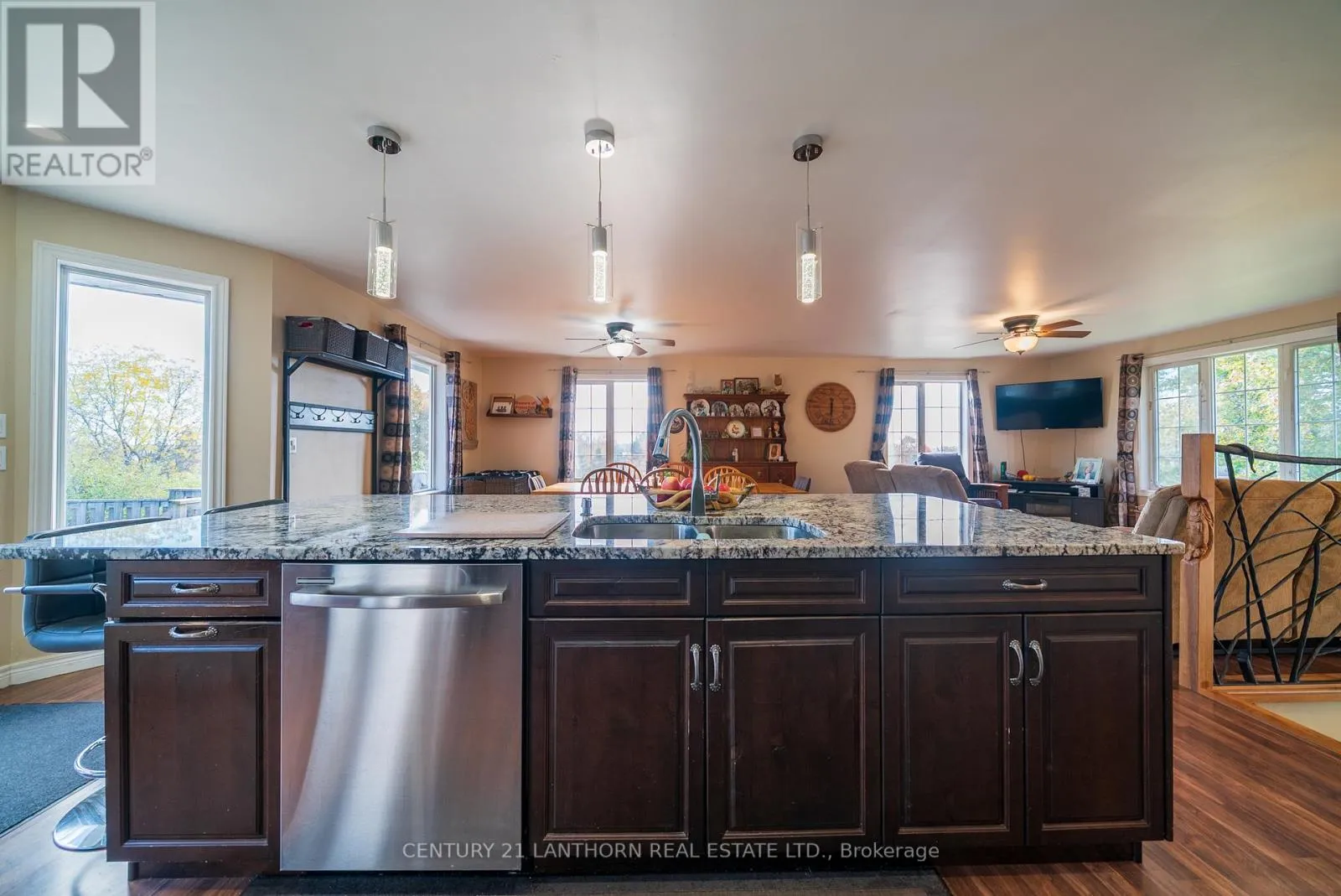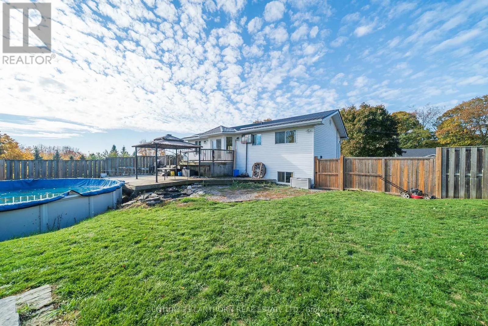 Cross Streets: Dundas Street. ** Directions: From Dundas Street (County Road 2). Turn North onto Centre Street - 144 Centre Street will be on your left. Spacious and well-maintained 5-bedroom, 2-bath bungalow in a welcoming, family-friendly neighbourhood. The open-concept main level features a stunning granite kitchen island, stainless steel appliances, and soft-closing solid wood cabinetry. A walkout leads to a large deck with an above-ground pool - perfect for entertaining or family fun. Bright living and dining areas are filled with natural light from large windows. The lower level offers two additional bedrooms, a 3-piece bath, and a cozy recreation room with a natural gas fireplace - ideal for movie nights or guest accommodations. Mechanicals include forced-air natural gas heat, an HRV system, 200-amp electrical service, and municipal water and sewer. Outside, offers a double-wide driveway, fenced corner lot, and cherry and apple trees with plenty of space for gardening or play . Conveniently located close to the Deseronto Public Library, community centre, park, grocery store, and schools - this property combines comfort, convenience, and family living. (id:27476)