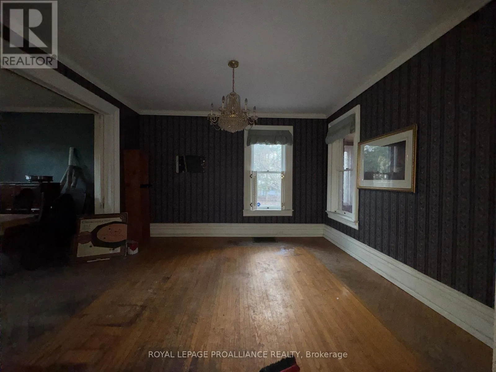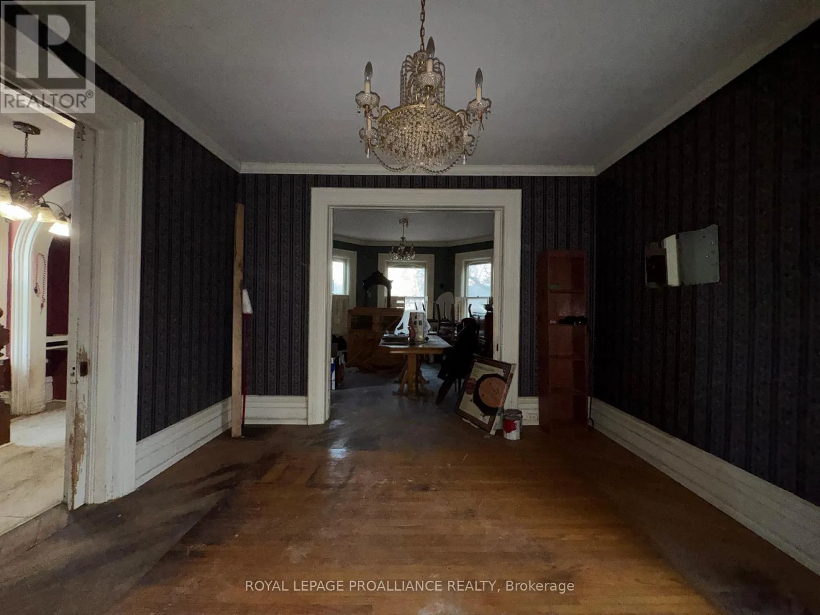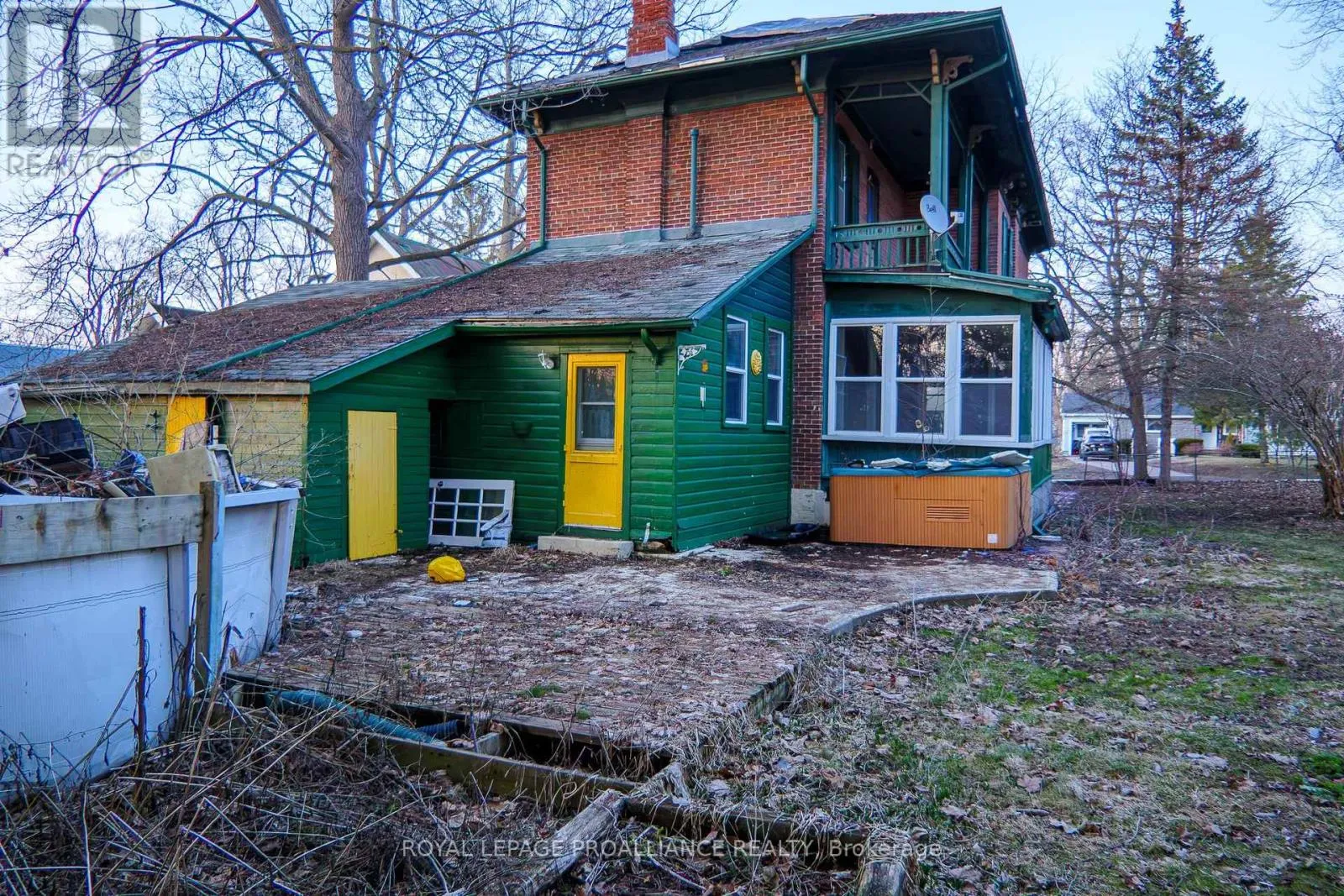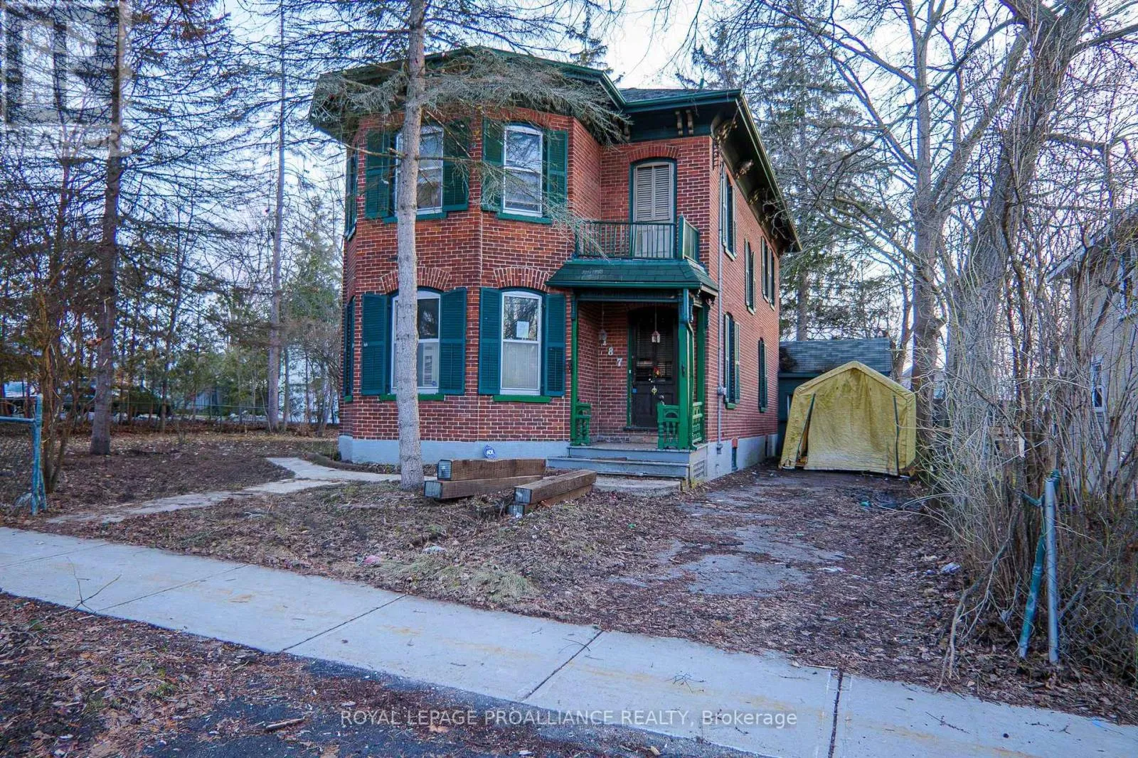 Cross Streets: Highway 2 and St. George Street. ** Directions: Highway 2 into Deseronto and North onto St. George Street. Historic mainstay in Deseronto. This stately landmark has a long history dating back 1897 & was once a crown jewel of town. Restore it to its former glory & heritage, now offered at an affordable price & incredible value. Situated on a large dbl lot measuring 81.5ft wide by 127ft deep, conveniently positioned close to school, park & downtown. Enter through the front door & you will be greeted by ornate woodworking, large mouldings/trim, archway & crown moulding. Diagonal hdwd flooring in the front parlour/living room separated by 2 sets pocket doors in the formal dining room. Located in the centre of the house is a family room & 4 season sunroom with pine tongue & groove ceiling, overlooking the side yard. A small but functional kitchen leads to a versatile rear summer kitchen or bonus room. The area is perfect for expansion to a larger, open concept kitchen space. Rounding out the main level is a 2pc. bathroom, storage closet & stairs leading to the full height, unfinished basement. Upstairs is home to 3 large bdrms, 2 full baths & an upper laundry area. Primary bdrm has side door access to a private balcony, dedicated ensuite bath with clawfoot tub & laundry hookups. Down the hall are 2 more bedrooms, one with a large bay-style window. Lastly there is a 4pc. main bath that has another door to a front private balcony. Outside is parking for 3+ cars, attached single+ garage, partially fenced yard & mature trees. Home is being sold as-is, where-is with no representation or warranties. The home appears solid but is in need of significant repairs & renovation. Great potential to own a piece of history in Deseronto. Condition of pool, hottub, HVAC systems, etc. is unknown. (id:27476)
