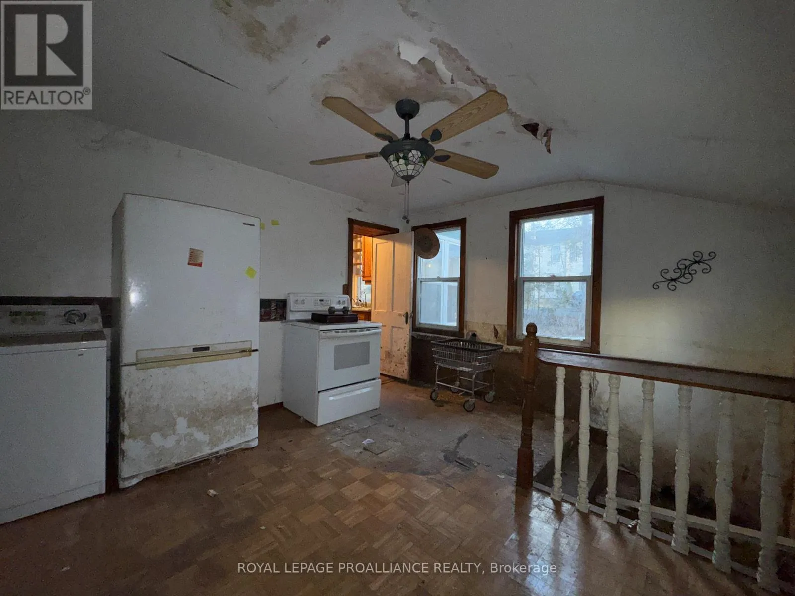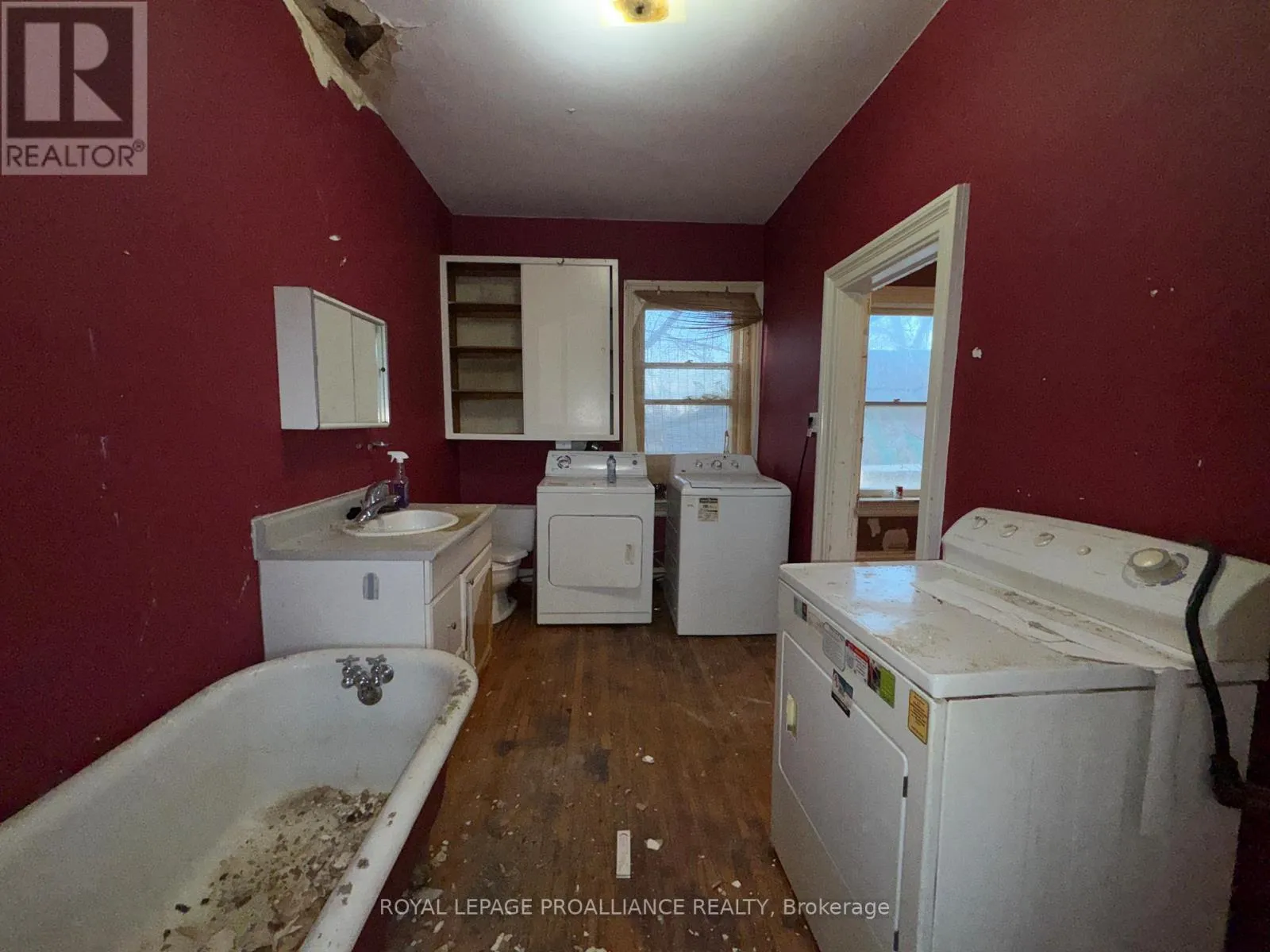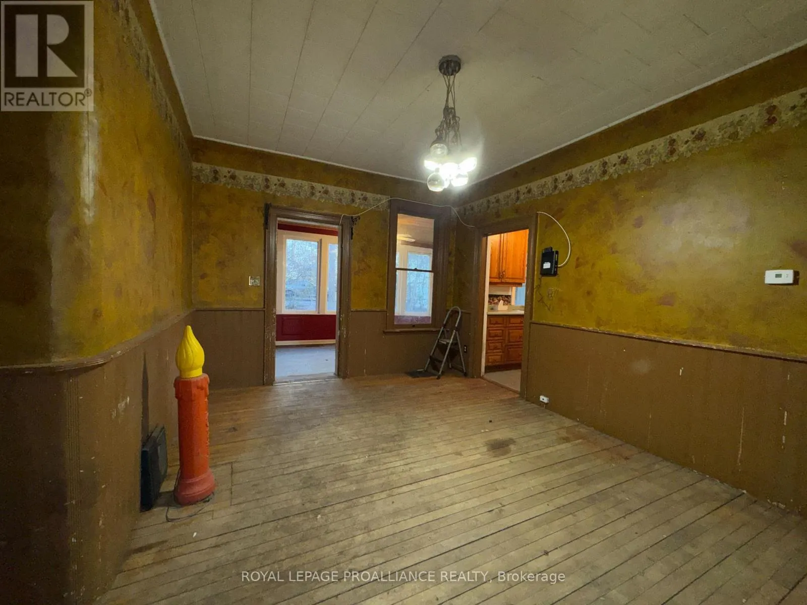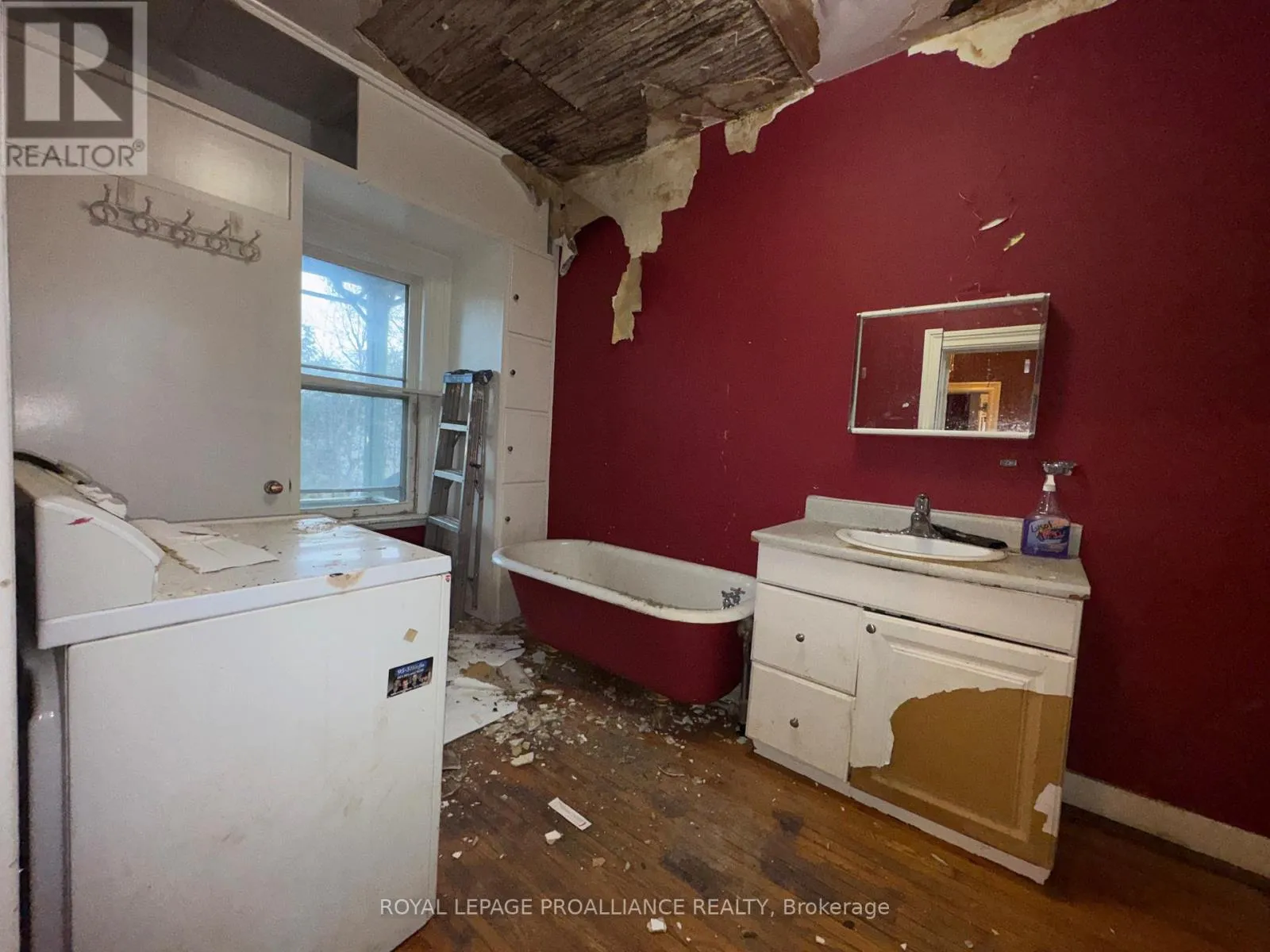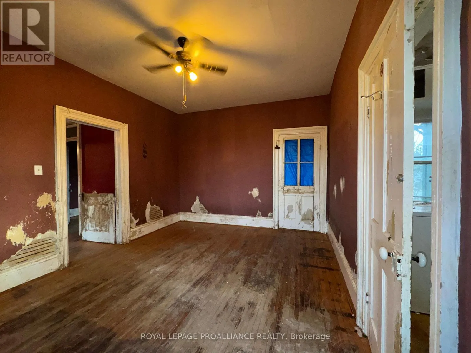 Cross Streets: Highway 2 and St. George Street. ** Directions: Highway 2 into Deseronto and North onto St. George Street. Historic mainstay in Deseronto. This stately landmark has a long history dating back 1897 & was once a crown jewel of town. Restore it to its former glory & heritage, now offered at an affordable price & incredible value. Situated on a large dbl lot measuring 81.5ft wide by 127ft deep, conveniently positioned close to school, park & downtown. Enter through the front door & you will be greeted by ornate woodworking, large mouldings/trim, archway & crown moulding. Diagonal hdwd flooring in the front parlour/living room separated by 2 sets pocket doors in the formal dining room. Located in the centre of the house is a family room & 4 season sunroom with pine tongue & groove ceiling, overlooking the side yard. A small but functional kitchen leads to a versatile rear summer kitchen or bonus room. The area is perfect for expansion to a larger, open concept kitchen space. Rounding out the main level is a 2pc. bathroom, storage closet & stairs leading to the full height, unfinished basement. Upstairs is home to 3 large bdrms, 2 full baths & an upper laundry area. Primary bdrm has side door access to a private balcony, dedicated ensuite bath with clawfoot tub & laundry hookups. Down the hall are 2 more bedrooms, one with a large bay-style window. Lastly there is a 4pc. main bath that has another door to a front private balcony. Outside is parking for 3+ cars, attached single+ garage, partially fenced yard & mature trees. Home is being sold as-is, where-is with no representation or warranties. The home appears solid but is in need of significant repairs & renovation. Great potential to own a piece of history in Deseronto. Condition of pool, hottub, HVAC systems, etc. is unknown. (id:27476)