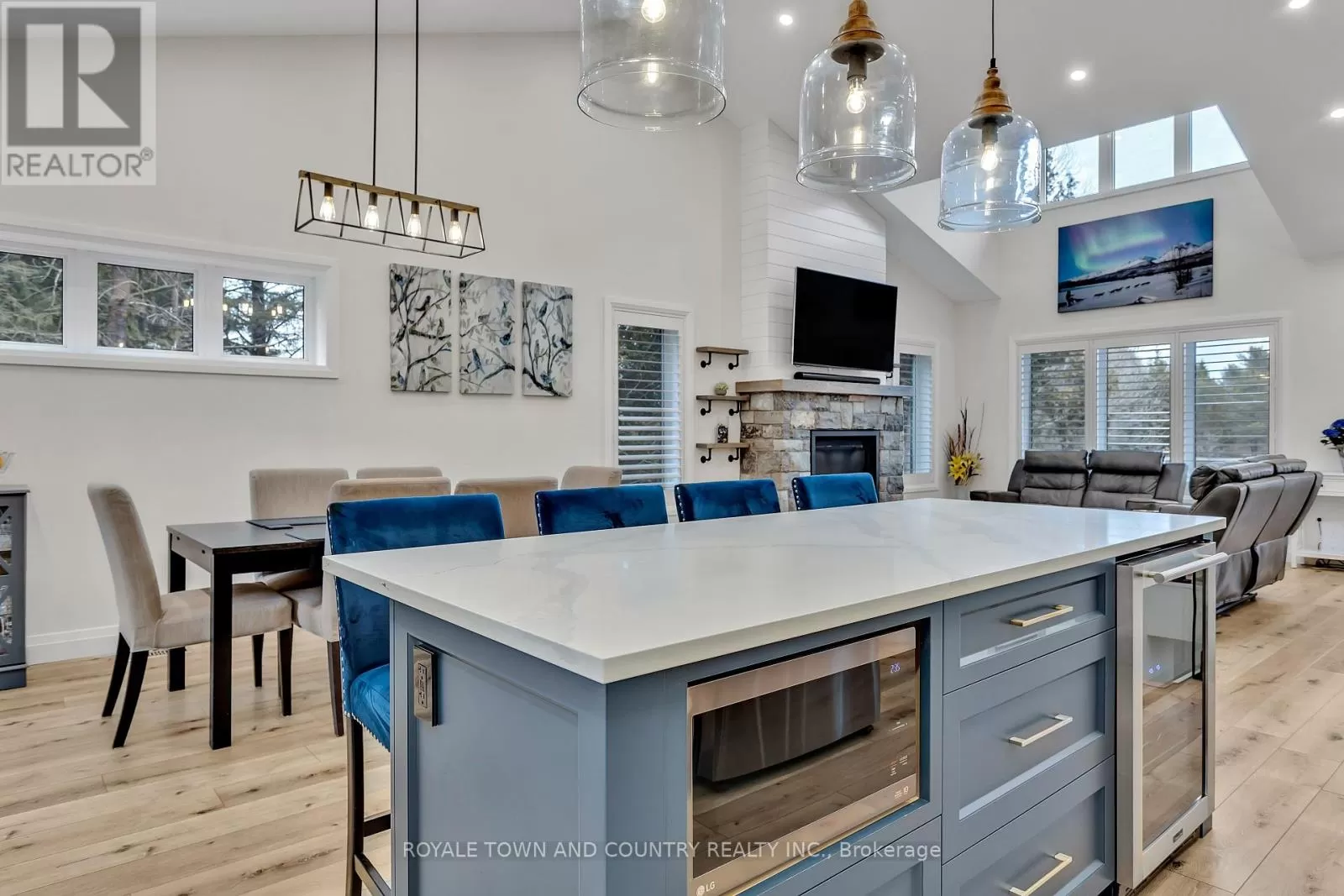 Cross Streets: Highway 7. ** Directions: Highway 7 to County Road 40. Exquisite Executive Home in the Heart of Norwood! This custom-built executive home is a masterpiece of craftsmanship and design, offering a perfect balance of luxury and functionality in the heart of Norwood. Thoughtfully designed with cathedral ceilings and an open-concept layout, this home is both spacious and inviting. The main living area is bathed in natural light, featuring a beautifully designed kitchen, living, and dining space that seamlessly flow together. The custom kitchen boasts high-end finishes, ample cabinetry, and a spacious island, perfect for both casual meals and entertaining. A cozy fireplace anchors the living space, while a walkout leads to the expansive deck, where post-and-beam architecture creates a stunning outdoor retreat with breathtaking country views. The main level offers three well-appointed bedrooms and two bathrooms, including a luxurious primary suite with a spa-like ensuite, ensuring a private retreat. The fully finished lower level is exceptionally spacious, making it ideal for multigenerational living, a high-end games room, or a sprawling family retreat. With an additional bedroom and bathroom, plus a walkout to stunning armor stone landscaping, meadows, and a forested backdrop, this space is as versatile as it is beautiful. You won't get chilly downstairs with the heated floors. Completing this exceptional property is a large attached one-car garage, providing both convenience and additional storage. Did you notice that the floors in the garage are tiled? There is also an EV hook-up in the garage. This architectural gem seamlessly blends modern elegance with thoughtful craftsmanship, creating a home that is as stunning as it is functional! (id:27476)