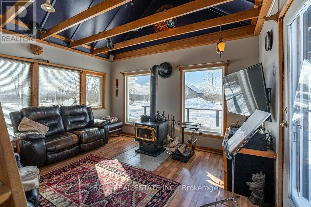 Webster Rd / 8th Line Beautiful 84-acre estate! Charming updated farmhouse with an impressive 3000sqft barn! Stunning countryside with a private pond, approx 35 acres of arable land, 30 acres of hardwood forest and 15 acres softwood reforestation including picturesque trails and a 3 stall drive shed. Follow the long, scenic driveway to this timeless 2 storey red brick farmhouse that is full of charm and modern updates including new propane furnace May 2025, 200amp electrical, updated windows, new shingles 2021 & premium hot tub 2021. This farmhouse offers over 1900sqft of living space with original hardwood floors and woodwork, 3 bedrooms, 2 full bathrooms, updated custom kitchen, formal dining room, and a cozy living room and den featuring woodstove with updated chimney in 2019. The barn is a true standout, converted into a three-season recording studio, offering a unique and inspiring space with endless possibilities. The barn has been upgraded with 100-amp electrical, re-pointed stone foundation and its own drilled well. Enjoy the beauty of the countryside with conveniences like wireless internet tower and serviced municipal road, just 5 minutes to amenities of Norwood, 20 minutes to Stoney Lake on the Trent Severn Waterway, and 30 minutes to Peterborough. (id:27476)