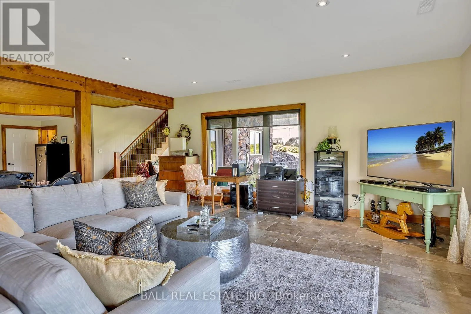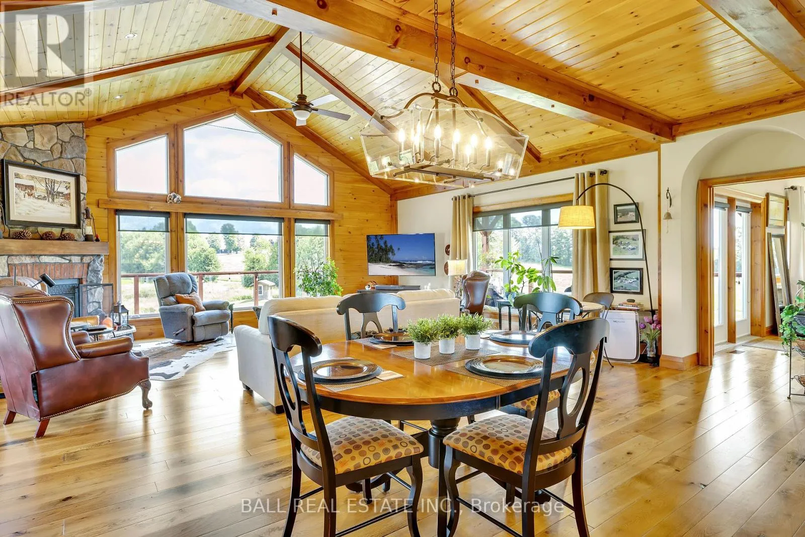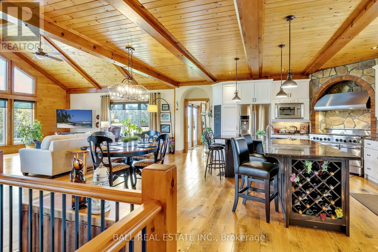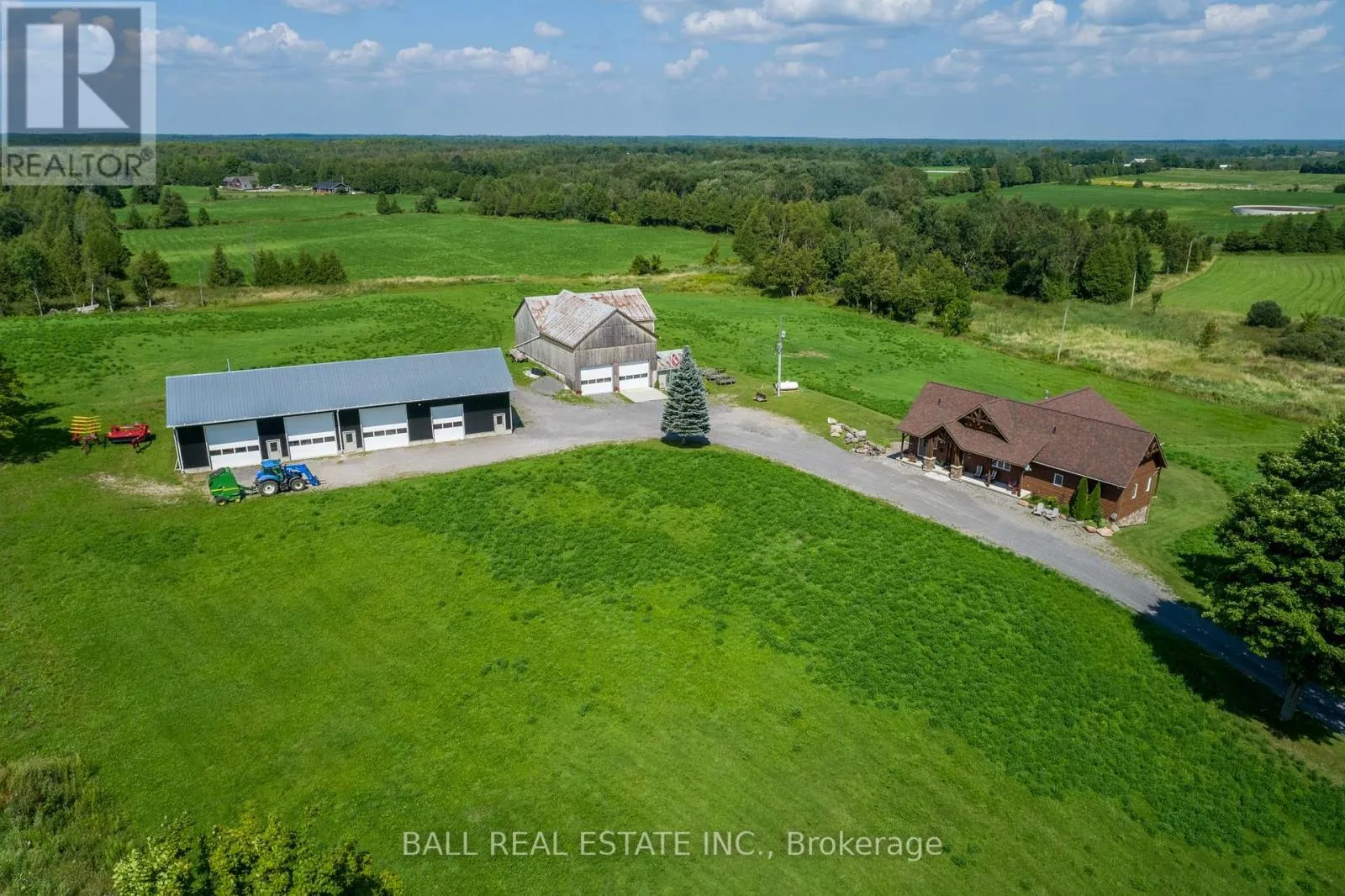 Cross Streets: Webster Road and 4th Line. ** Directions: Cty Rd 8 to 4th Line Dummer, North to 496. Private country living with over 100 acres of paradise. The property allows for passive income through farming options that can allow for possible tax breaks. Excellent custom built home for entertaining. Huge windows. Cathedral ceiling, gas fireplace, sunroom, warp around deck, main floor mud/laundry room. Two piece powder room on main level. Custom kitchen with stainless steel appliances, large island with prep sink, bar fridge, wine rack, granite countertops. Primary bedroom with walk-in closet, ensuite bath with in-floor heating, heated towel rack, separate shower, claw tub, his/her sinks. Large deck. Lower level: Three bedrooms , three piece bath, walk-out garden doors. Large cold storage room with sink. Note: 3600 square feet of finished living space! 1800 sq ft finished on main floor PLUS an additional 1800 sq feet finished basement. An entertainers delight featuring: heated custom built room with golf simulator in the 5,000 square foot garage, five garage doors with operators, two mezzanines. The reinforced barn includes a custom Bunkie for additonal guests / storage. **Extras** Handicap accessibility throughout the house, non-smoking property. (id:27476)