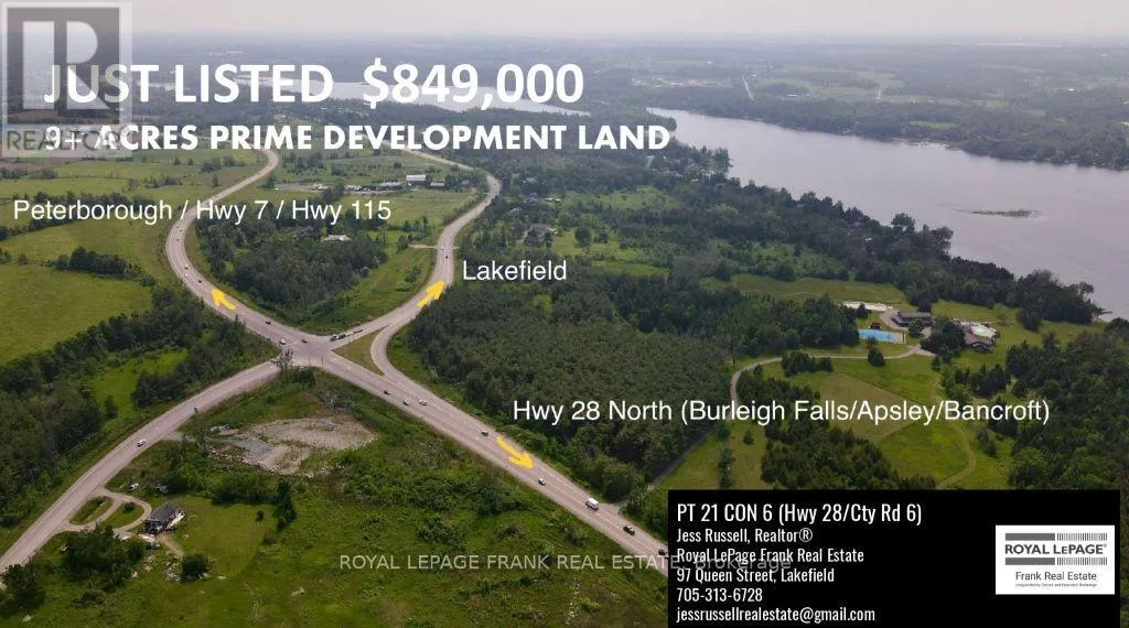 Highway 28 & County Road 6 9+ acres of prime development land on Highway 28 at the gateway to cottage country. Huge potential for this level lot with incredible highway visibility attracting up to 6,000 vehicles/day. This property is currently zoned Commercial and Rural and will benefit from Employment Designation under the incoming Official Plan, clearing the way for a vast array of permitted uses. Entrance may be permitted from County Road 6 or 5th Line. Convenient access to Highway 28, Hwy 7, Hwy 115 leading to the 407 and 401. (id:27476)