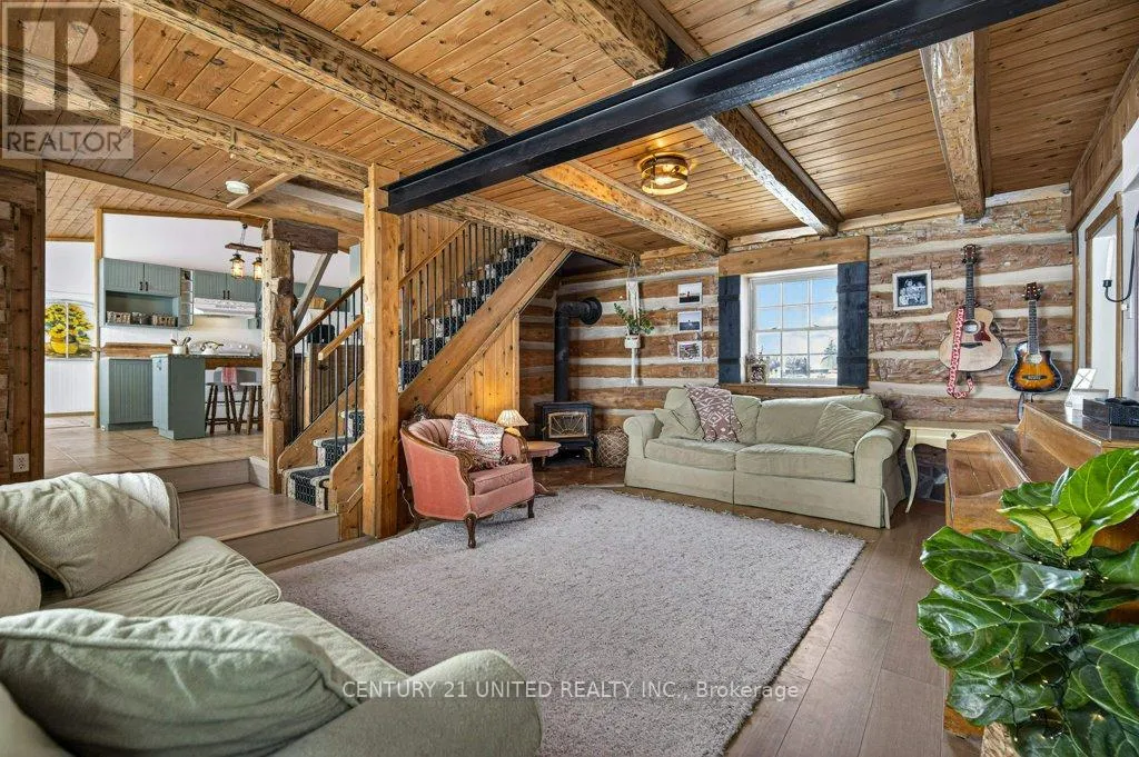 Cross Streets: Hwy #4. ** Directions: Off Hwy #4, South of Warsaw. Turn-Key Hobby Farm: Brimming with character and rural charm, this inviting hobby farm sits on just over 4 acres of beautifully usable land surrounded by open farm fields and sweeping country views. Enjoy a coffee on the front porch watching the sun rise or unwind with a glass of wine on the expansive back deck while taking in breathtaking sunsets. This meticulously maintained 4-bedroom, 2-bath, two-story log home (circa 1900) blends timeless charm with modern convenience, offering warmth and personality in every corner. A separate two-story building provides exceptional flexibility - ideal as a fully functional work-from-home office with high-speed connectivity or easily adapted into additional living space for extended family. Additional outbuildings include a workshop, wood storage shed, chicken coop and more. For those seeking hobby farm potential, the well-kept 4-stall barn, fenced paddocks, and ample space for riding or expansion offer excellent opportunity. Private and peaceful, yet conveniently located just 10 minutes to Lakefield Village and 20 minutes to Peterborough, this property offers the perfect balance of country living and modern accessibility. (id:27476)