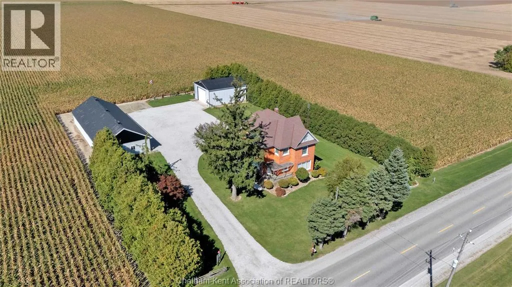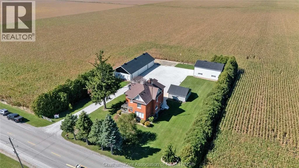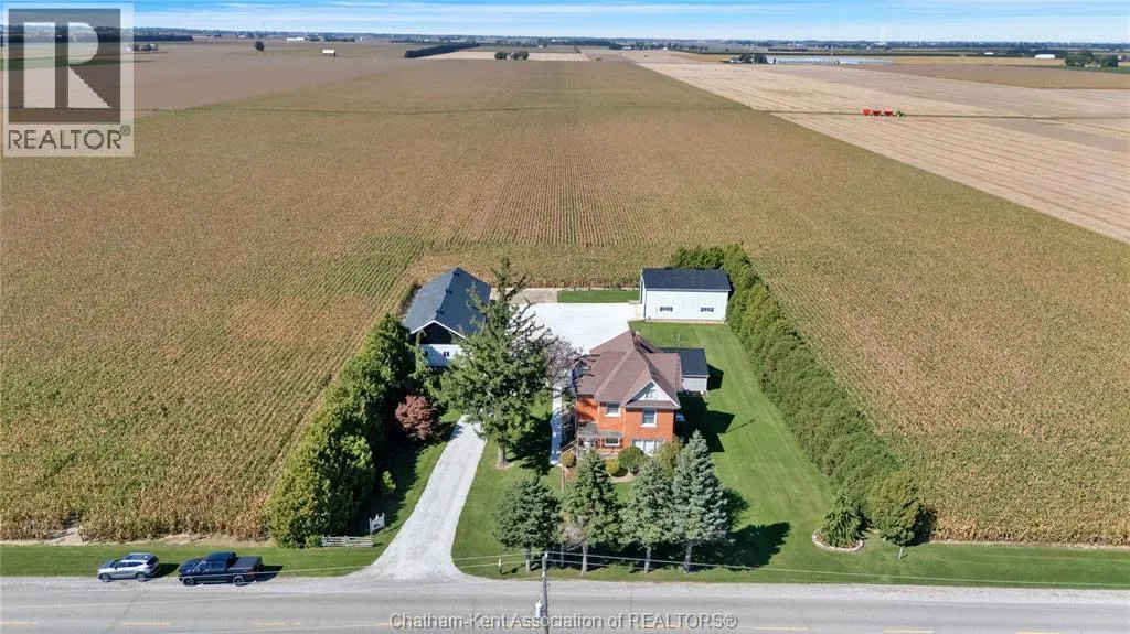 Discover over 100 acres of highly-productive, well-tiled clay loam farmland in the Hart of Chatham-Kent. This rare offering combines a meticulously maintained family homestead with outstanding agricultural opportunity. The home sits on approximately 1 acre and has been lovingly cared for through generations. Inside, youâll find 4 bedrooms, 2 full bathrooms, a spacious eat-in kitchen with walkout to a large side porch, and both living and family rooms on the main floor. Highlights include a large walk-in closet, full unfinished basement, and mechanical updates such as forced-air furnace and AC (2014), Reliance-rented hot water tank, and water softener. The septic was last serviced in August 2024 and is cleaned every 4 years. For storage and workspace, the insulated garage measures 22.5' x 24.5'. Outbuildings include a 40' x 32' shop with 60-amp service and an 83' x 32' shed newly wired with 60 amps in 2024 â all with power service. The farmland spans over 100 acres with more than 1,000 ft of frontage on both Pain Court Line and Maple Line, offering excellent access (total land size including home and outbuildings is 106.379 acres). Currently planted in corn (sharecrop until end of 2025), this is a valuable addition to any land base. Opportunities like this are rarely available â productive farmland and a well-kept homestead ready for the next generation. Home is Where the Hart is! Opportunity exists to purchase the farmland alone, subject to municipal severance approval. Contact the listing agent for details. (id:27476)