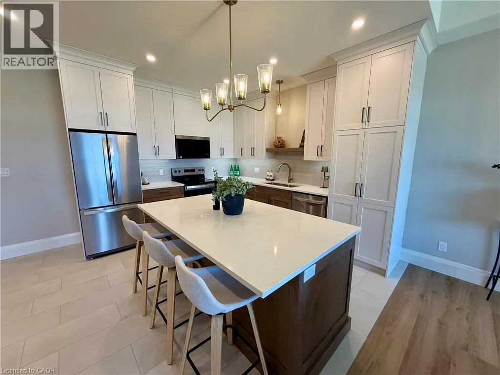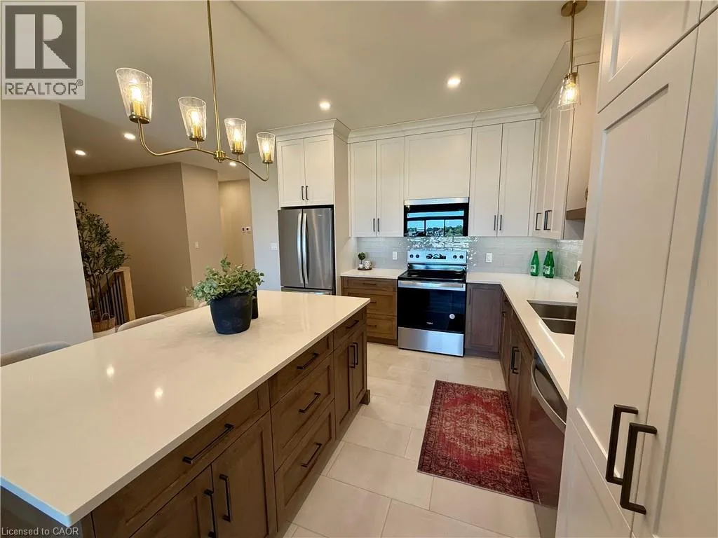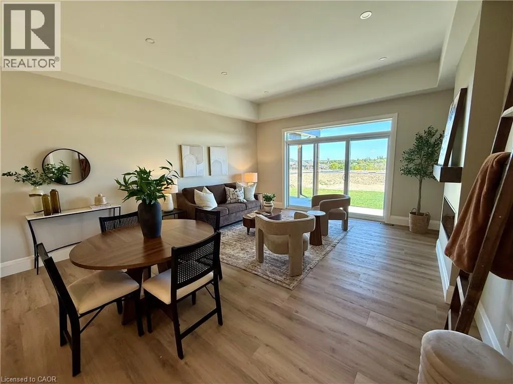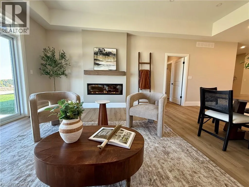 From Main Street W turn onto Bedell and follow down to the end Downsize without compromise in this beautifully crafted end unit bungalow townhome by Duimering Homes, located at the quiet end of Bedell Drive in Drayton. This newly built home offers low maintenance living with elevated finishes throughout. The bright open concept layout features a vaulted great room ceiling, 9â ceilings, oversized windows, and an electric fireplace with wood mantle. The gourmet kitchen showcases quartz countertops, custom full height cabinetry, stainless steel appliances, and a large island overlooking the living and dining areas. Enjoy a covered rear patio with partial privacy fencing, two generous bedrooms including a primary suite with walk in closet and spa inspired ensuite, plus main floor laundry. Complete with a fully finished attached oversized single car garage and double wide paved driveway plus a lovely covered front porch. Quiet location offering refined single level living in a welcoming small town community in one of the most indemand neighbourhoods built by the premier local home builder. (id:27476)