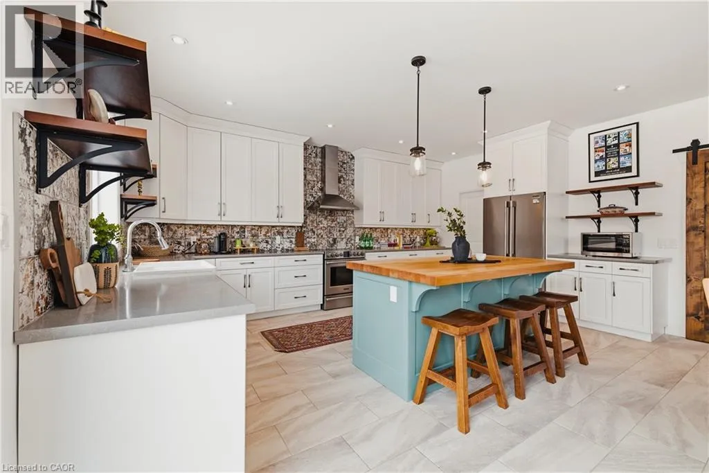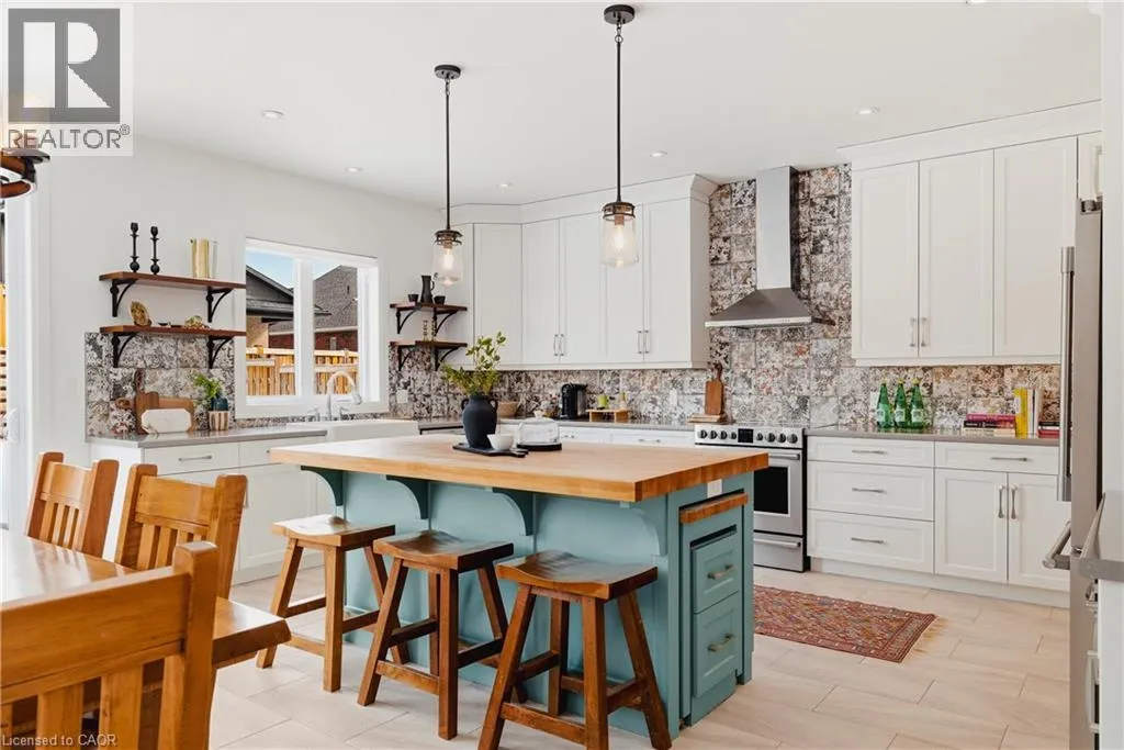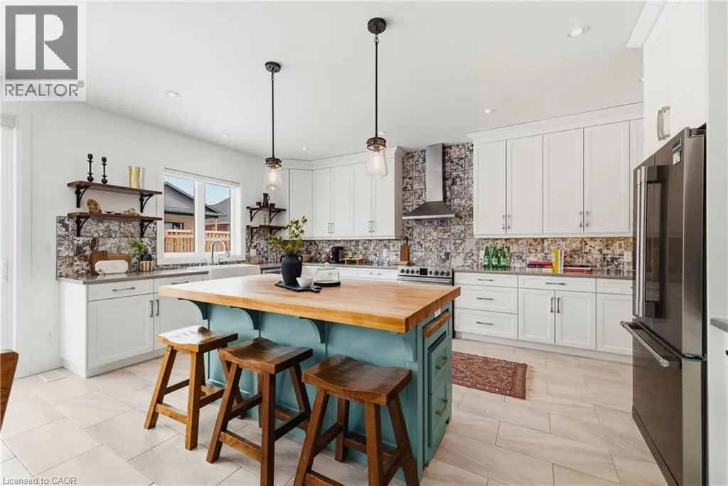 from Main St W turn left onto Bedell and then left onto second Ridgeview Dr to sign on the left Some homes check boxes. This one tells a story. Built in 2017 by Duimering Homes and rarely offered for resale, this Drayton Ridge beauty sits in one of the quietest pockets of the subdivision. The kind of street where bikes are left on driveways, everyone walks their dog and neighbours know each other by name. Inside, the foyer sets the tone for the whole house. Soaring ceilings. Natural light pouring in. In the great room, a rare wood burning fireplace â the real kind â where winter evenings feel slower, warmer, and just a little more memorable. The kitchen is where this home truly shines. Thoughtfully designed with stunning finishes, generous cabinetry, and an oversized pantry that feels like a hidden superpower. At the centre, a beautiful butcher block island adds warmth and personality â and hides a clever pull out workspace made perfectly for tiny chefs, homework helpers, or an afternoon craft station while dinner simmers nearby. Itâs functional, playful, and proof this home was designed with real family life in mind. Upstairs, youâll find a layout that adapts to real life. Two of the kidsâ bedrooms are currently joined, perfect for siblings who want to share stories long after bedtime (yet easily separated back into two private rooms if needed). The primary suite offers a quiet retreat with space to reset and recharge. And the ensuite won't disappoint! Storage is everywhere - smartly integrated throughout the home, plus a fully finished lower level that adds flexibility for guests, teens, a home office, or movie nights. Step outside and youâll find a fully fenced yard, ready for pets, play, and summer evenings under the stars. All of this in a peaceful community setting, with an easy commute to Guelph or Kitchener/Waterloo â giving you small-town calm without sacrificing convenience. Quality built. Rarely available. Thoughtfully designed. Homes like this donât come up often in Drayton Ridge. (id:27476)