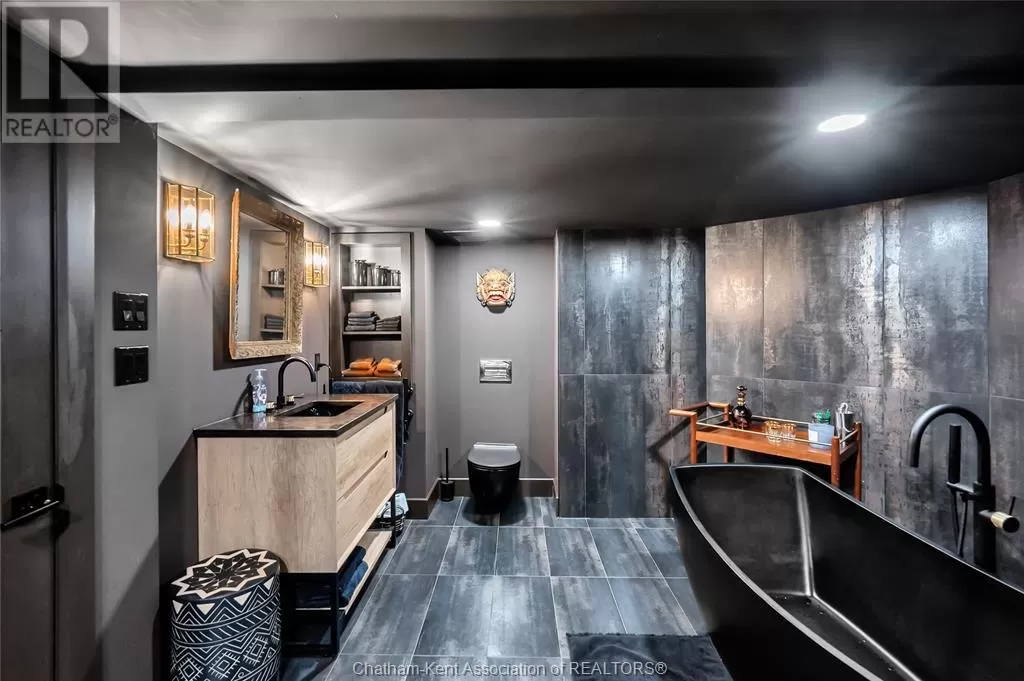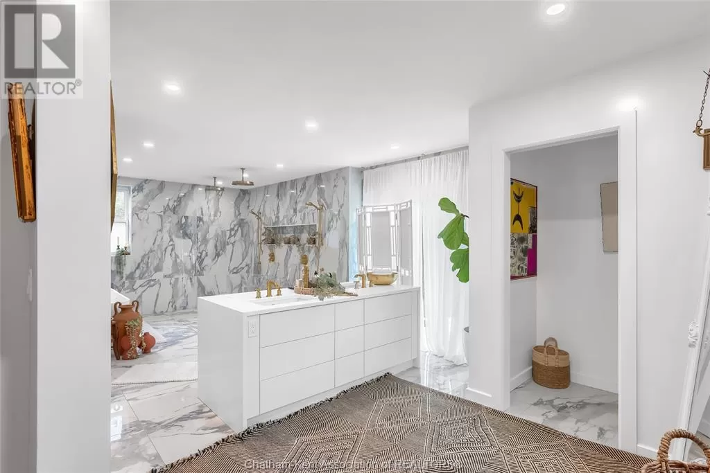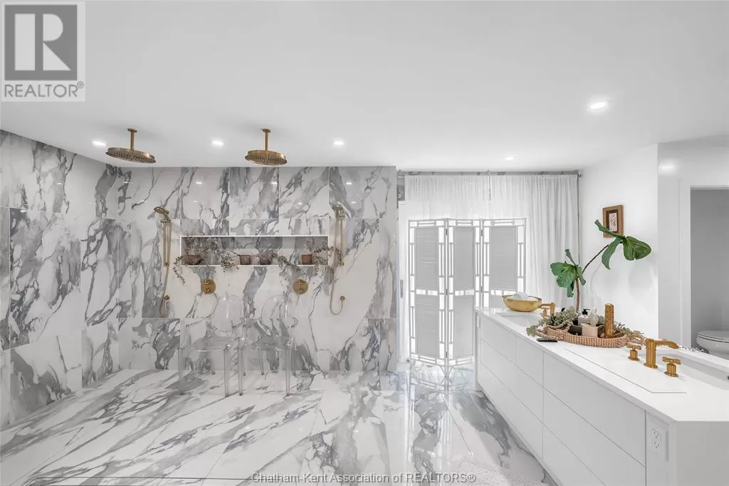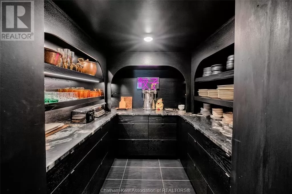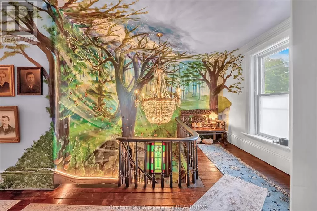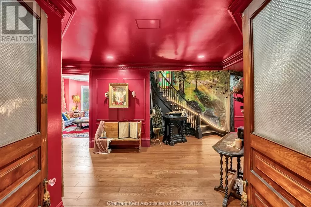 HWY 401 to Kent Bridge Rd to Dresden This 11,500 SF designer decorated home has over 10,000 SF of finished living area on 5 levels. The finishes are like no other and no expense has been spared on detail and materials, each room elicits a different feeling and experience. From secret passages behind bookshelves or a speakeasy and cigar lounge that lies cleverly disguised behind a hall curtain, this house is meant for someone with an equally complex and mysterious personality. Beyond its form, the function of this home is exceptional, multiple HVAC systems service different zones, massive storage rooms and an oversized garage complex that is accessible from multiple hidden stairwells. Located in the charming town of Dresden, known for its street festivals and friendly people. The property is zoned for a hotel use and with 6 bedrooms and 6 bathrooms the potential is there. Private booking income for weddings and corporate retreats is exceptional with steady demand at $3000plus for weekends. Take a full tour of this home through the iGuide 360° virtual tour. (id:27476)