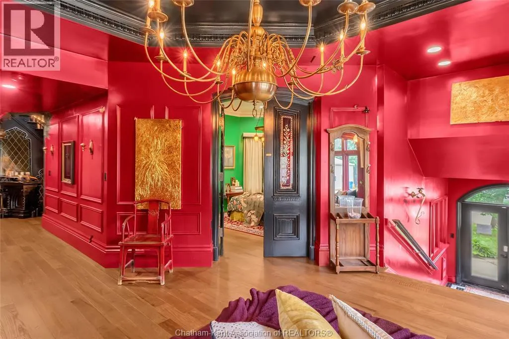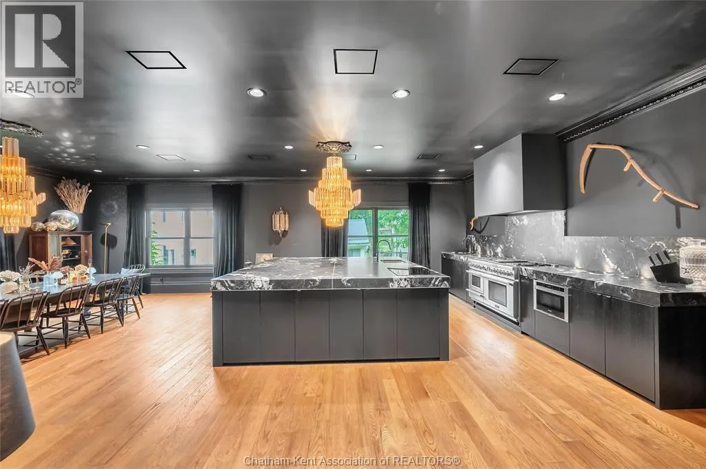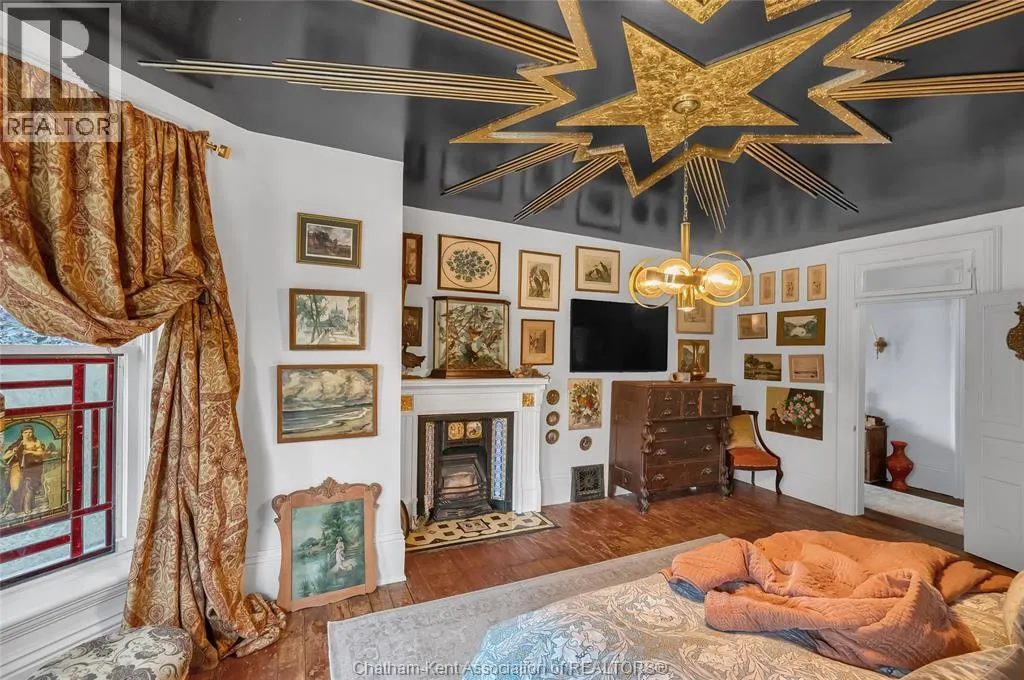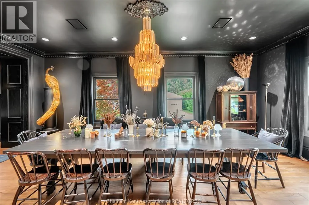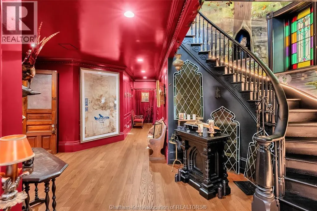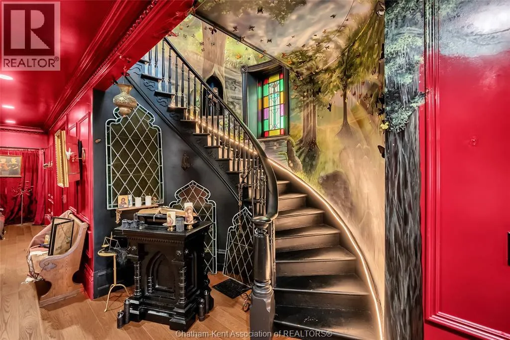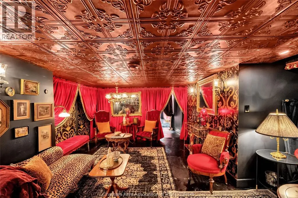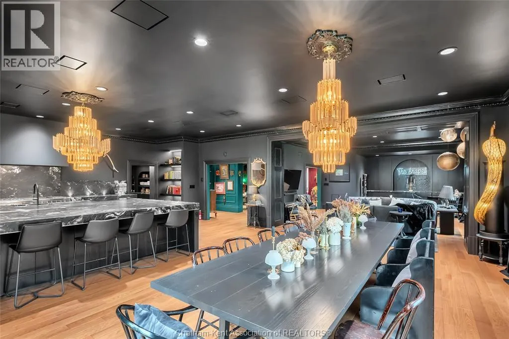 HWY 401 to Kent Bridge Rd to Dresden This 11,500 SF designer decorated home has over 10,000 SF of finished living area on 5 levels. Featured in the Discovery+ TV show ""We Bought A Funeral Home"", the finishes are like no other and no expense has been spared on detail and materials, each room elicits a different feeling and experience. From secret passages behind bookshelves or a speakeasy and cigar lounge that lies cleverly disguised behind a hall curtain, this house is meant for someone with an equally complex and mysterious personality. Beyond its form, the function of this home is exceptional, multiple HVAC systems service different zones, massive storage rooms and an oversized garage complex that is accessible from multiple hidden stairwells. Located in the charming town of Dresden, known for its street festivals and friendly people. The property is zoned for a hotel use and with 6 bedrooms and 6 bathrooms the potential is there. Private booking income for weddings and corporate retreats is exceptional with steady demand at $3000plus for weekends. Take a full tour of this home through the iGuide 360° virtual tour. (id:27476)