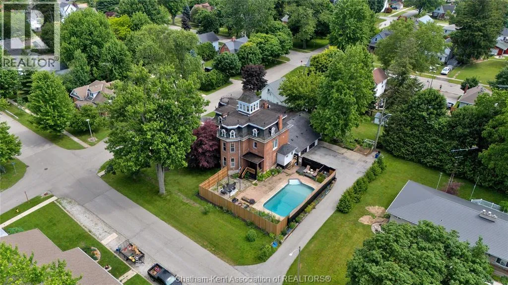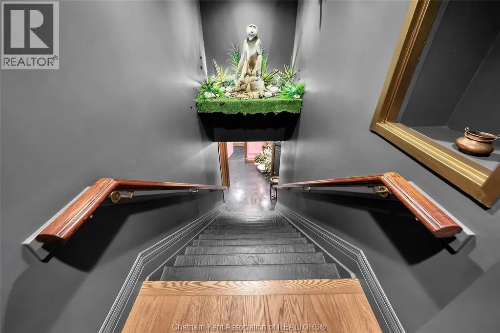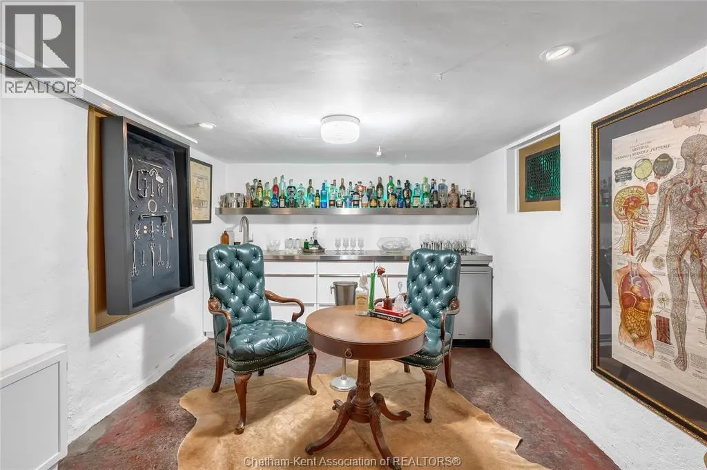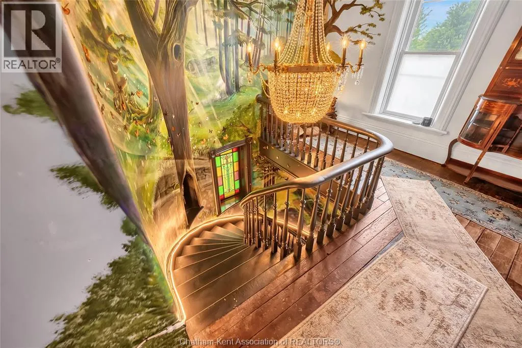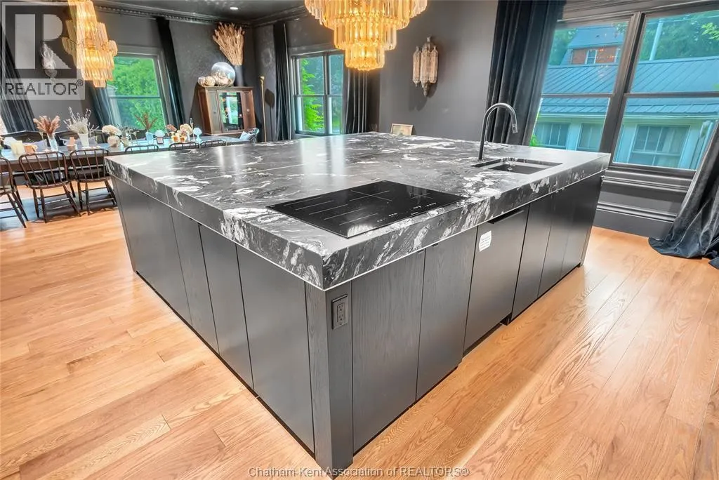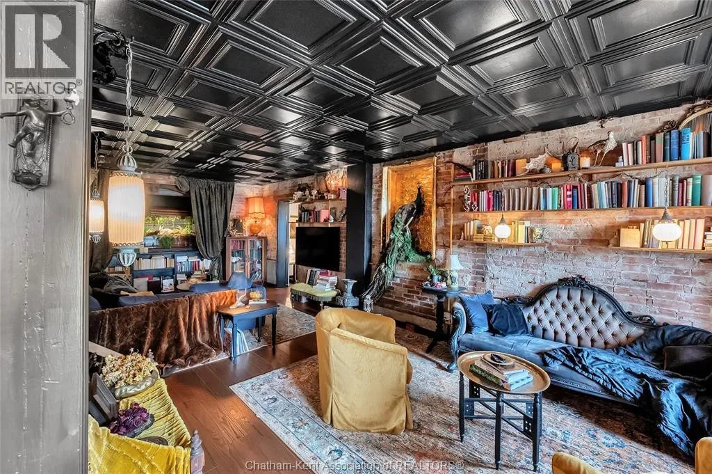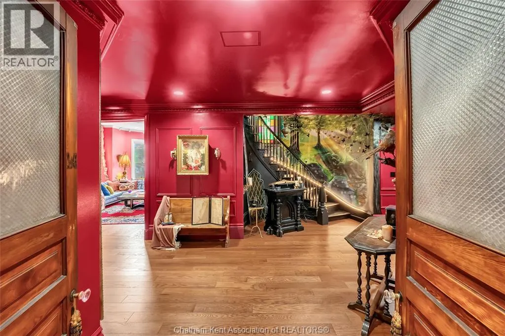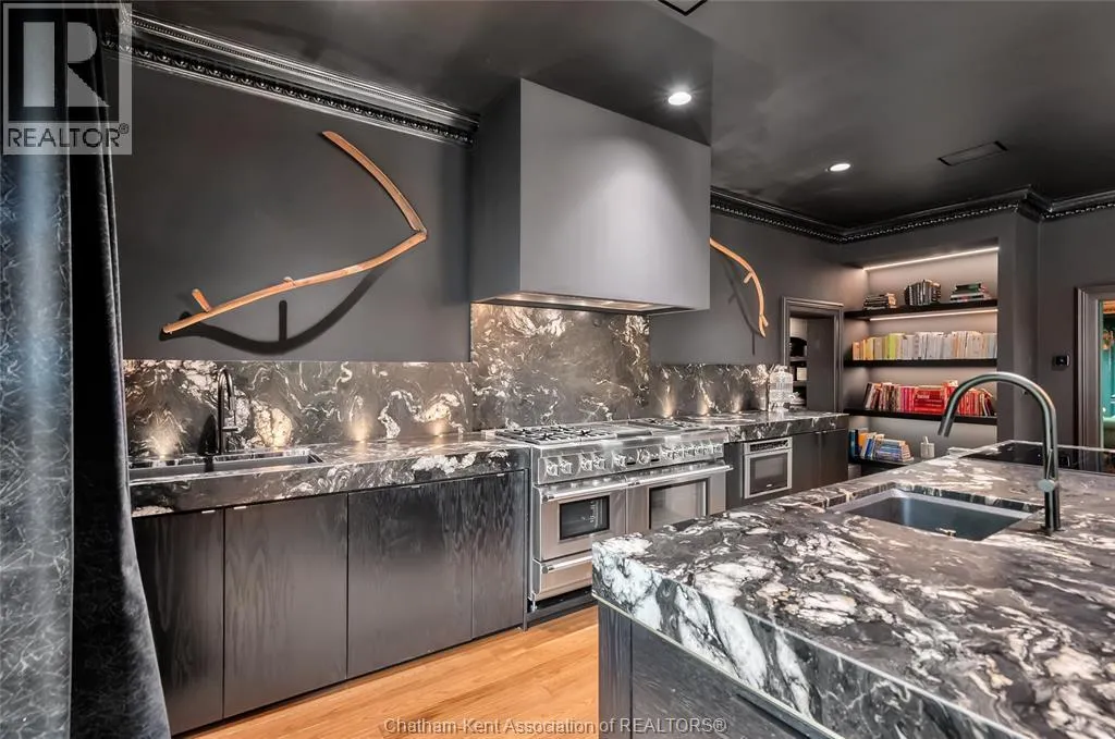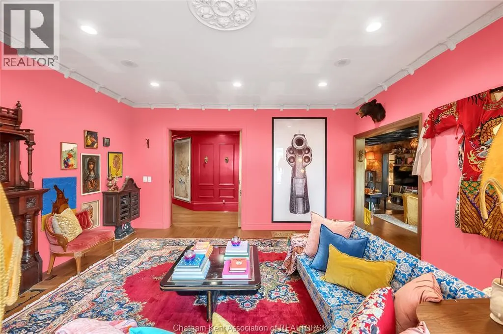 HWY 401 to Kent Bridge Rd to Dresden This 11,500 SF designer decorated home has over 10,000 SF of finished living area on 5 levels. Featured in the Discovery+ TV show ""We Bought A Funeral Home"", the finishes are like no other and no expense has been spared on detail and materials, each room elicits a different feeling and experience. From secret passages behind bookshelves or a speakeasy and cigar lounge that lies cleverly disguised behind a hall curtain, this house is meant for someone with an equally complex and mysterious personality. Beyond its form, the function of this home is exceptional, multiple HVAC systems service different zones, massive storage rooms and an oversized garage complex that is accessible from multiple hidden stairwells. Located in the charming town of Dresden, known for its street festivals and friendly people. The property is zoned for a hotel use and with 6 bedrooms and 6 bathrooms the potential is there. Private booking income for weddings and corporate retreats is exceptional with steady demand at $3000plus for weekends. Take a full tour of this home through the iGuide 360° virtual tour. (id:27476)