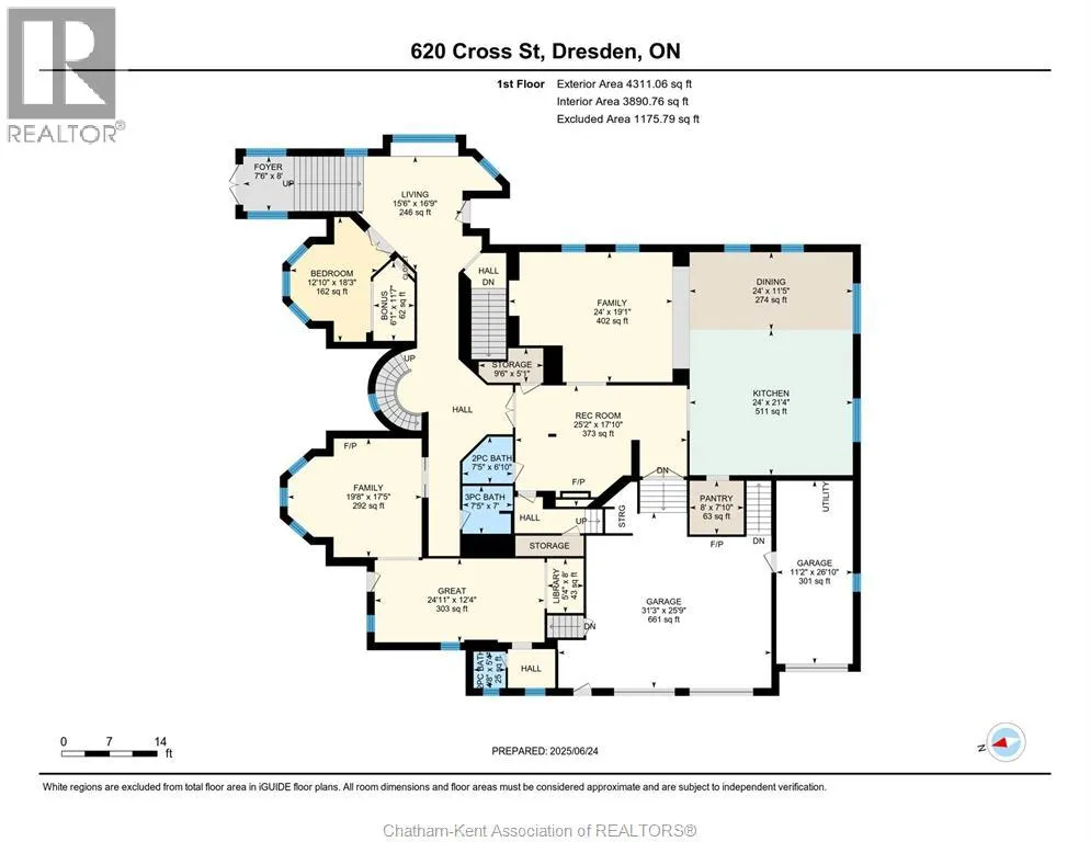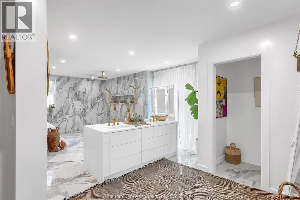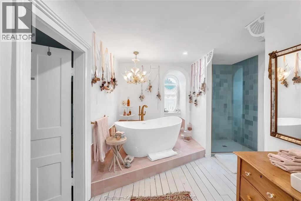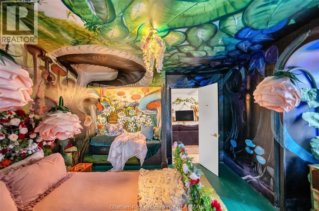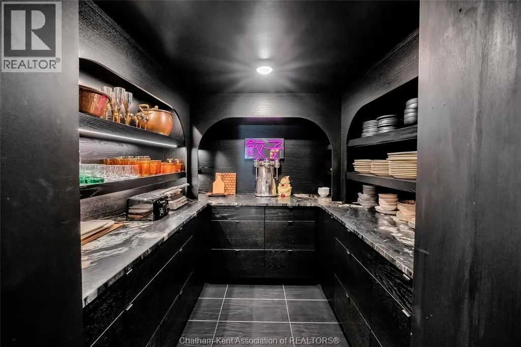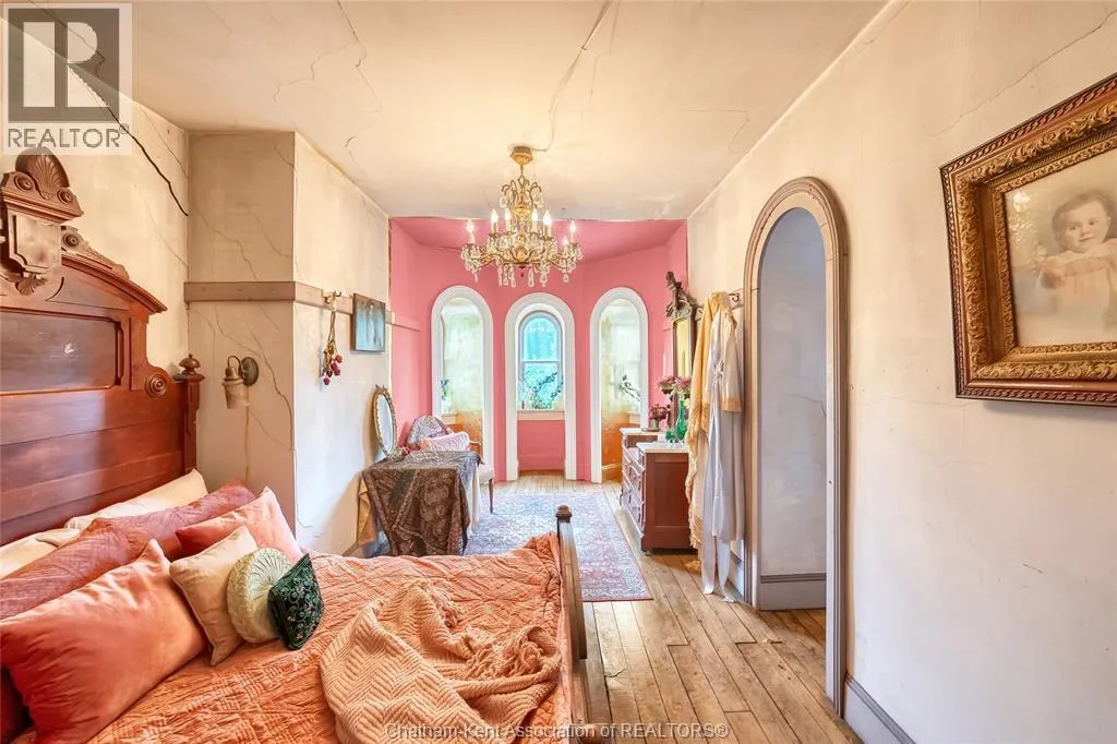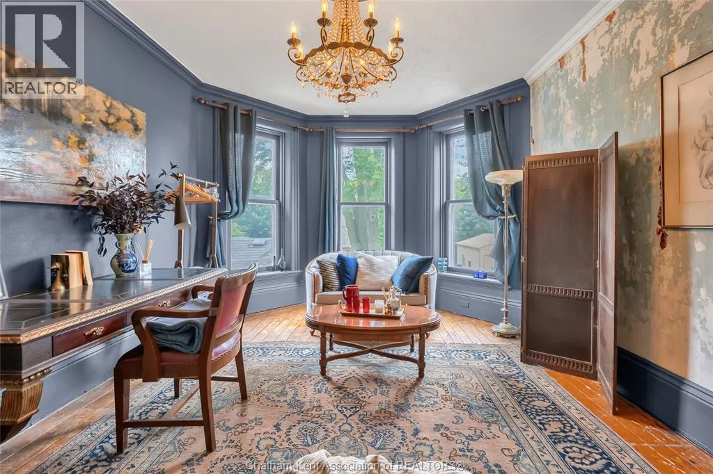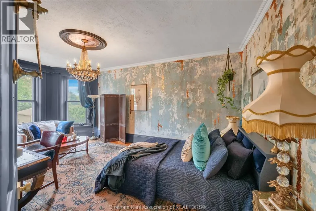 HWY 401 to Kent Bridge Rd to Dresden This 11,500 SF designer decorated home has over 10,000 SF of finished living area on 5 levels. Featured in the Discovery+ TV show ""We Bought A Funeral Home"", the finishes are like no other and no expense has been spared on detail and materials, each room elicits a different feeling and experience. From secret passages behind bookshelves or a speakeasy and cigar lounge that lies cleverly disguised behind a hall curtain, this house is meant for someone with an equally complex and mysterious personality. Beyond its form, the function of this home is exceptional, multiple HVAC systems service different zones, massive storage rooms and an oversized garage complex that is accessible from multiple hidden stairwells. Located in the charming town of Dresden, known for its street festivals and friendly people. The property is zoned for a hotel use and with 6 bedrooms and 6 bathrooms the potential is there. Private booking income for weddings and corporate retreats is exceptional with steady demand at $3000plus for weekends. Take a full tour of this home through the iGuide 360° virtual tour. (id:27476)