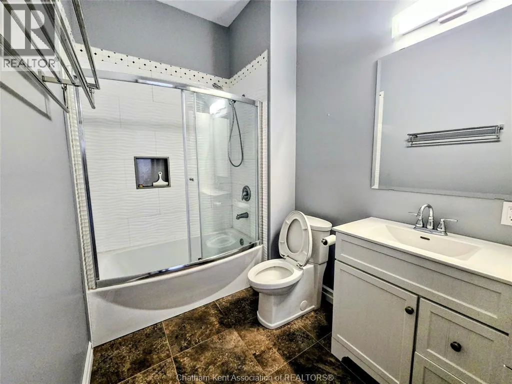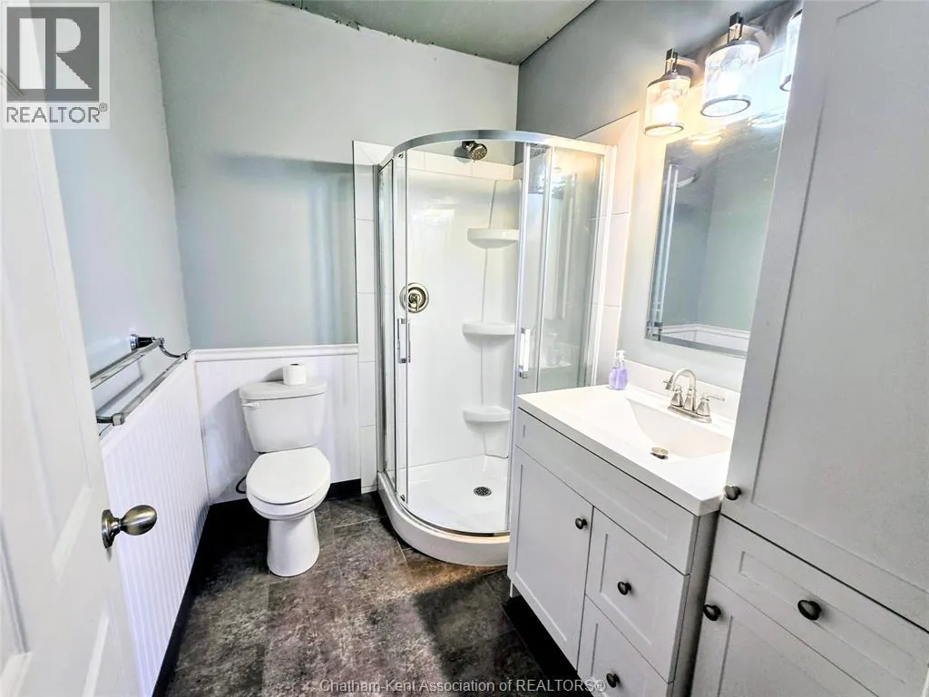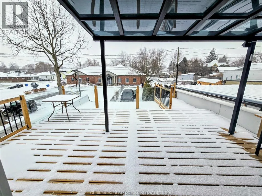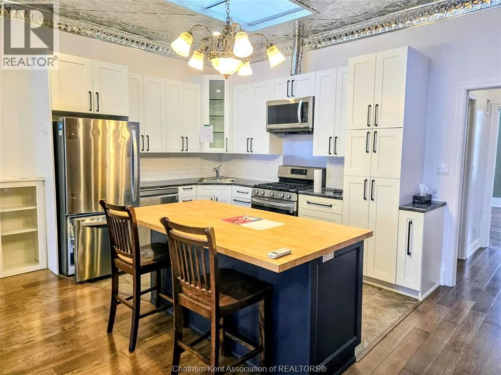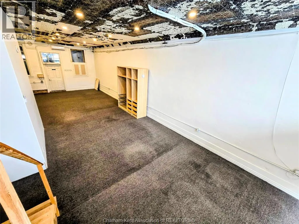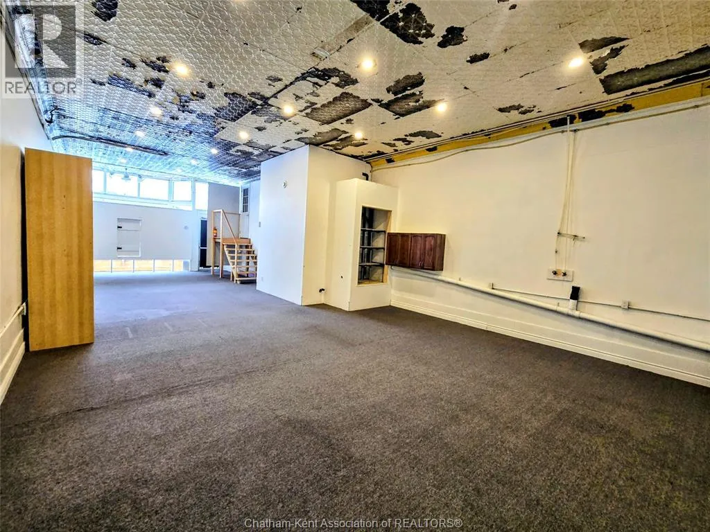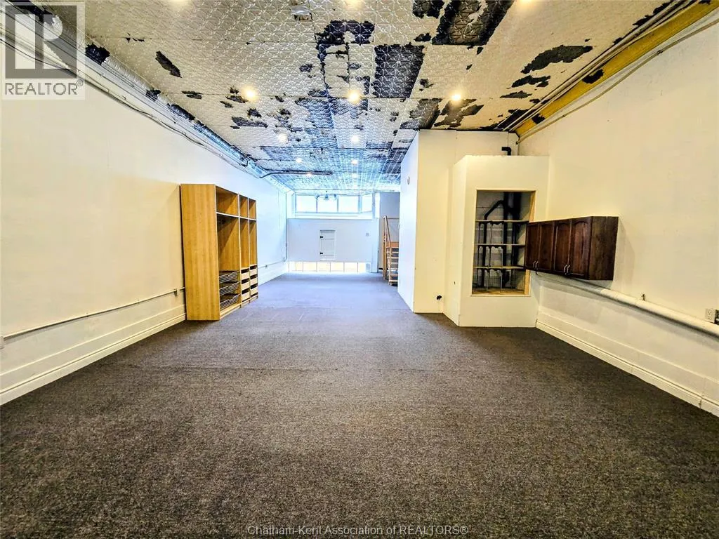 Welcome to 163 Main St in Downtown Dresden- A great investment with multiple opportunities for income potential!! The main floor offers a perfect commercial space (900 sq ft) in the heart of downtown with lots of natural light, charming original embossed tin ceilings and a 3 piece bathroom. A 20 x 21 heated garage (spray foamed walls/ceiling) sectioned off in the back adds an additional entrance plus garage door with plenty of outdoor parking (4+ spots). You could even turn this space into a second residential rental unit or utilize the main floor as a live/work opportunity. Although not currently being utilized a second, separate entrance from the front of the building could lead upstairs to the fully renovated and STUNNING residential unit (910 sq ft). This upper floor unit is absolutely breath taking with exposed brick, modern vintage inspired decorative tin ceiling with two fabulous skylights over the kitchen, and a large and bright living/entertainment space accompanied by a sunroom that leads to a spacious west facing balcony with rear entrance. All appliances in the kitchen/bath/laundry come with the building so you are set for success with separate meter capabilities for each floor. You don't want to miss this opportunity- set up a showing and make an investment towards your future today!! (id:27476)