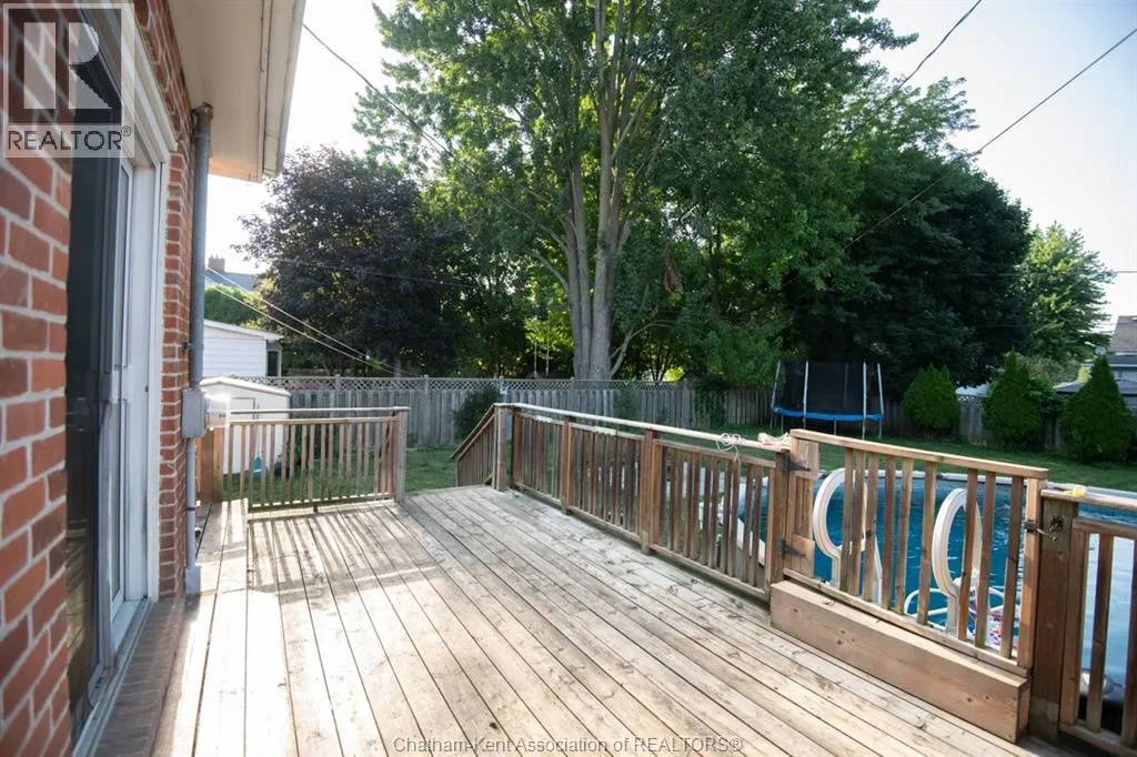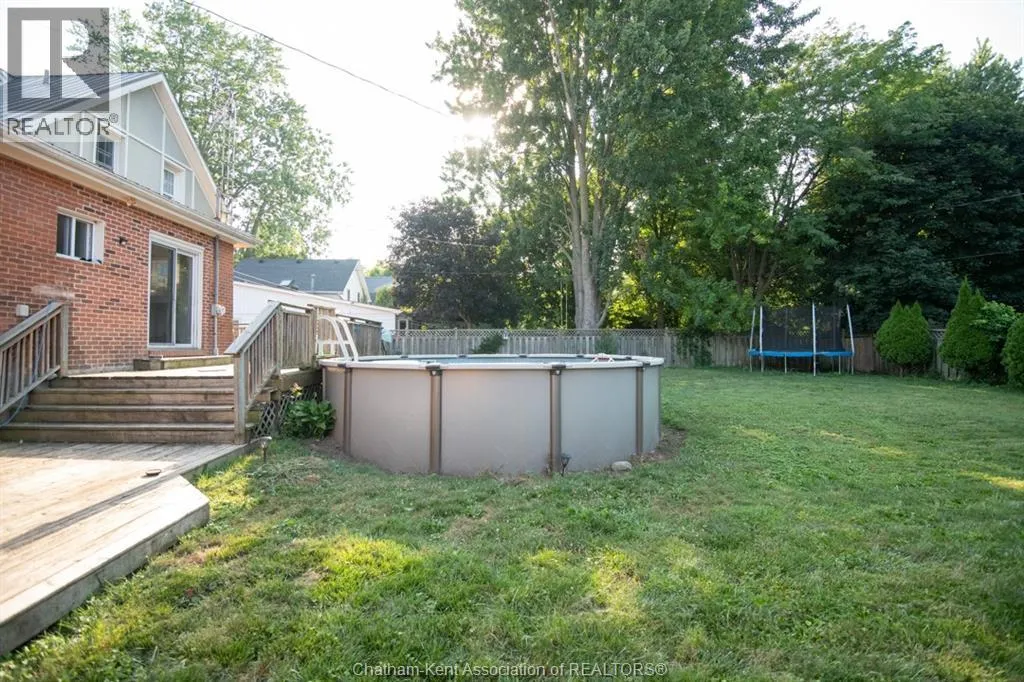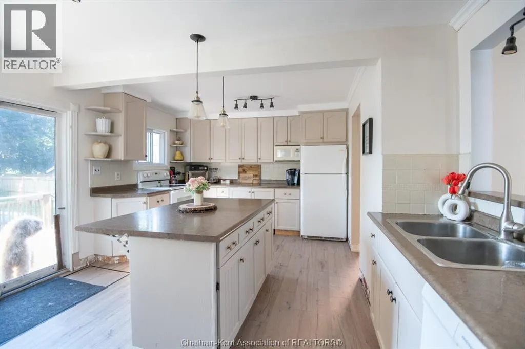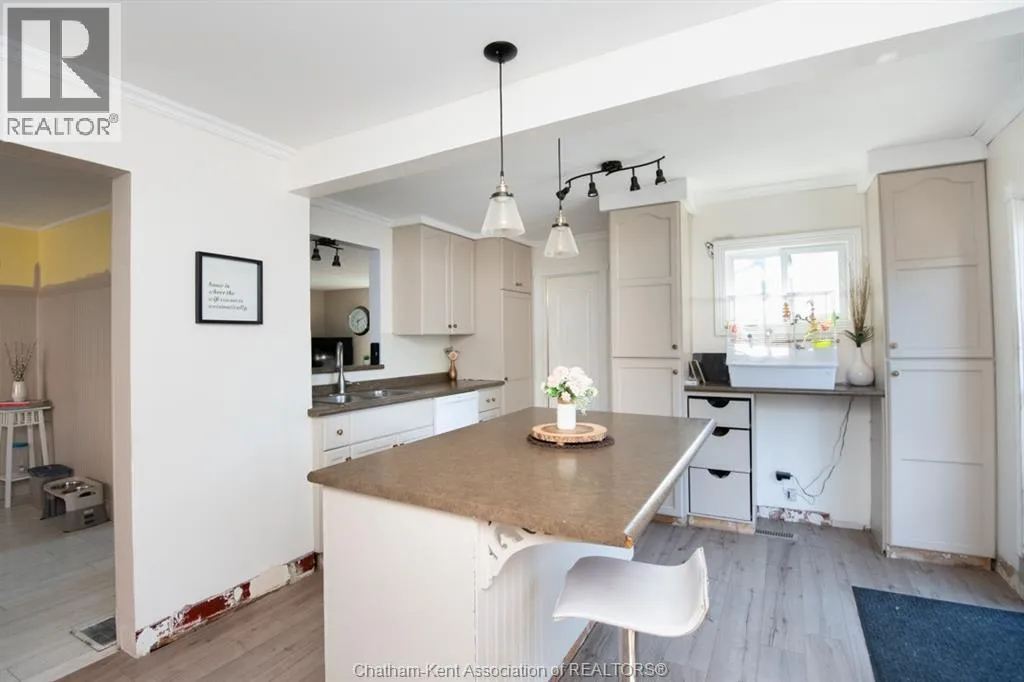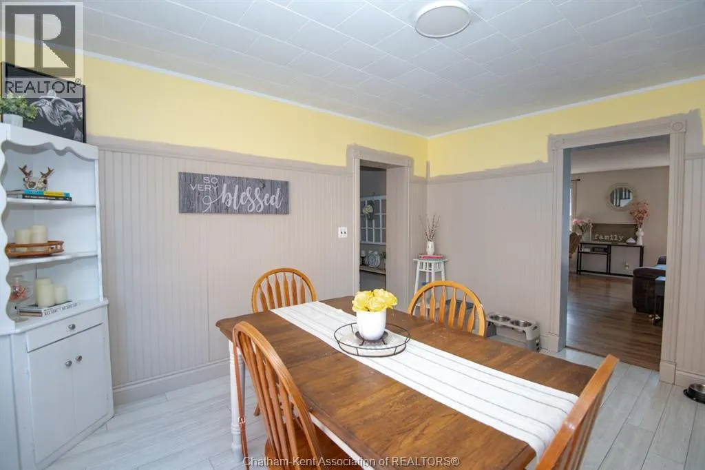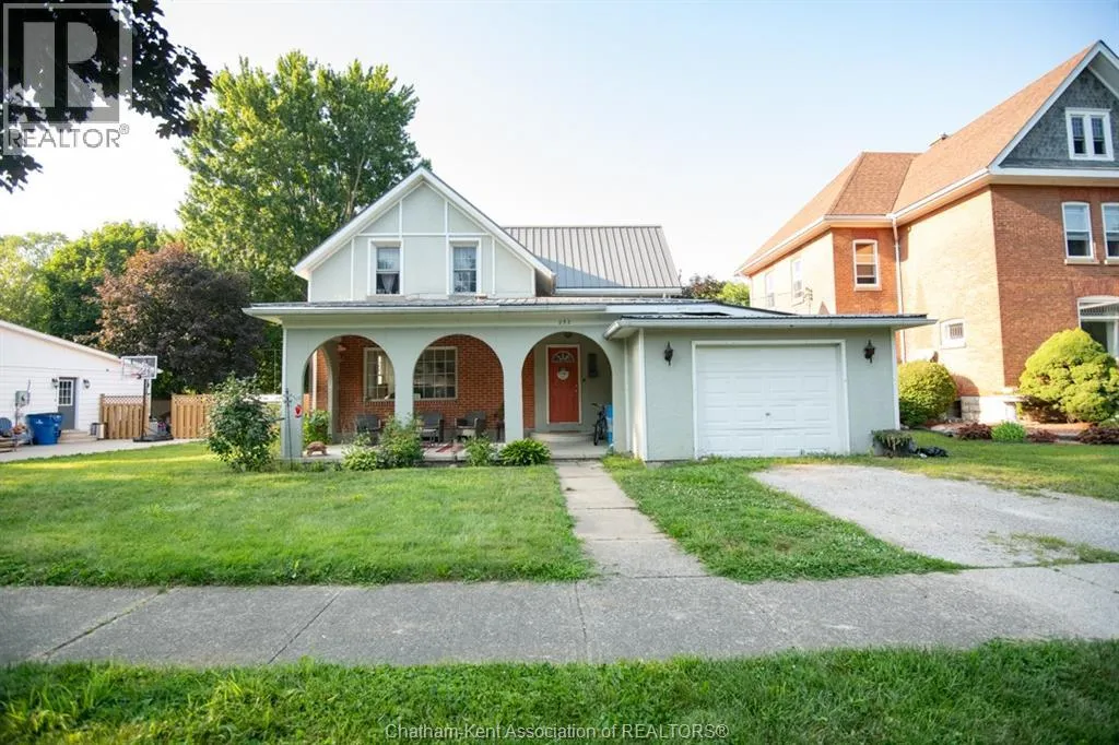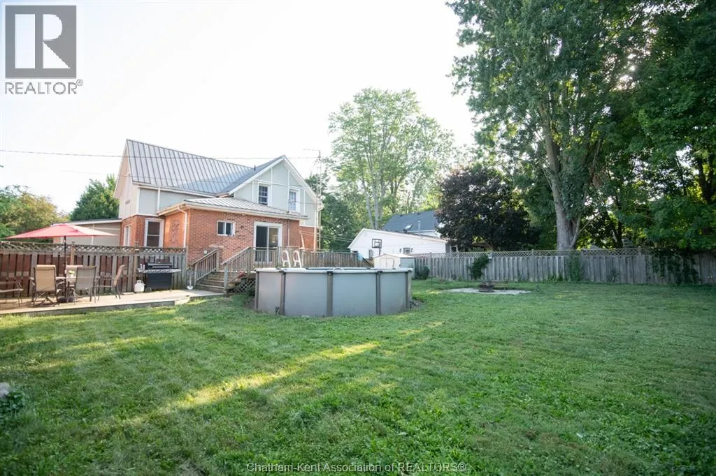 TAKE NORTH ST, TURN WEST ON HUGHES ST, THEN ON THE RIGHT HAND SIDE. SIGN IN YARD. Ideal for a buyer with vision, this home offers incredible potential and simply requires a little extra care to truly shine. Affordable, family-friendly living in a great Dresden location! This charming 1½-storey, 3-bedroom home offers over 1,500 sq ft of living space on a generous lot and delivers the perfect blend of character, comfort, and outdoor enjoymentâideal for buyers on a budget, growing families, or a handy homeowner looking to add value. From the welcoming covered front porch to the spacious, fully fenced backyard, this property provides plenty of room for families of all sizes. Step inside to a bright, open main floor featuring a modern kitchen with loads of cabinetry, a large island, and updated finishes. The kitchen flows into the dining area and out to the backyard through patio doors, offering excellent natural light and easy indoor-outdoor living. The main floor also includes a full bathroom and a functional layout. Upstairs, youâll find all three bedrooms, along with laundry and a second bathroom that is currently unfinished; however, the materials are already on site, making it easy for the next owner to complete it to their own taste. Outside, the fully fenced backyard becomes your private oasis, complete with an above-ground pool (new in 2021 with equipment), and plenty of space for kids and pets to play. An attached garage provides extra room for storage. Additional features include a metal roof, updated forced-air gas furnace and central A/C (2021), and a new sump pump (2021). Located within walking distance to Dresden Area Central School, parks, and downtown amenities, this home offers convenience, community, and a fantastic opportunity to make it your own. (id:27476)