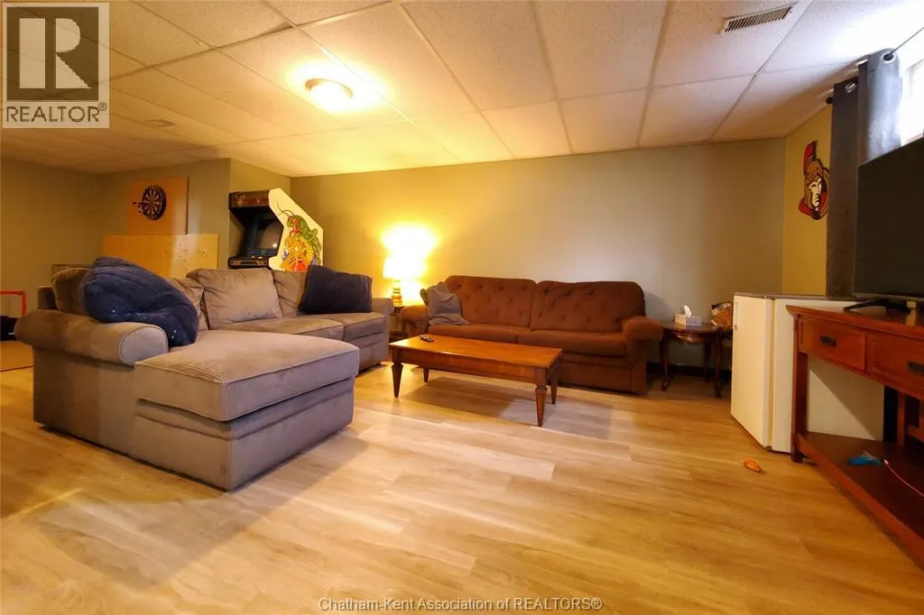Looking for space to live, grow, and unwind? This nearly one-acre hobby farm offers the peace, privacy, and a more self-sufficient lifestyle buyers are searching forâjust minutes from Chatham and Wallaceburg. Step inside to a bright, open-concept kitchen and living area, featuring beautiful hardwood floors and an abundance of built-in cabinetry for both style and function. The main level offers 3 spacious bedrooms, while the finished lower level adds 2 additional bedrooms and a generous family room, 3pc bathâperfect for growing families or multi-generational living. Step outside to a large covered deckâperfect for outdoor living, relaxing, or entertaining guests rain or shine. Beyond, youâll find a detached heated 2-car garage/workshop, ideal for projects, storage, or year-round use. The property is flanked by mature trees, offering privacy and a serene setting to unwind. With plenty of space to grow your own vegetables, raise chickens, and enjoy a slower pace of life, this property delivers the kind of freedom and flexibility thatâs hard to findâwithout giving up the convenience of being just 10 minutes to amenities. This home is move-in ready. Don't delay, book your showing today! (id:27476)