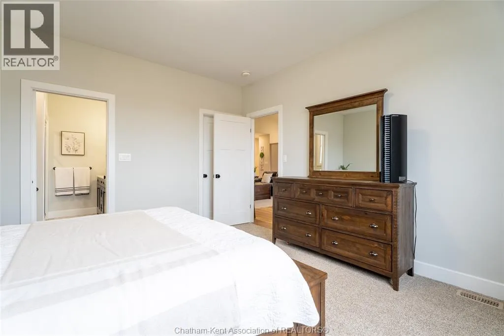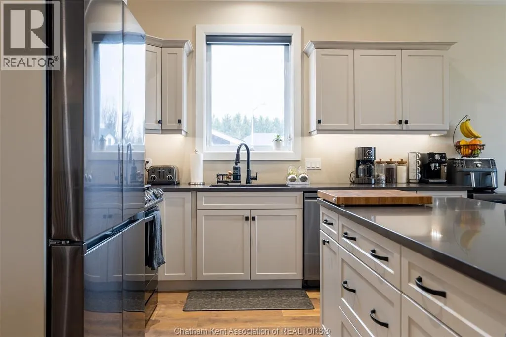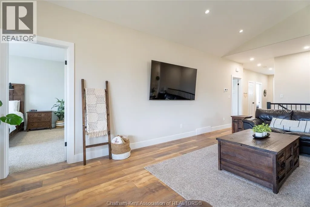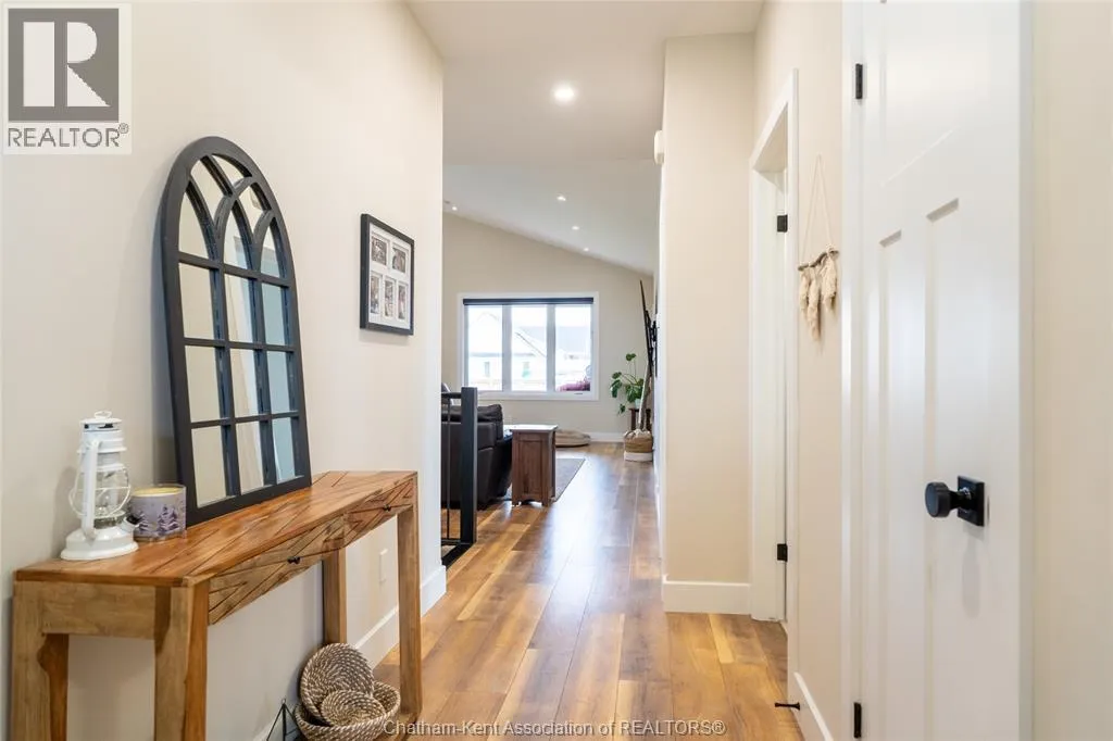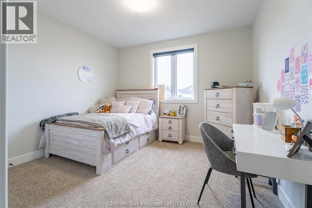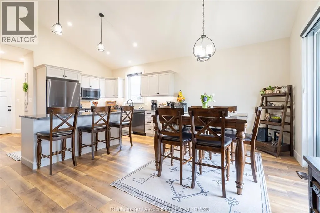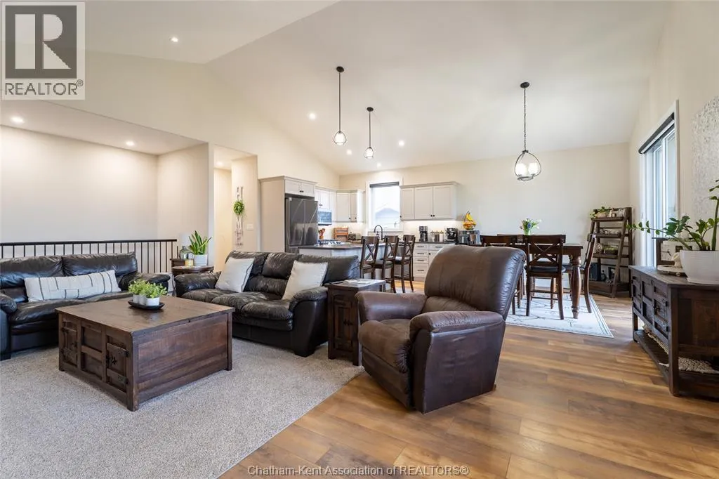 From St. George St, turn onto Camden St and follow the river. Go almost to the end then turn north onto DD St, then left onto DeMall Drive, then right onto Henson St. Sign in yard. This absolutely stunning 2023-built bungalow in the Rolling Acres subdivision in Dresden offers 3+2 bedrooms, 3 bathrooms, and 1,655 sq ft on the main floor with a fully finished basement, all set on a quiet, family-oriented cul-de-sac. Featuring a high-end James Hardie exterior and vaulted ceilings, this home combines quality craftsmanship with modern design. As you walk through the front doors into the great room, youâll immediately notice the high vaulted ceilings that enhance the sense of space and natural light. The open-concept layout flows seamlessly into the kitchen, which is beautifully finished with quartz countertops, ample cabinetry that goes to the ceiling, and a generous dining area. The main floor includes 3 bedrooms, including a primary suite with a private ensuite and walk-in closet, along with an additional full bathroom. The fully finished basement adds 2 more bedrooms, a third full bathroom, a large family room with a cozy fireplace, and plenty of storage throughout, making it ideal for growing families or multi-generational living. Step outside to a fully fenced backyard featuring a poured concrete pad ready for a future shed. The double car garage is heated and cooled, and the double-wide concrete driveway adds convenience and curb appeal. Located in one of Dresdenâs most desirable neighbourhoods, this move-in ready home offers space, comfort, and modern finishes throughout. Transferable Tarion Warranty. Donât miss your opportunity to own a newer home in a prime location book your private showing today. (id:27476)