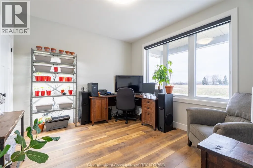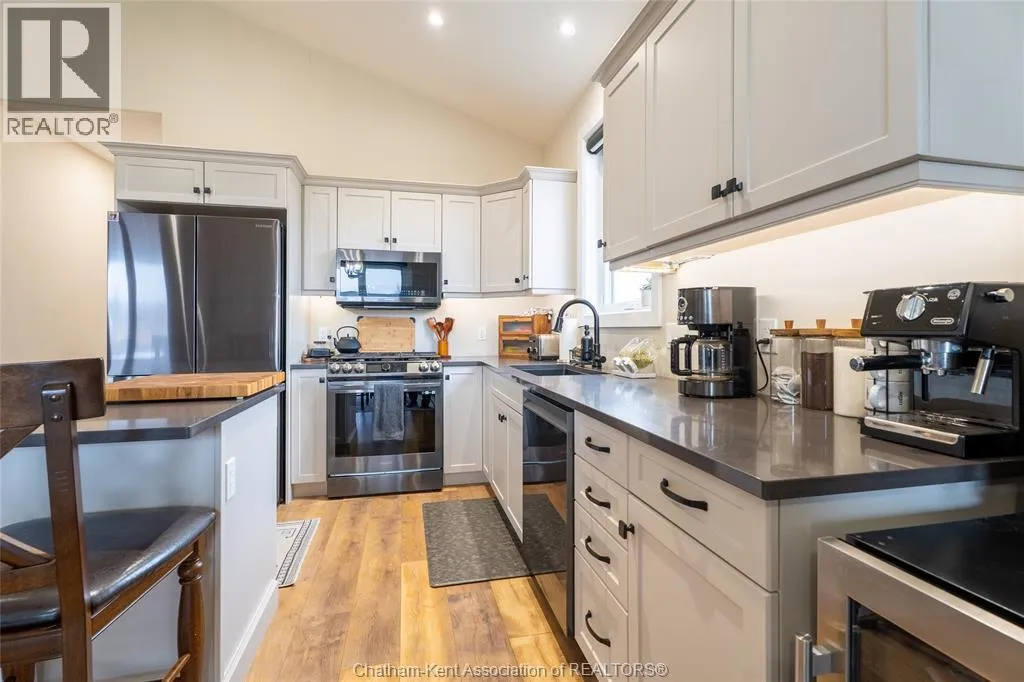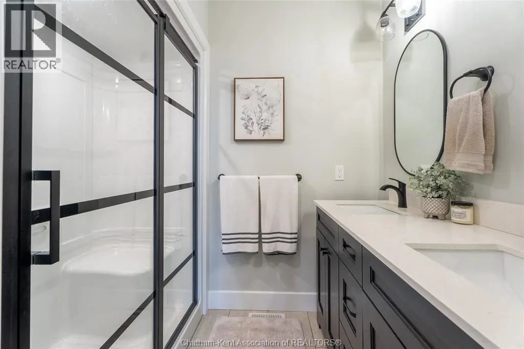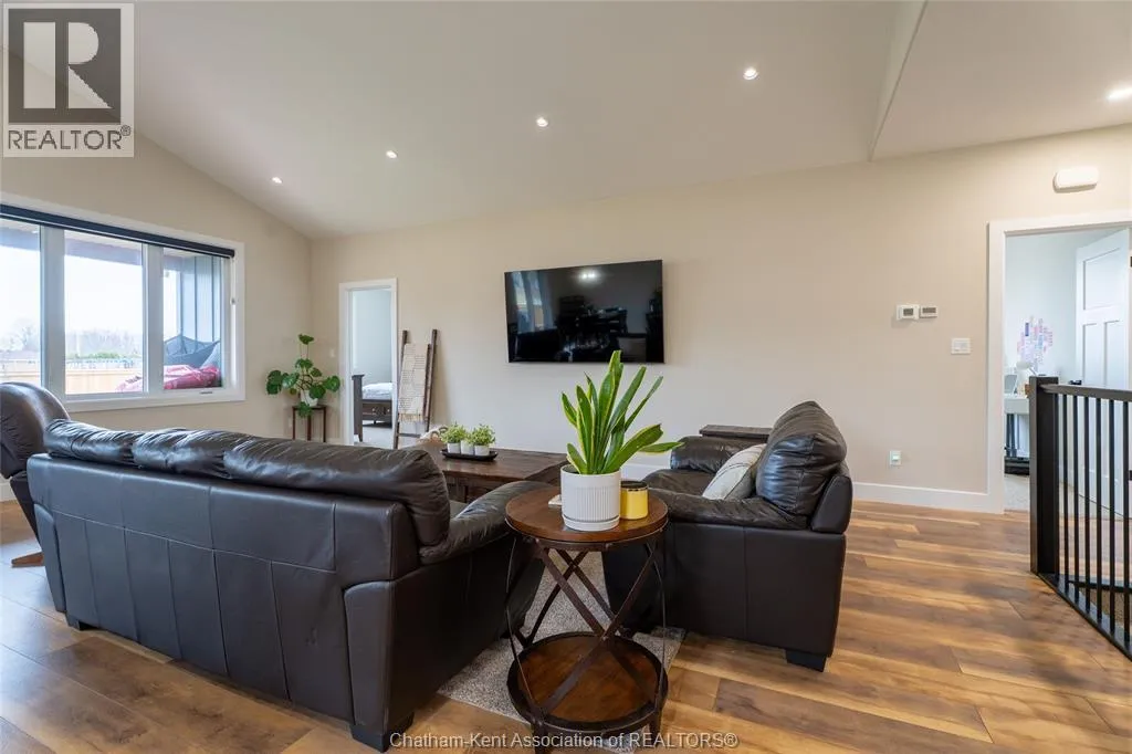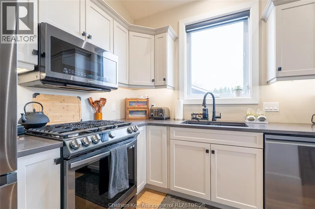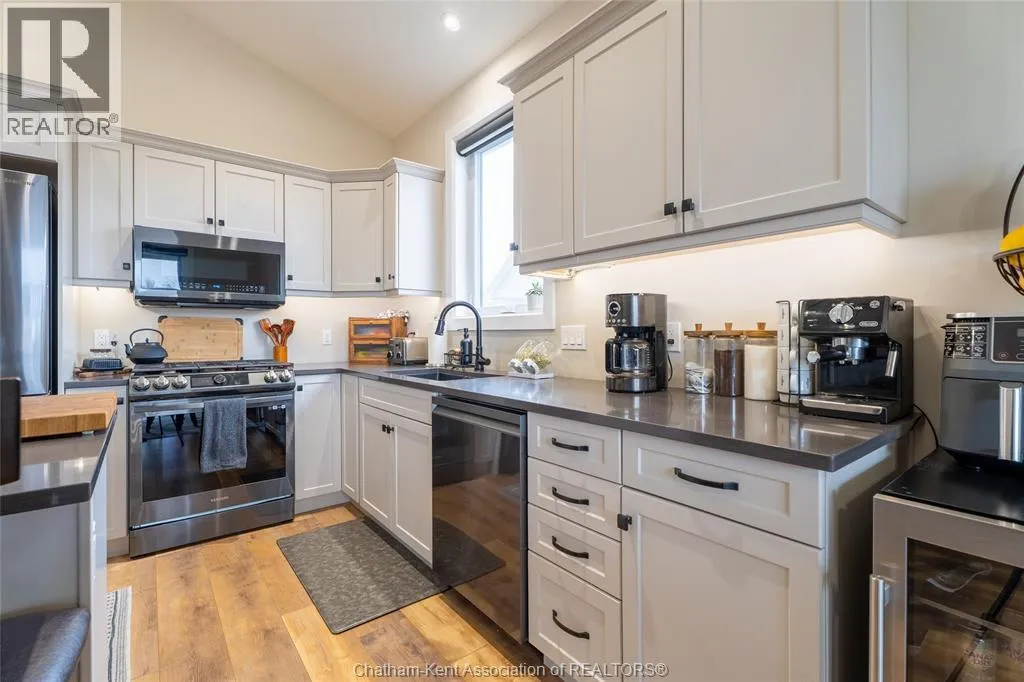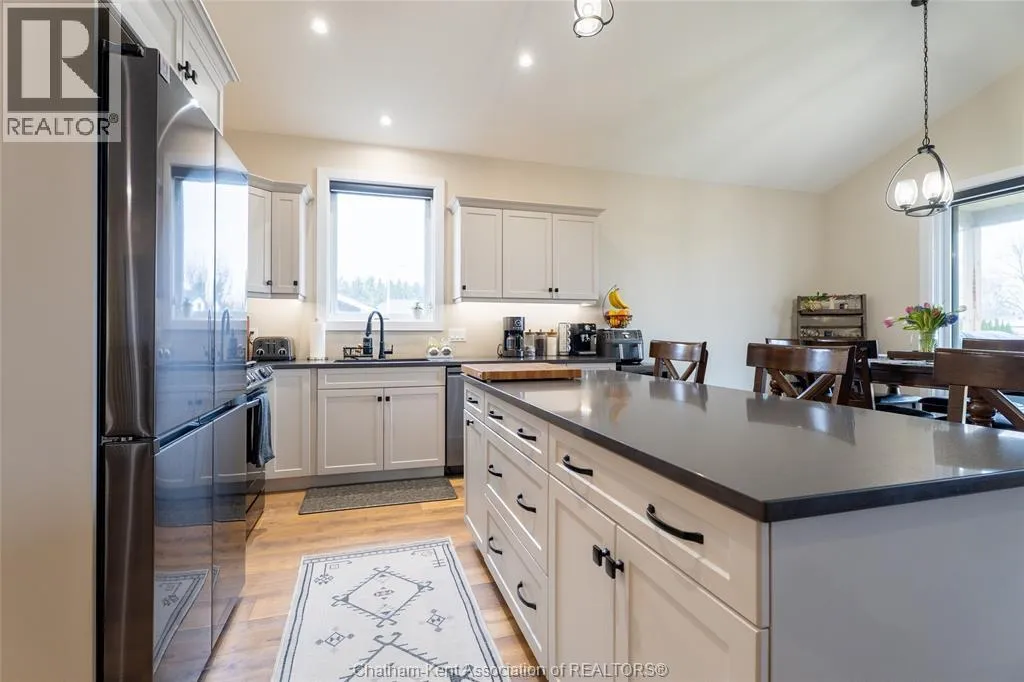 From St. George St, turn onto Camden St and follow the river. Go almost to the end then turn north onto DD St, then left onto DeMall Drive, then right onto Henson St. Sign in yard. This absolutely stunning 2023-built bungalow in the Rolling Acres subdivision in Dresden offers 3+2 bedrooms, 3 bathrooms, and 1,655 sq ft on the main floor with a fully finished basement, all set on a quiet, family-oriented cul-de-sac. Featuring a high-end James Hardie exterior and vaulted ceilings, this home combines quality craftsmanship with modern design. As you walk through the front doors into the great room, youâll immediately notice the high vaulted ceilings that enhance the sense of space and natural light. The open-concept layout flows seamlessly into the kitchen, which is beautifully finished with quartz countertops, ample cabinetry that goes to the ceiling, and a generous dining area. The main floor includes 3 bedrooms, including a primary suite with a private ensuite and walk-in closet, along with an additional full bathroom. The fully finished basement adds 2 more bedrooms, a third full bathroom, a large family room with a cozy fireplace, and plenty of storage throughout, making it ideal for growing families or multi-generational living. Step outside to a fully fenced backyard featuring a poured concrete pad ready for a future shed. The double car garage is heated and cooled, and the double-wide concrete driveway adds convenience and curb appeal. Located in one of Dresdenâs most desirable neighbourhoods, this move-in ready home offers space, comfort, and modern finishes throughout. Transferable Tarion Warranty. Donât miss your opportunity to own a newer home in a prime location book your private showing today. (id:27476)