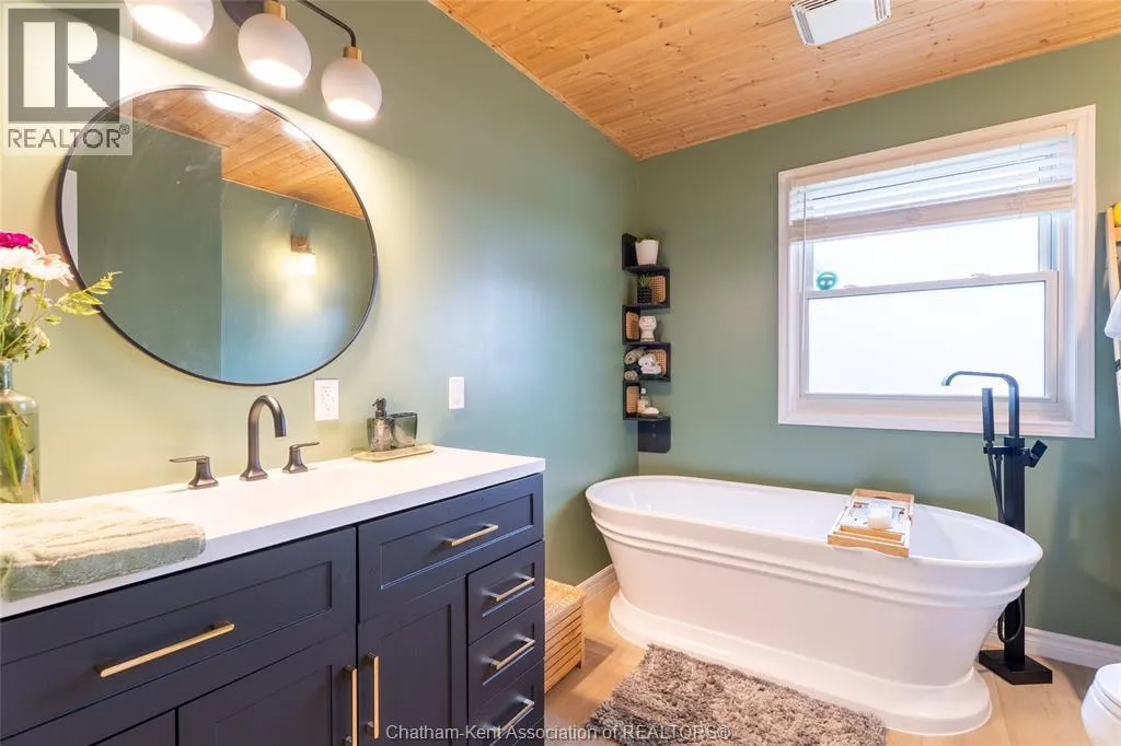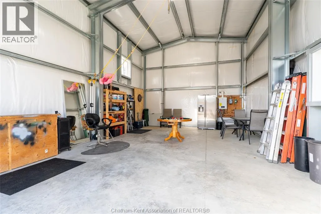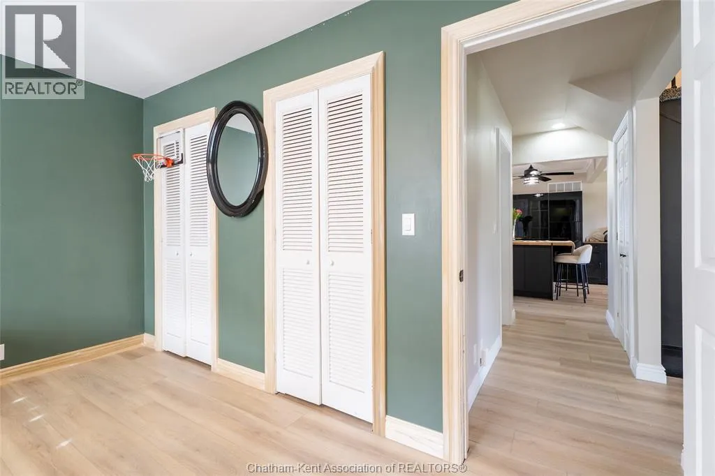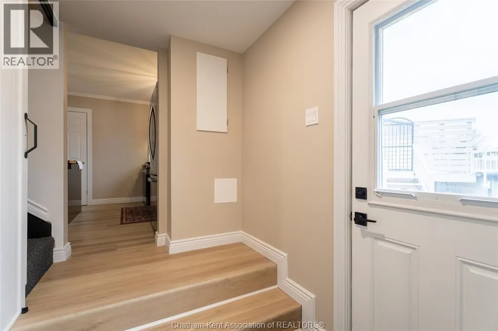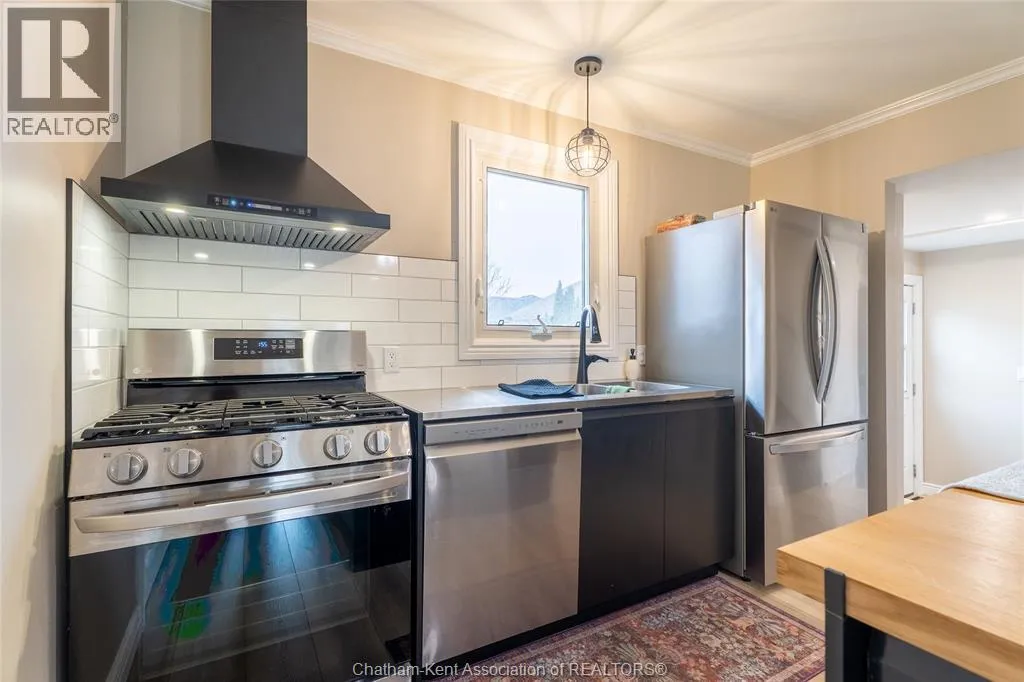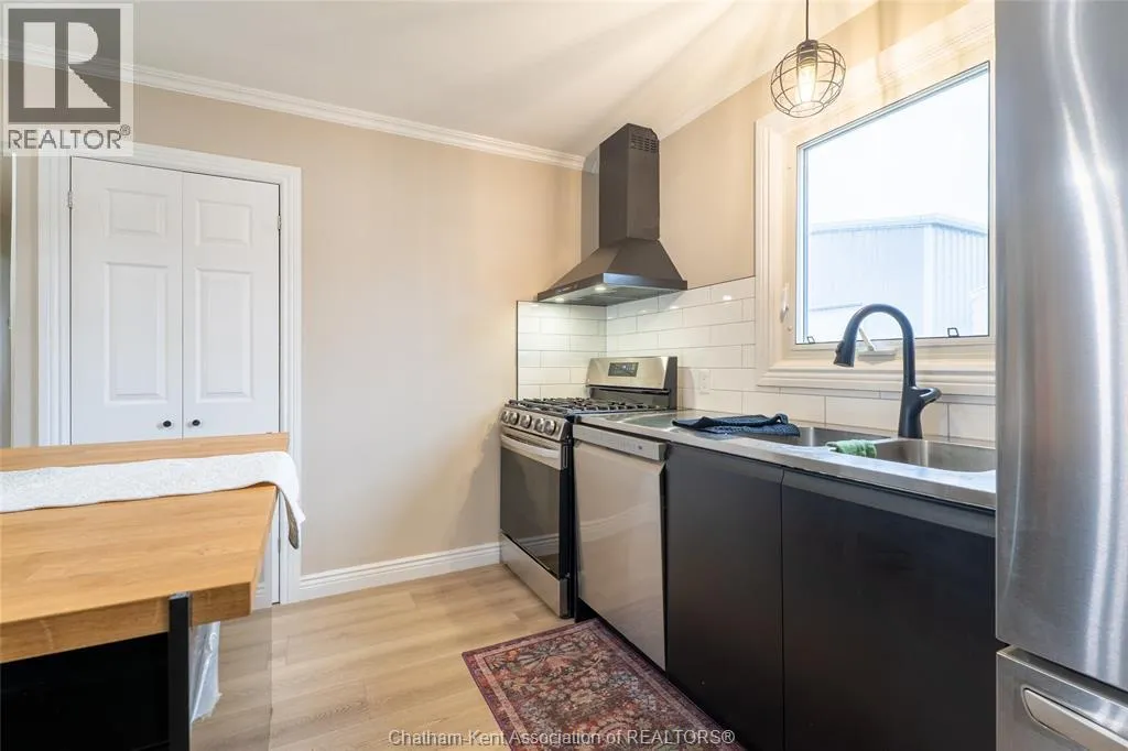 FROM ST. GEORGE ST, TURN EAST ONTO DAVIES ST. E. HOUSE IS UP ON THE LEFT HAND SIDE. SIGN IN YARD. This beautifully renovated, over 2,200 sq ft family home in Dresden offers 4 bedrooms and 3 full bathrooms and sits on an oversized lot in a sought-after neighbourhood near the Stranak Cres/Venture Cres area. Thoughtfully updated throughout, this home offers space, functionality, and modern finishes. Inside, youâll find a bright layout featuring a brand-new kitchen with new appliances, updated cabinetry, tile backsplash, and a large island with a butcher block countertop. The main floor showcases real wood trim and brand-new LVP flooring throughout, along with a fully renovated main floor bathroom. The home has been tastefully updated with new flooring, doors, light fixtures and windows, creating a fresh, move-in ready feel. The main floor offers a spacious living area, main floor laundry, and a bedroom with access to a full bathroom. Upstairs features the primary bedroom with ensuite, two additional bedrooms, and another full bathroom. Two separate living spaces provide flexibility for families. Another standout feature of this property is the brand-new detached workshop measuring 20' x 30' with 16' to the eaves, complete with its own separate driveway. Built on an engineered concrete pad with in-floor heat, it includes fiberglass blanket insulation, tankless system, 60 amp service, and is equipped with water and gas. Recent updates include a newer furnace, central air conditioning, encapsulation in the crawl space with a transferable warranty and spray foam over block foundation. The new fully fenced backyard includes a 54"" on-ground pool and a 10' x 12' deck. An attached double-car garage with inside entry and a concrete driveway adds convenience. Move-in ready and located in a quiet, family-friendly area close to schools and amenities. Book your private showing today. (id:27476)